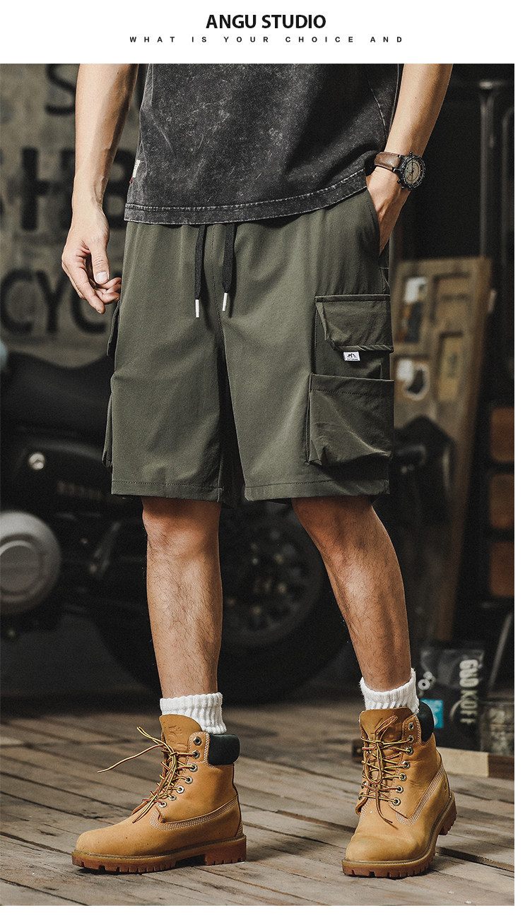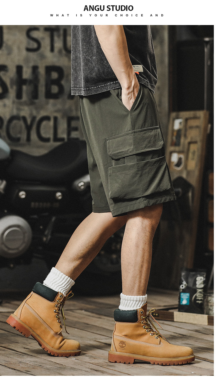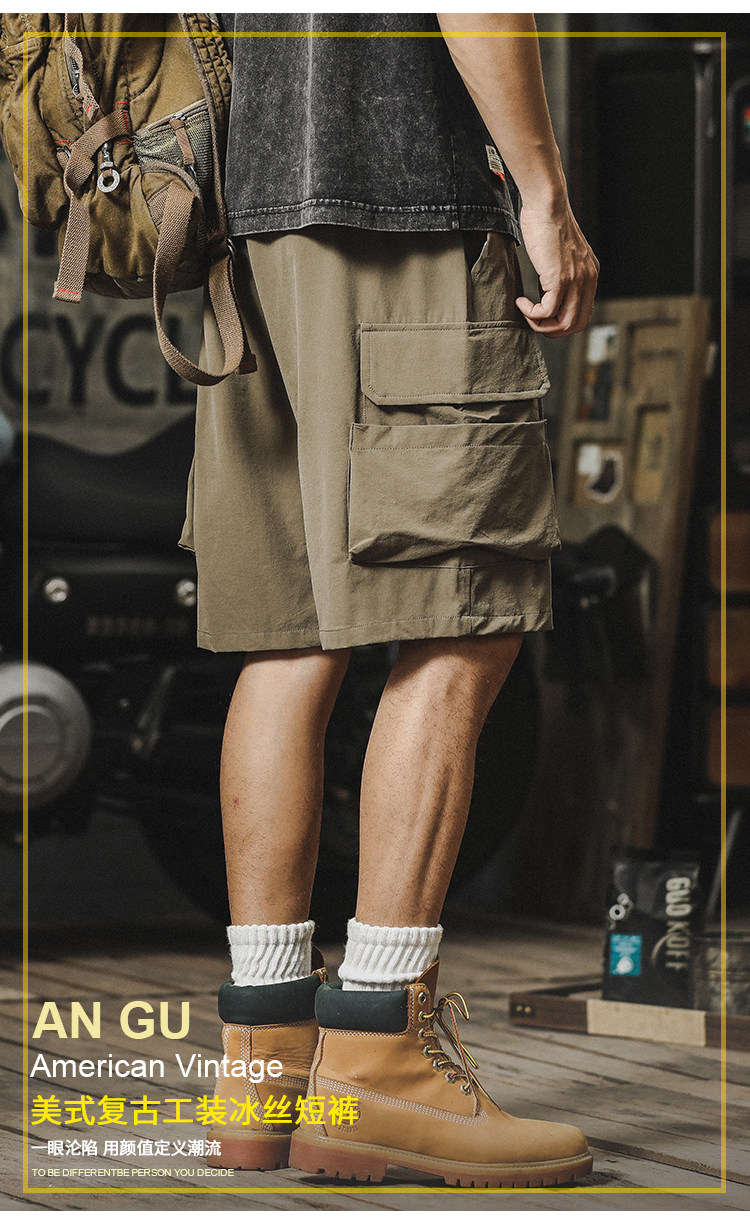 Ice Silk Work Shorts for Men, Summer Thin Style, American Trendy Brand, Straight Loose Fit, Breathable, Quick-Drying, Casual Five-Point Shorts