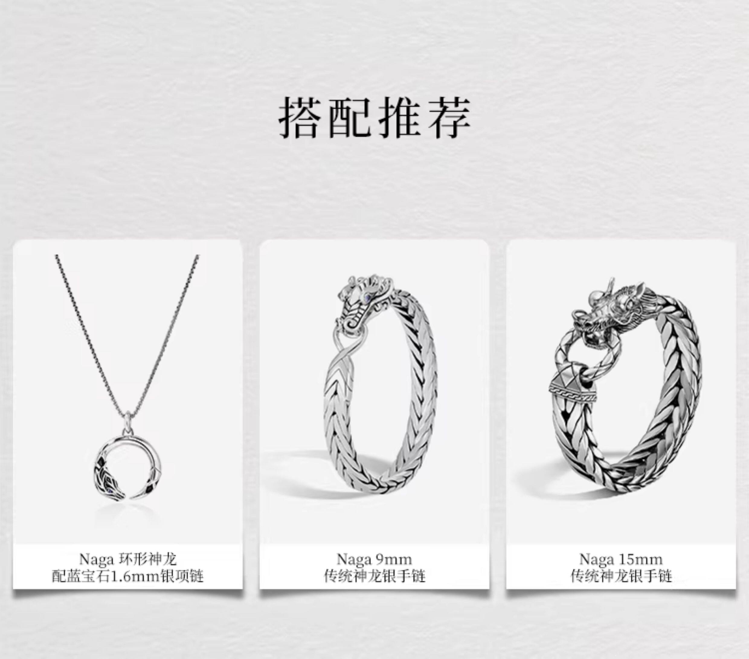 [Tmall Exclusive] John Hardy Naga Series Three-Dimensional Dragon Sapphire Silver Necklace Hand-Carved
