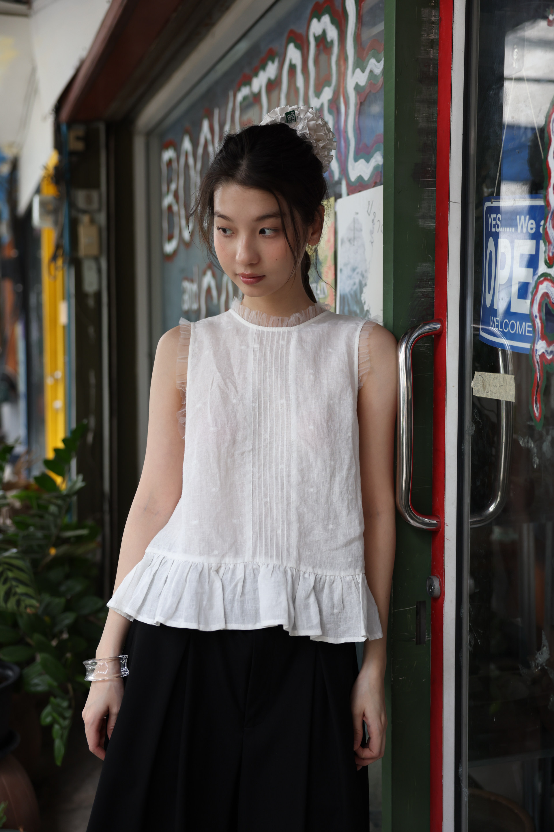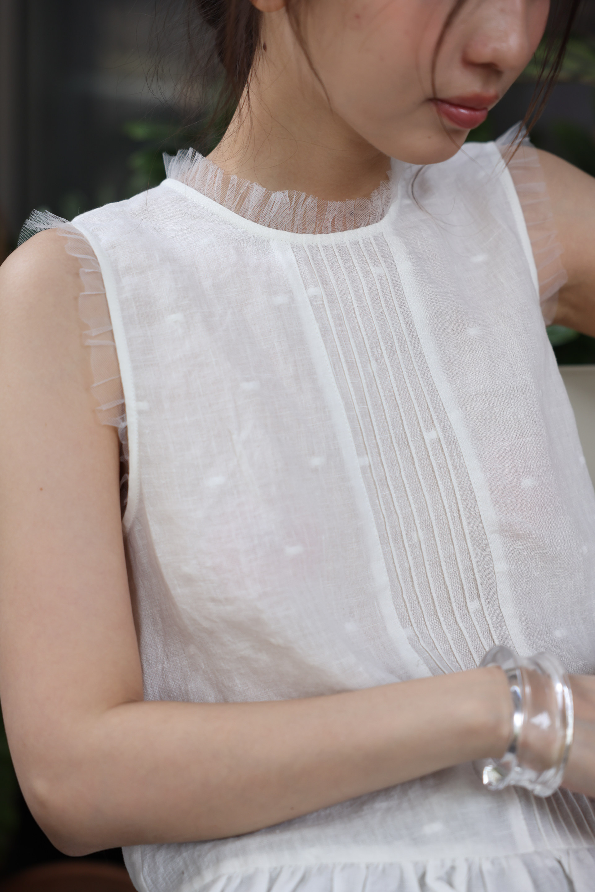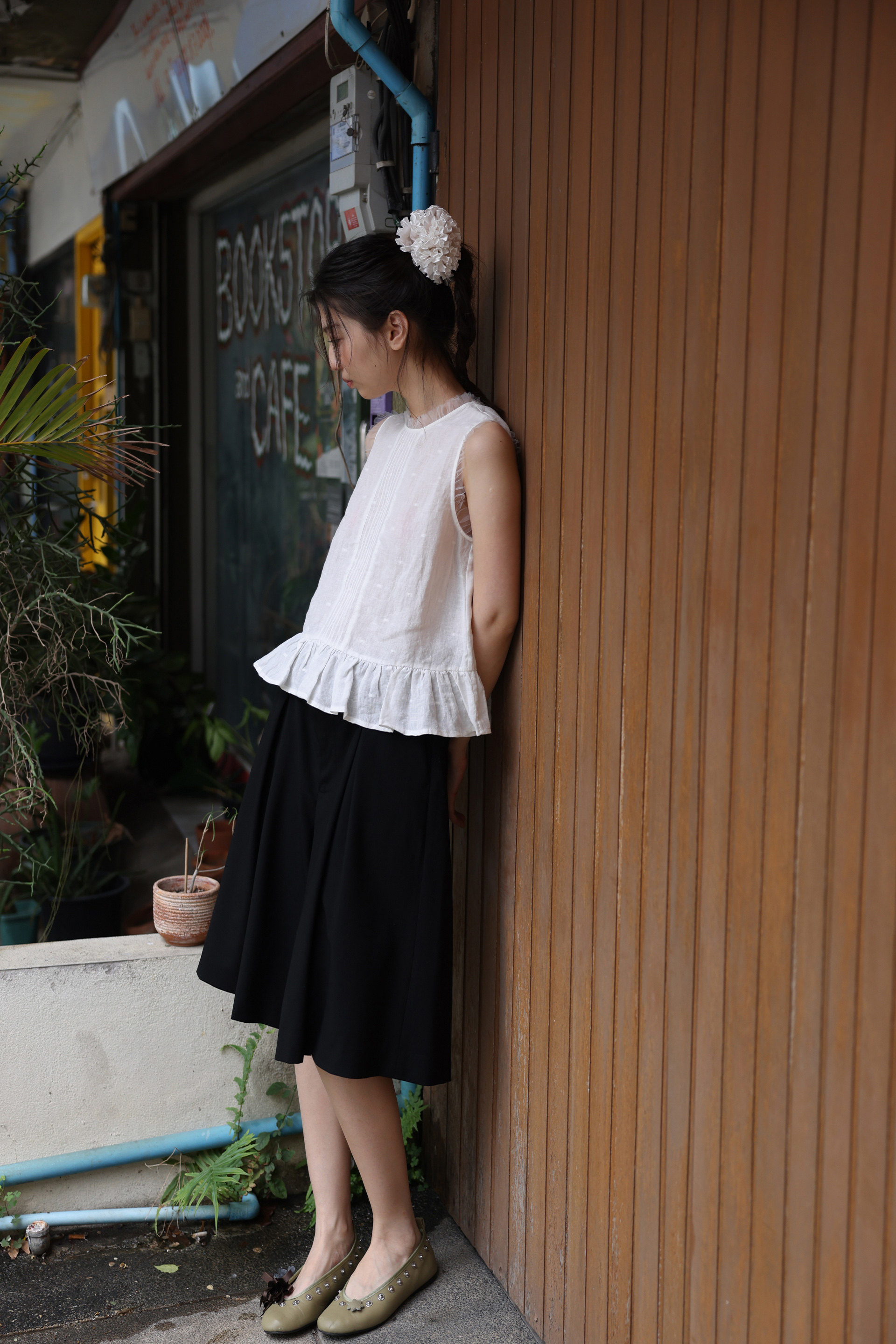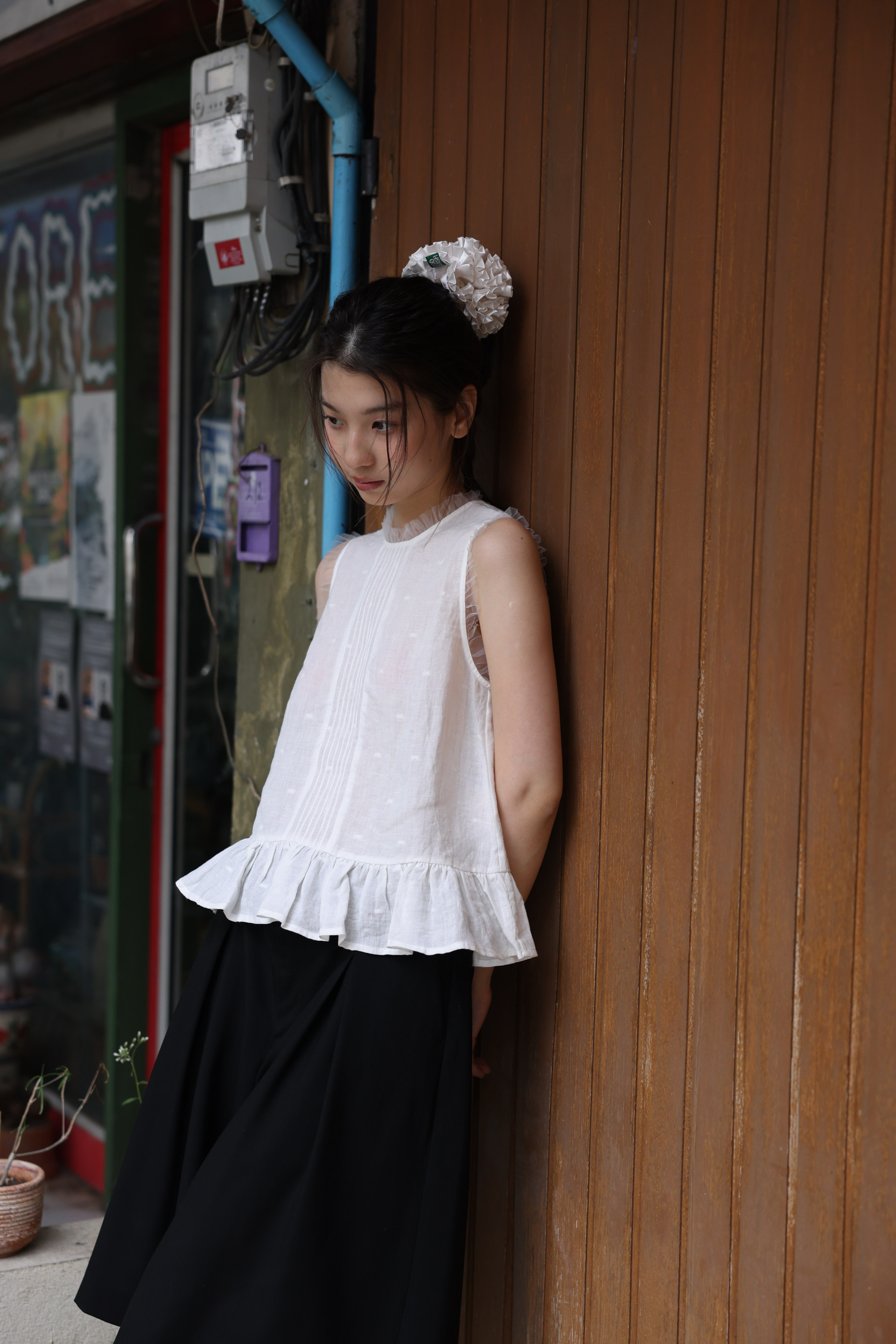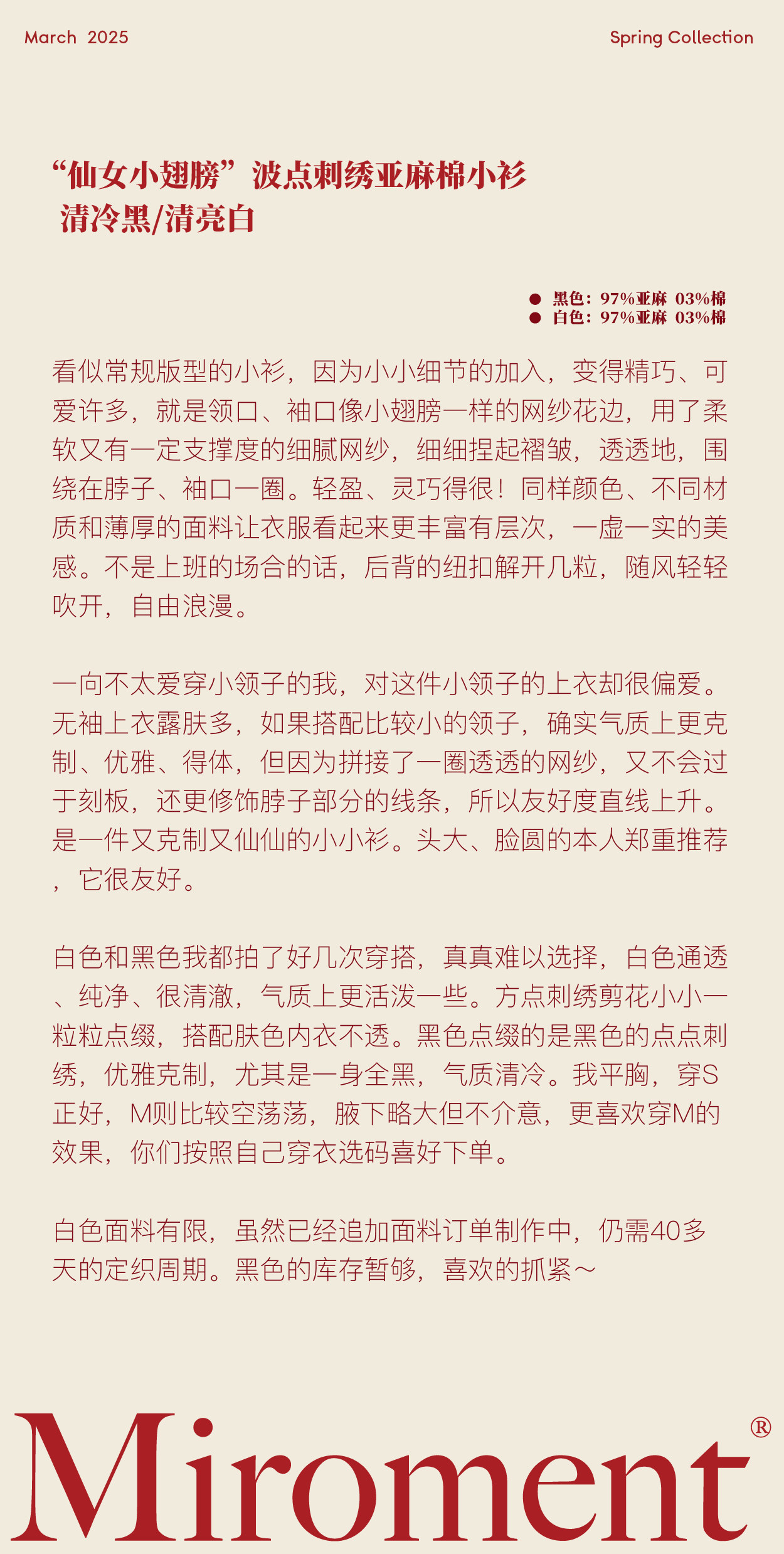 Miroment “Fairy Little Wings” Polka Dot Embroidered Linen Cotton Top in Cool Black/Clear White