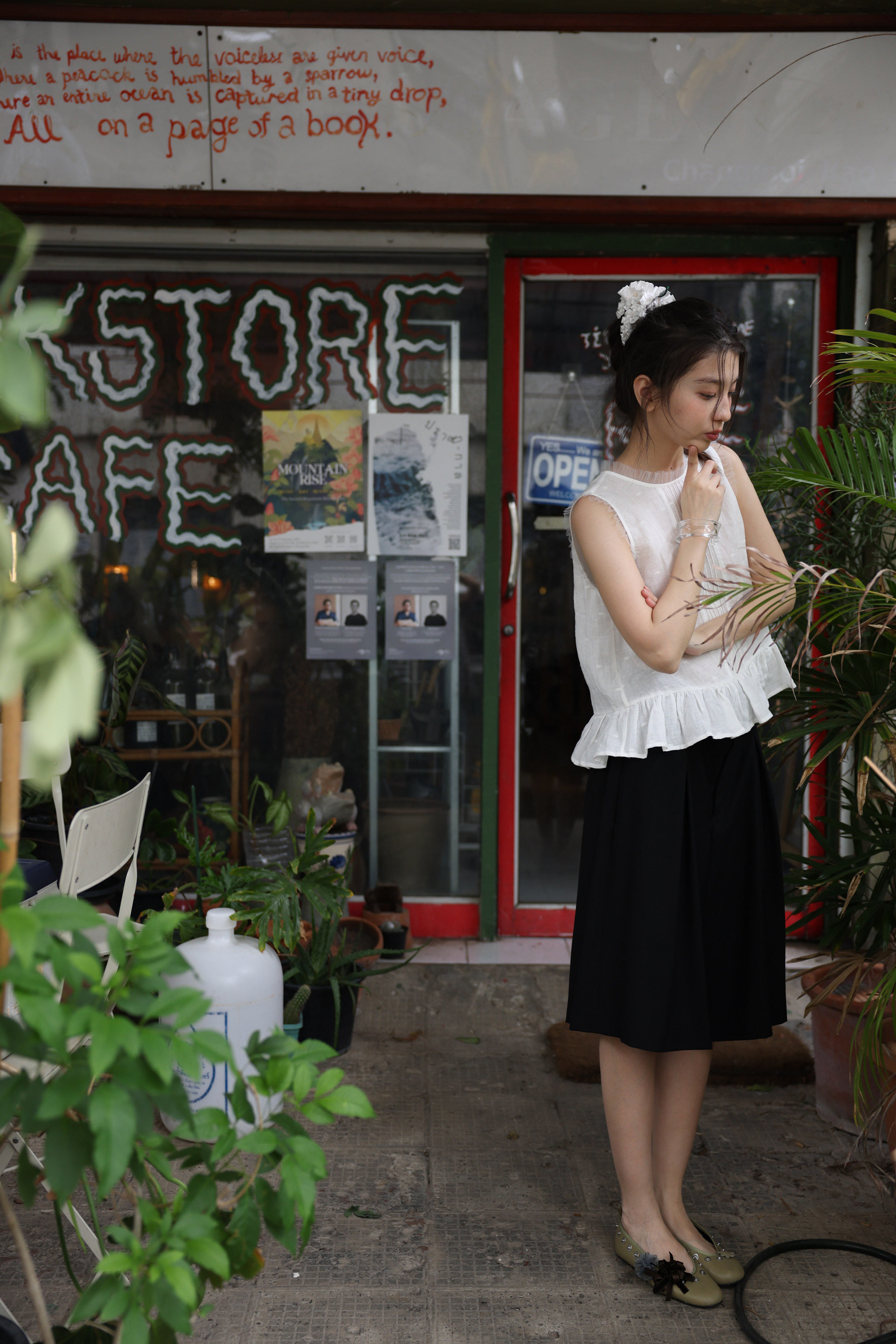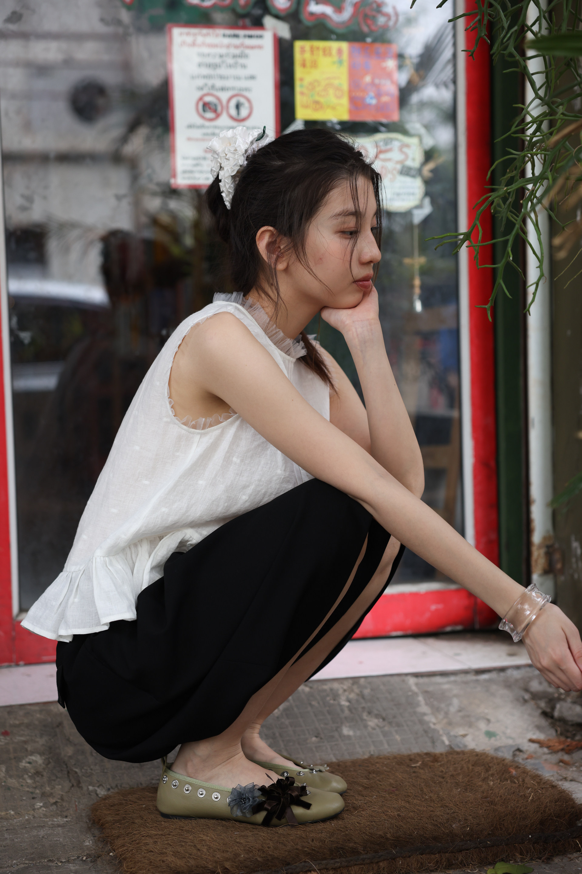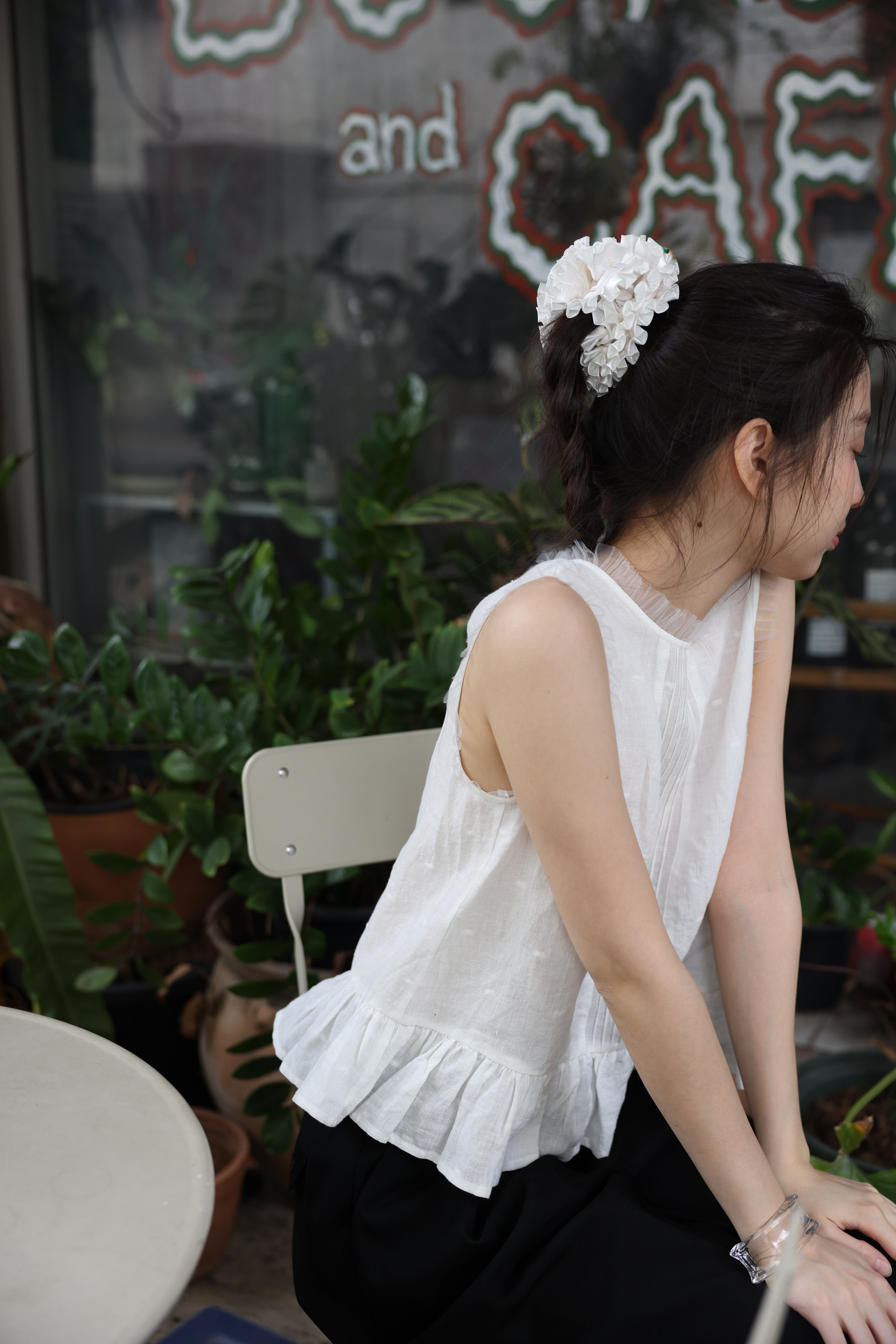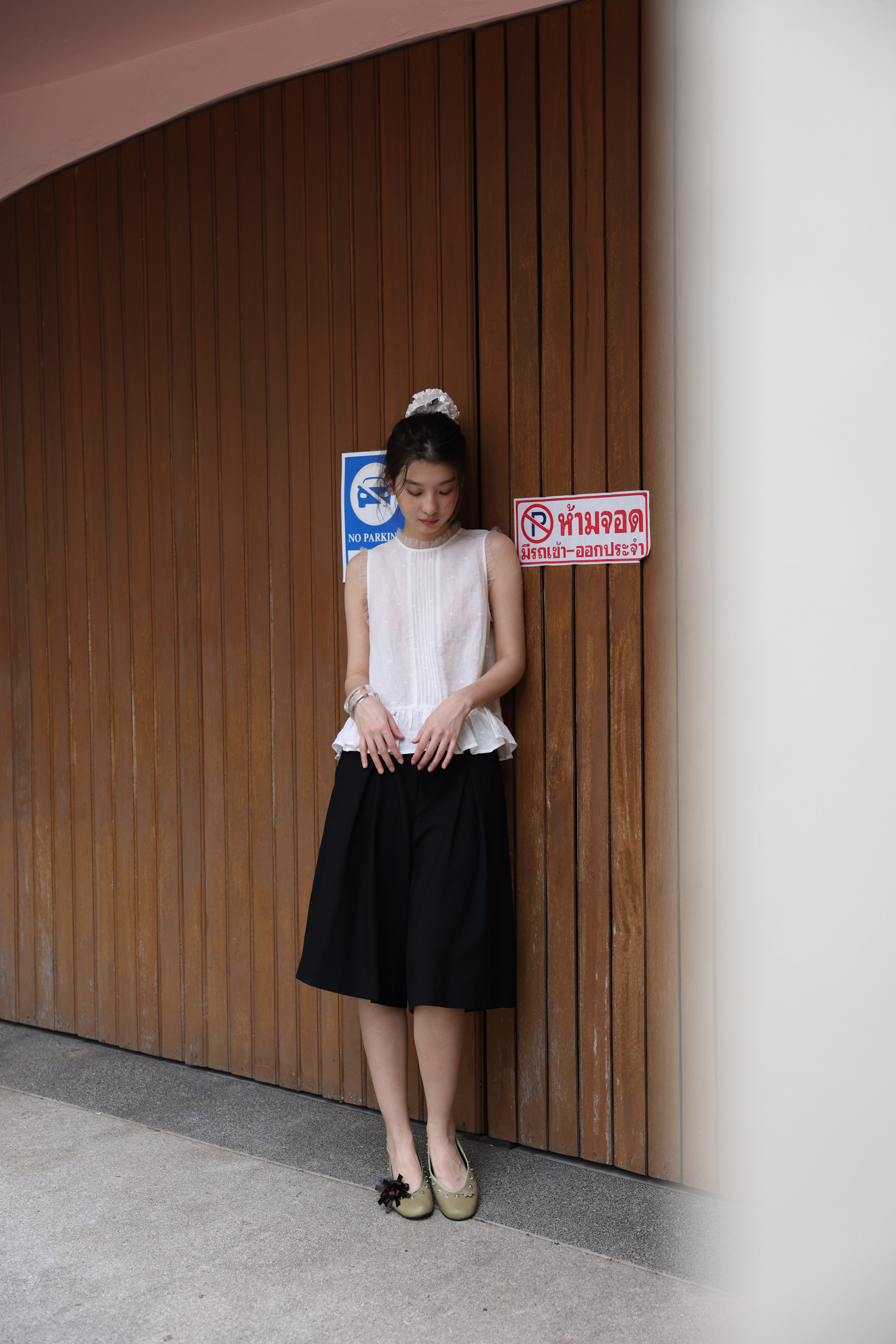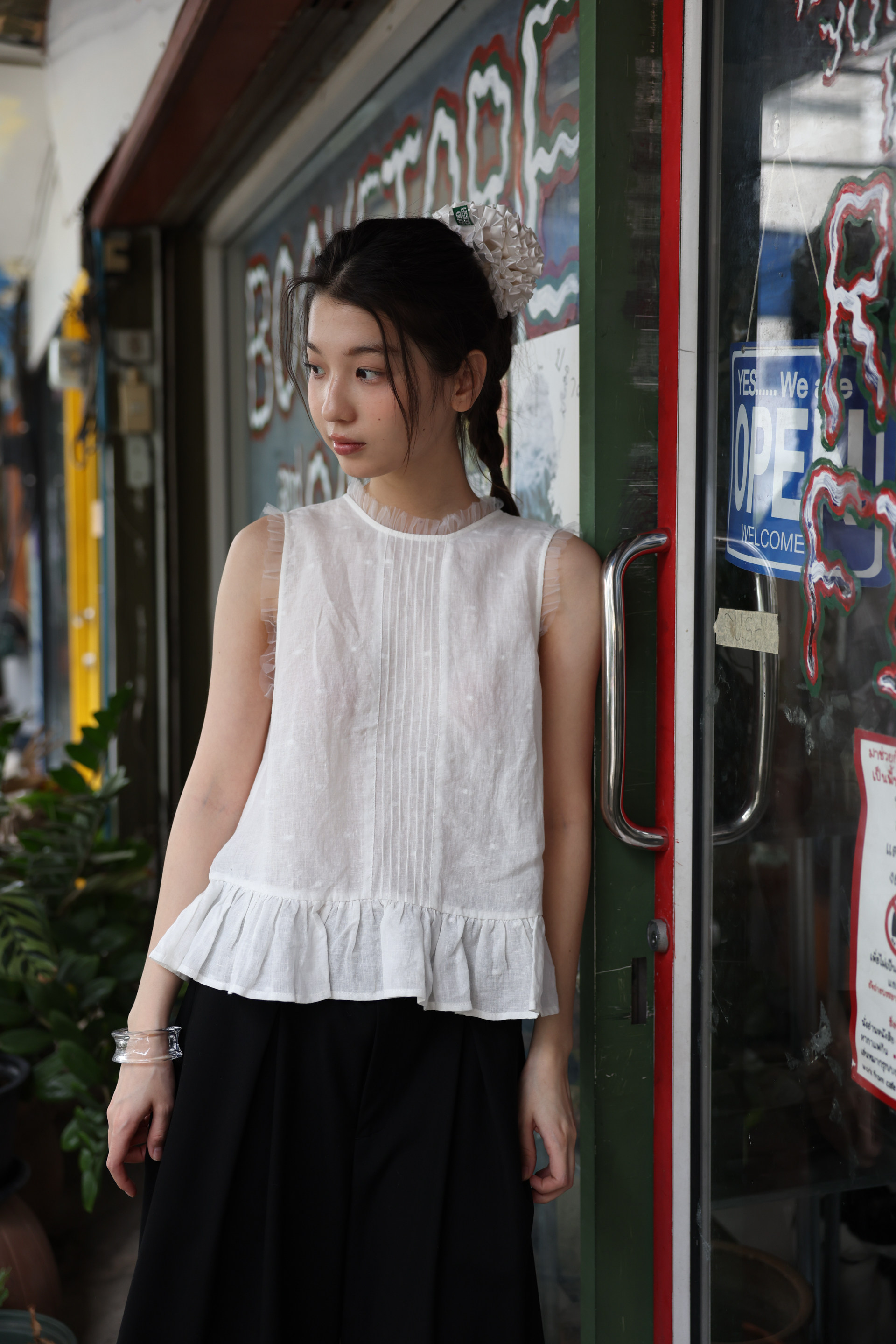 Miroment “Fairy Little Wings” Polka Dot Embroidered Linen Cotton Top in Cool Black/Clear White