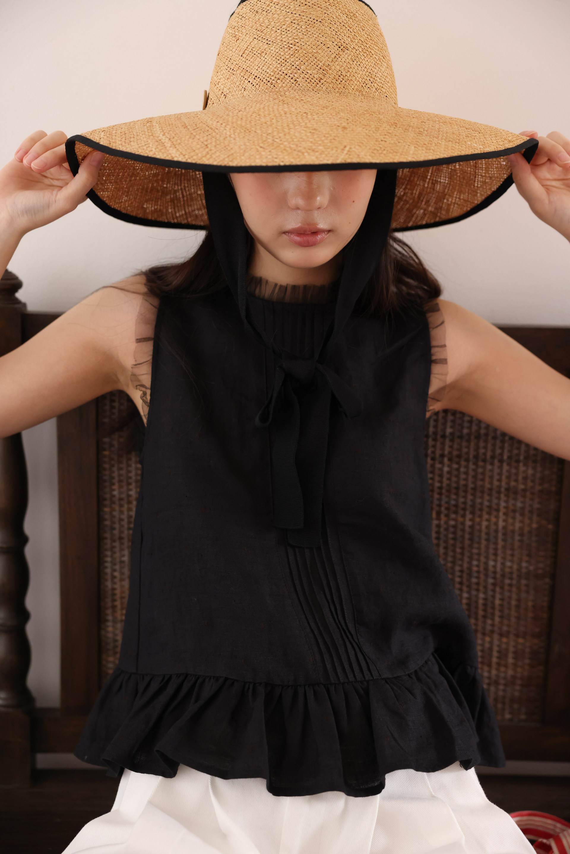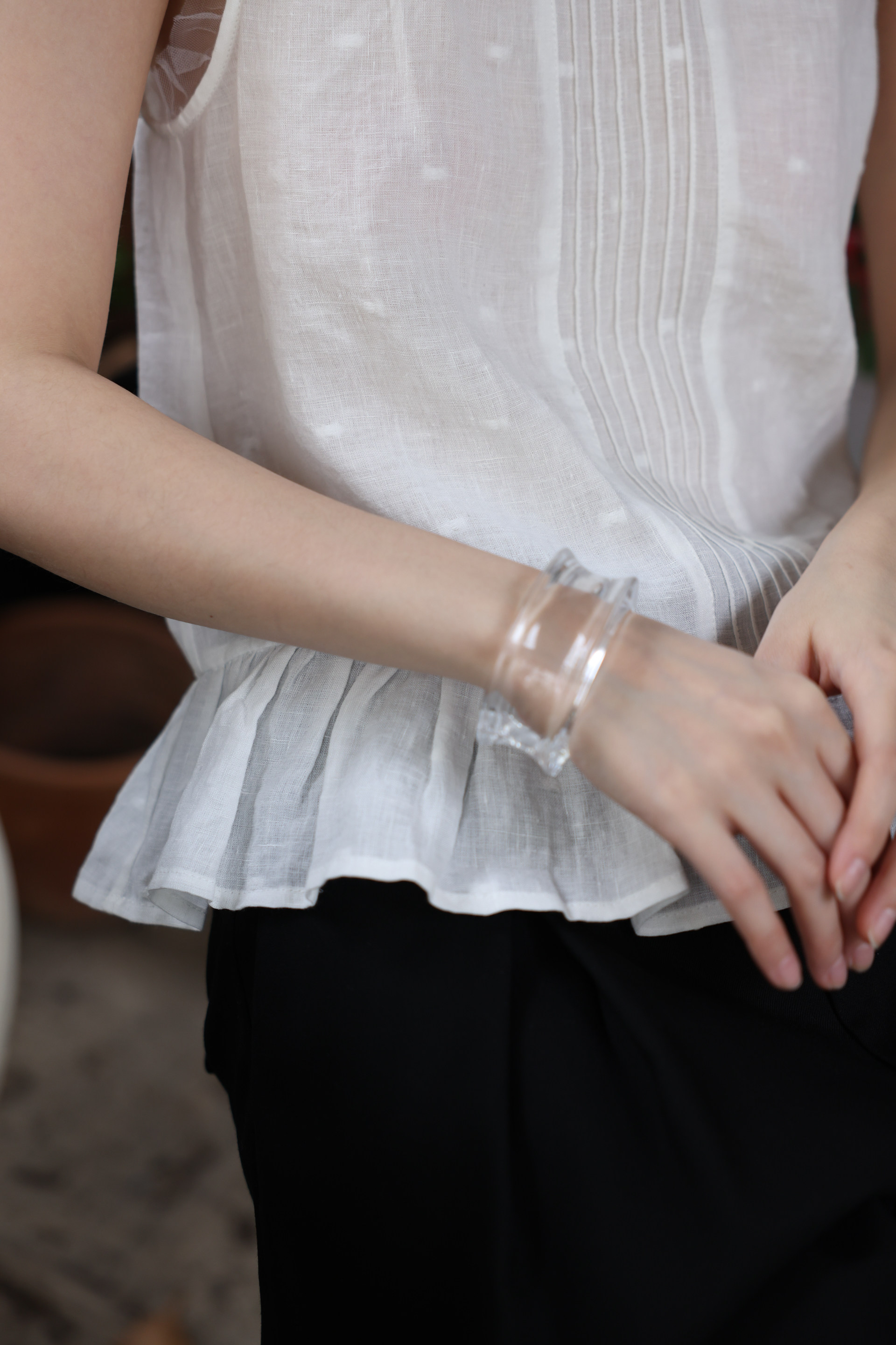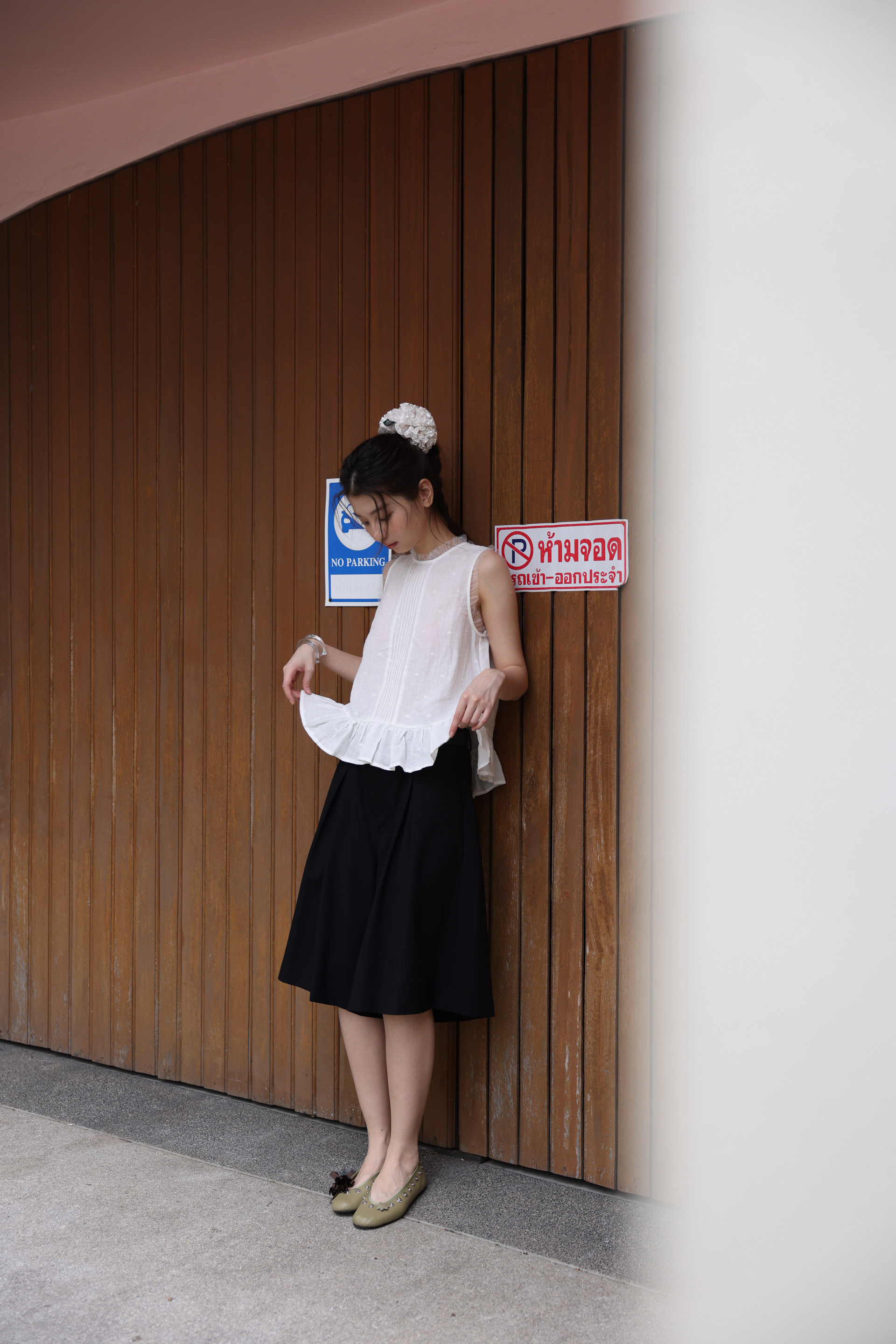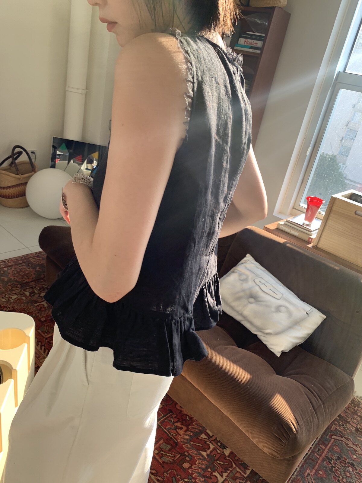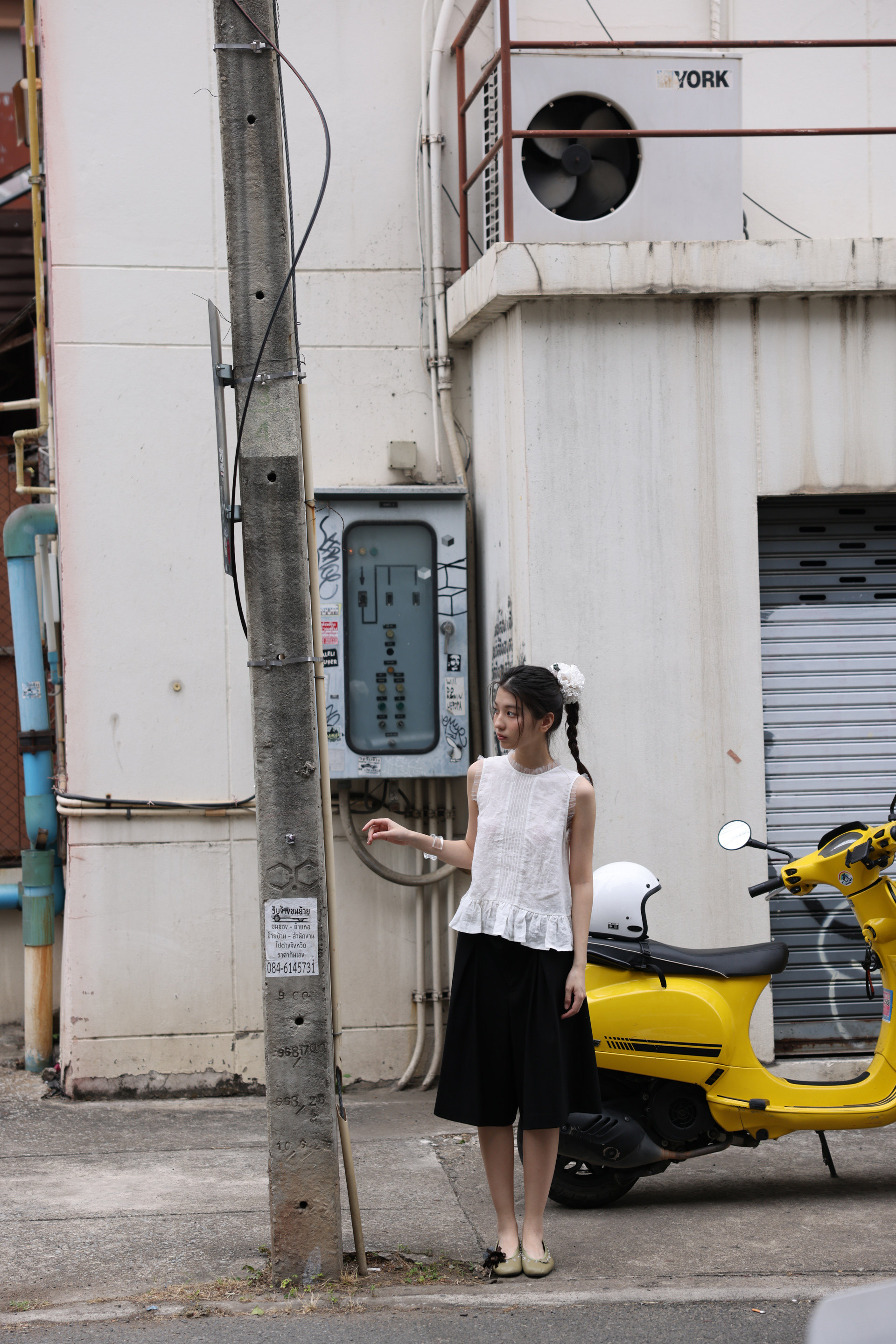 Miroment “Fairy Little Wings” Polka Dot Embroidered Linen Cotton Top in Cool Black/Clear White