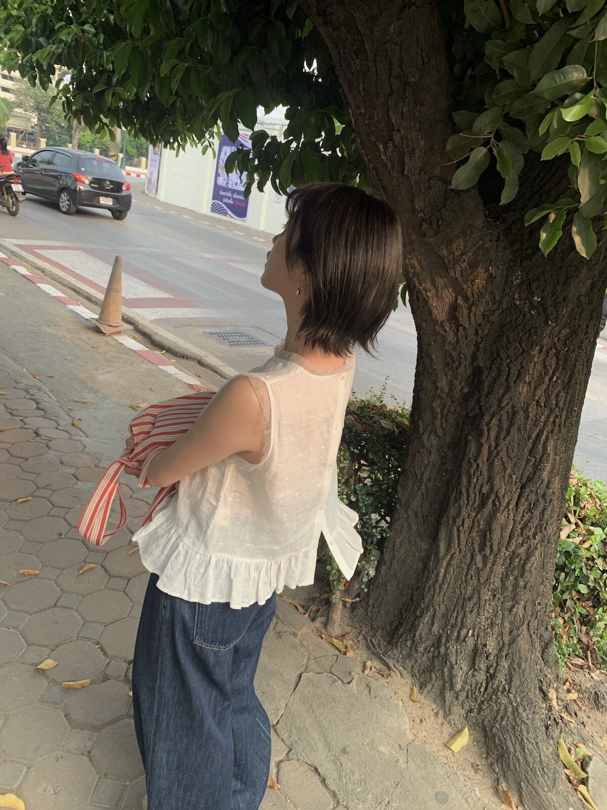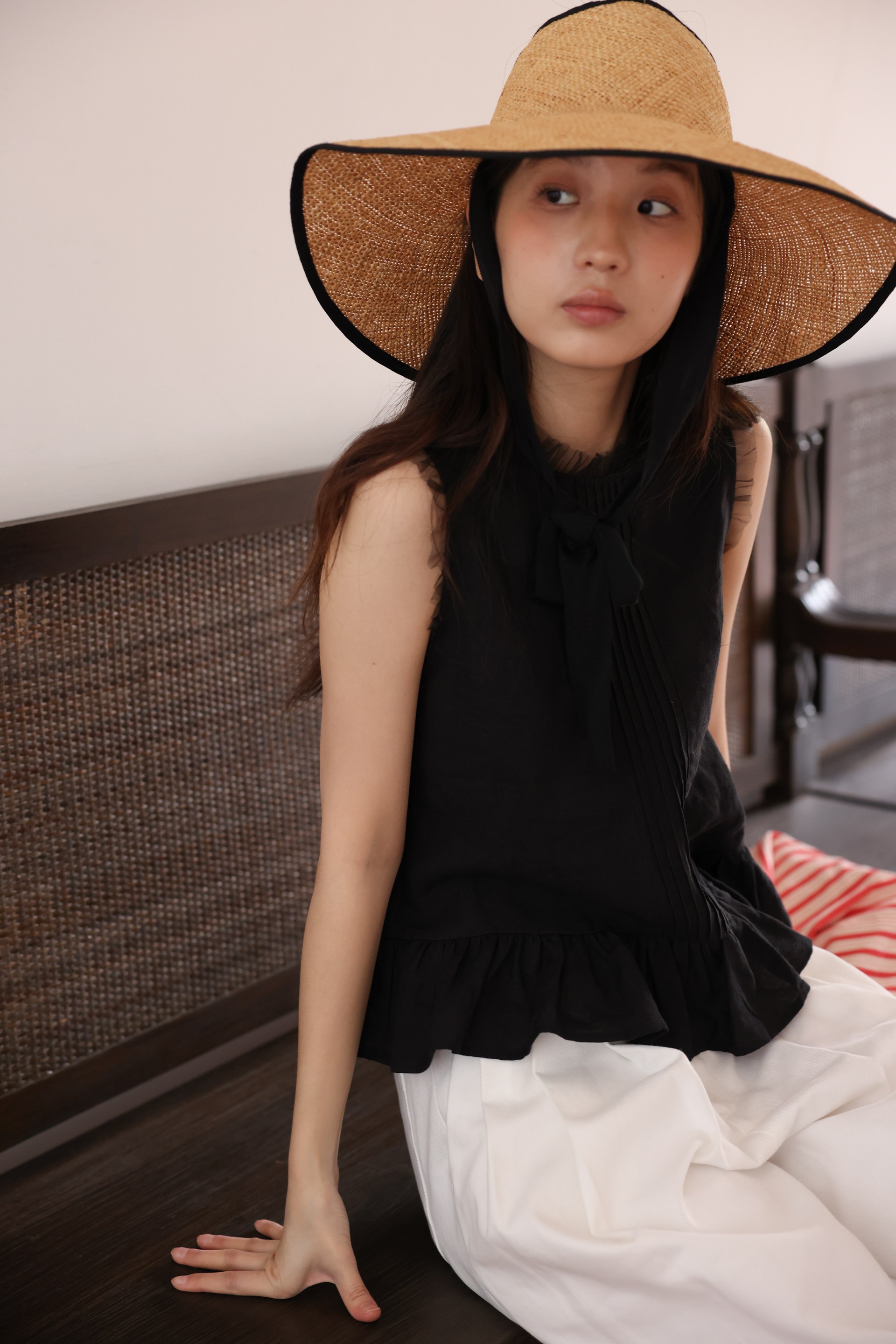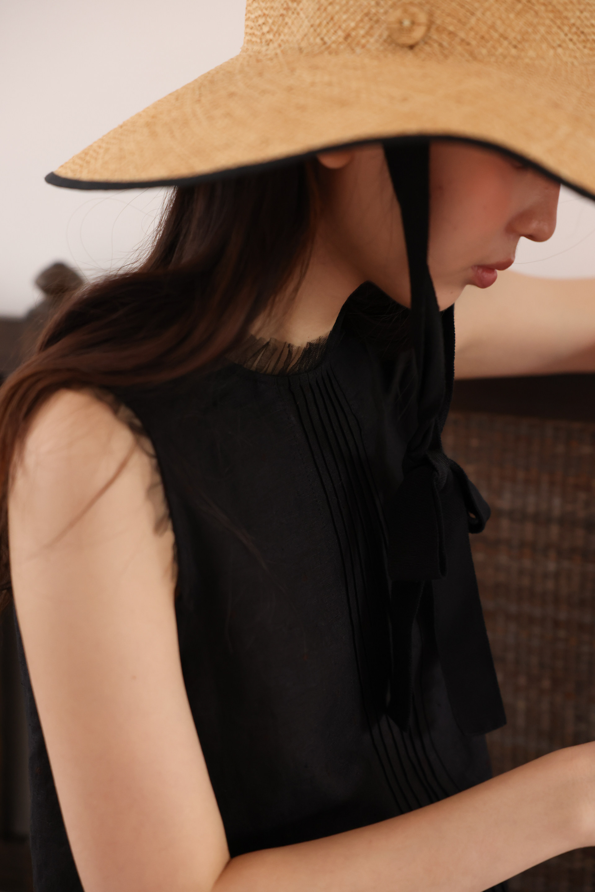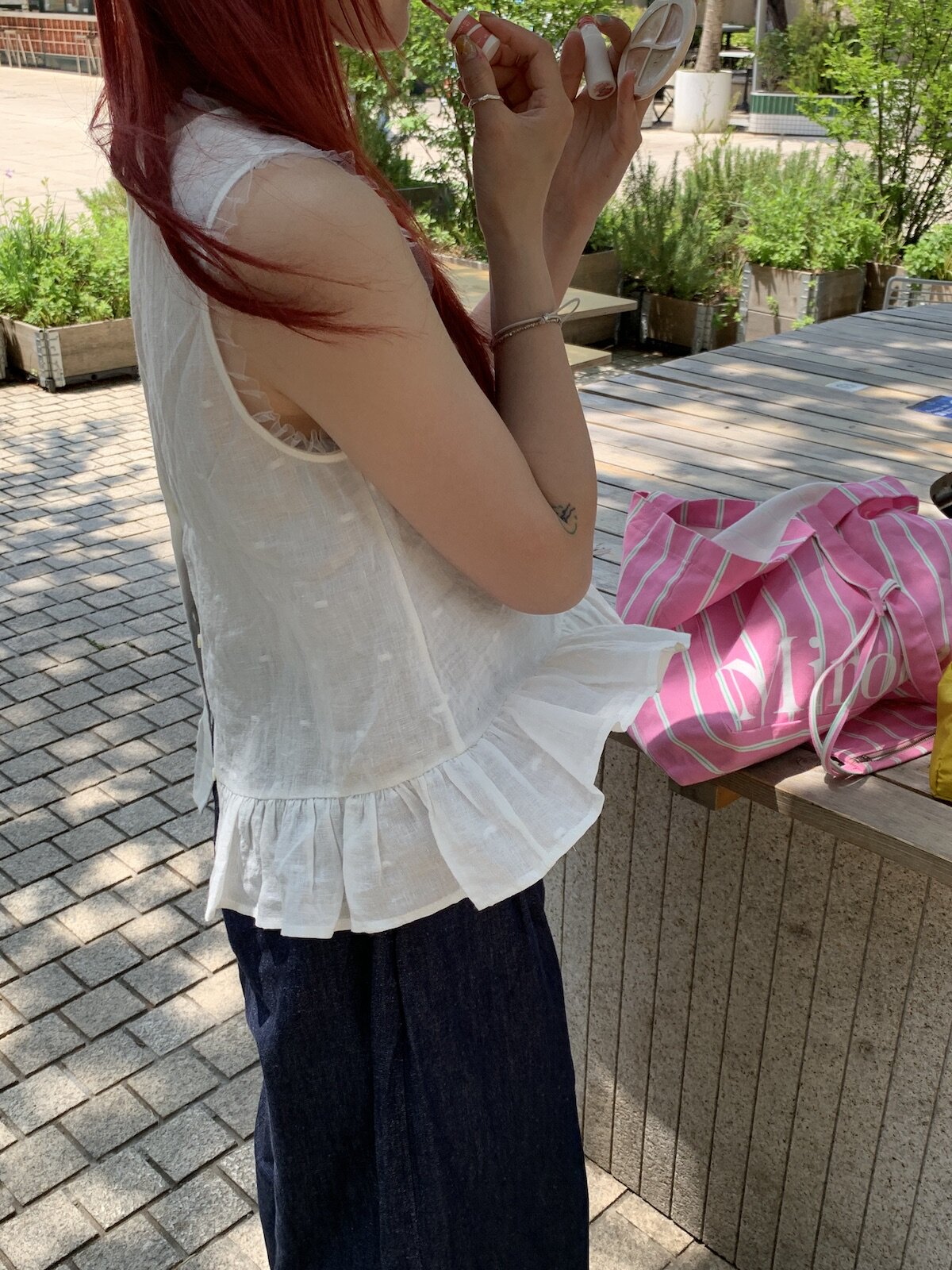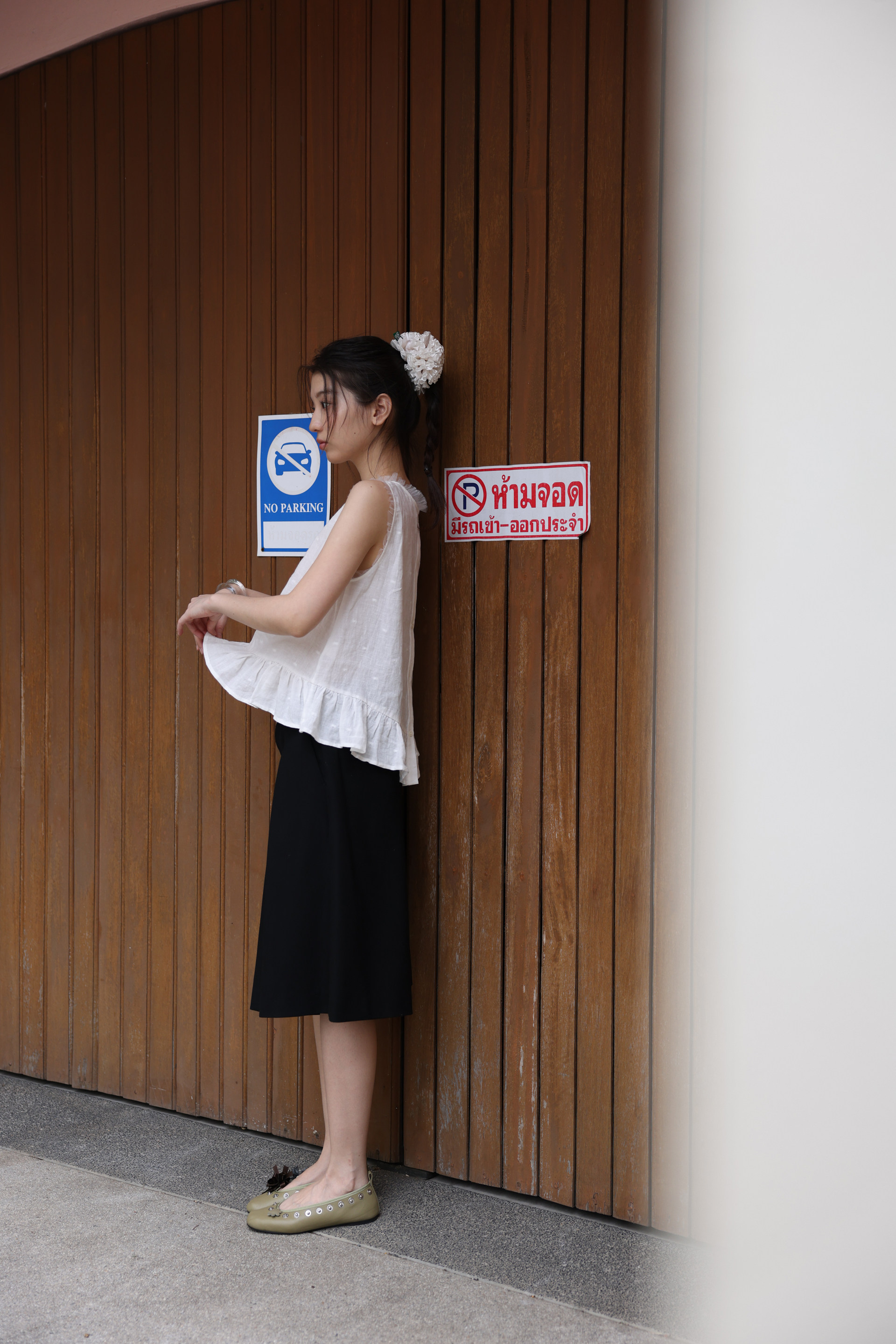 Miroment “Fairy Little Wings” Polka Dot Embroidered Linen Cotton Top in Cool Black/Clear White