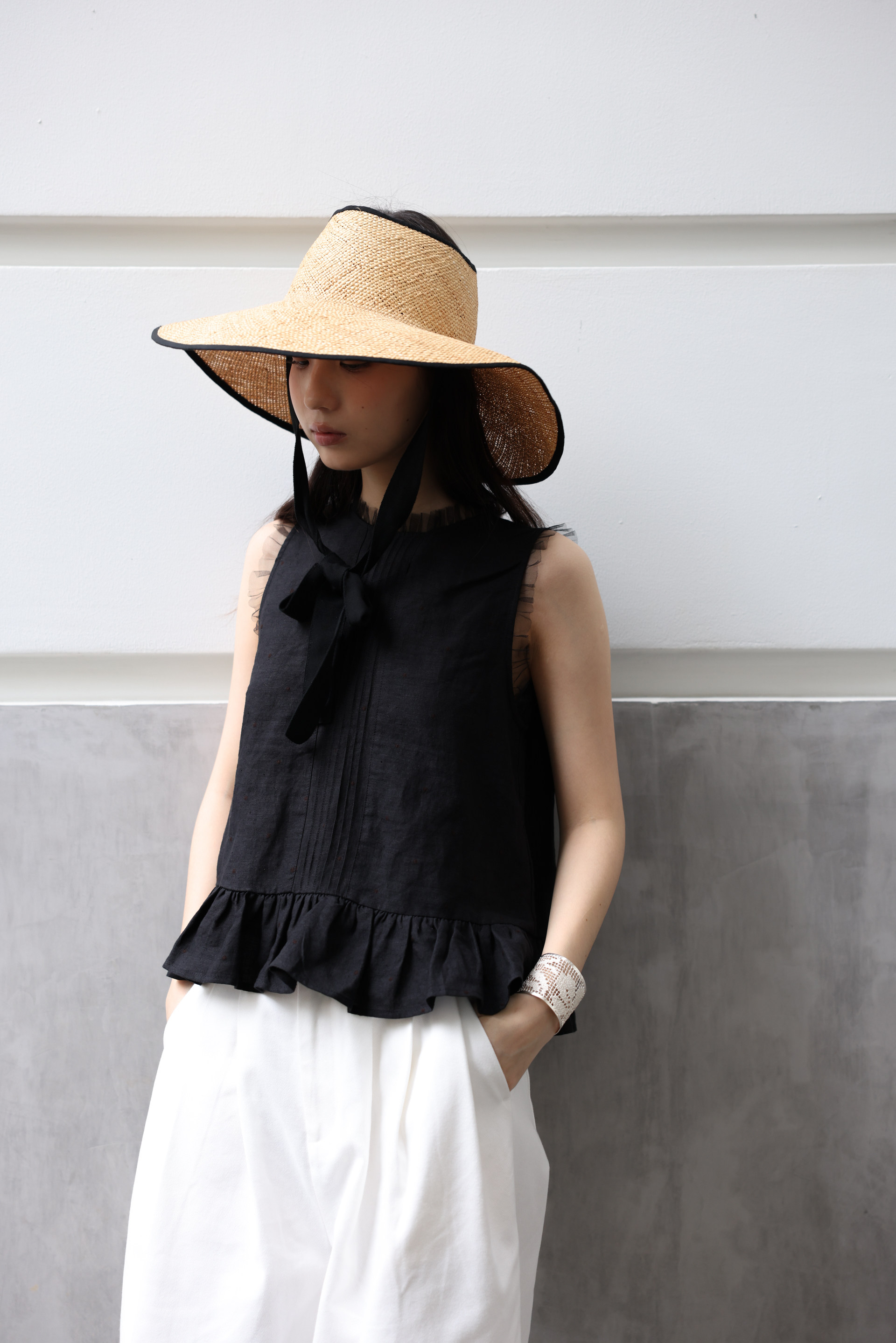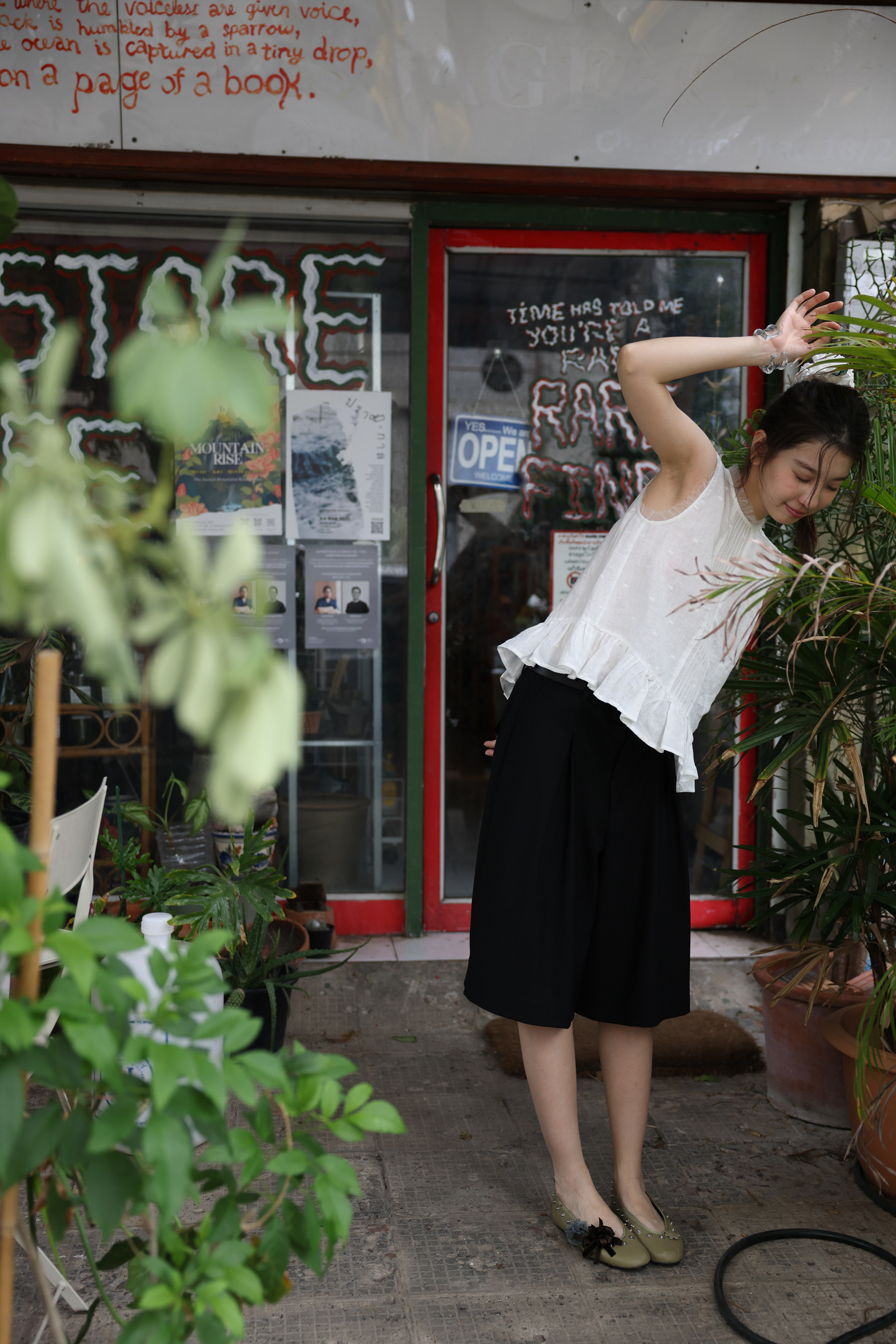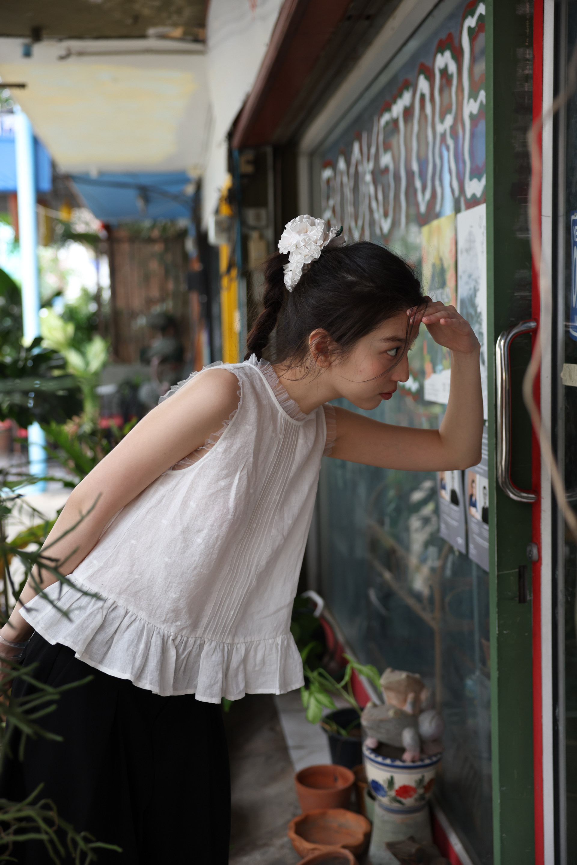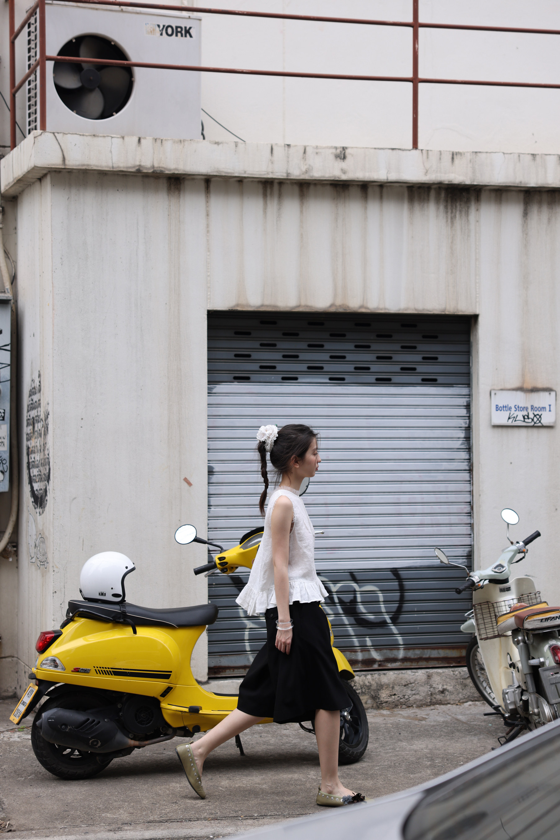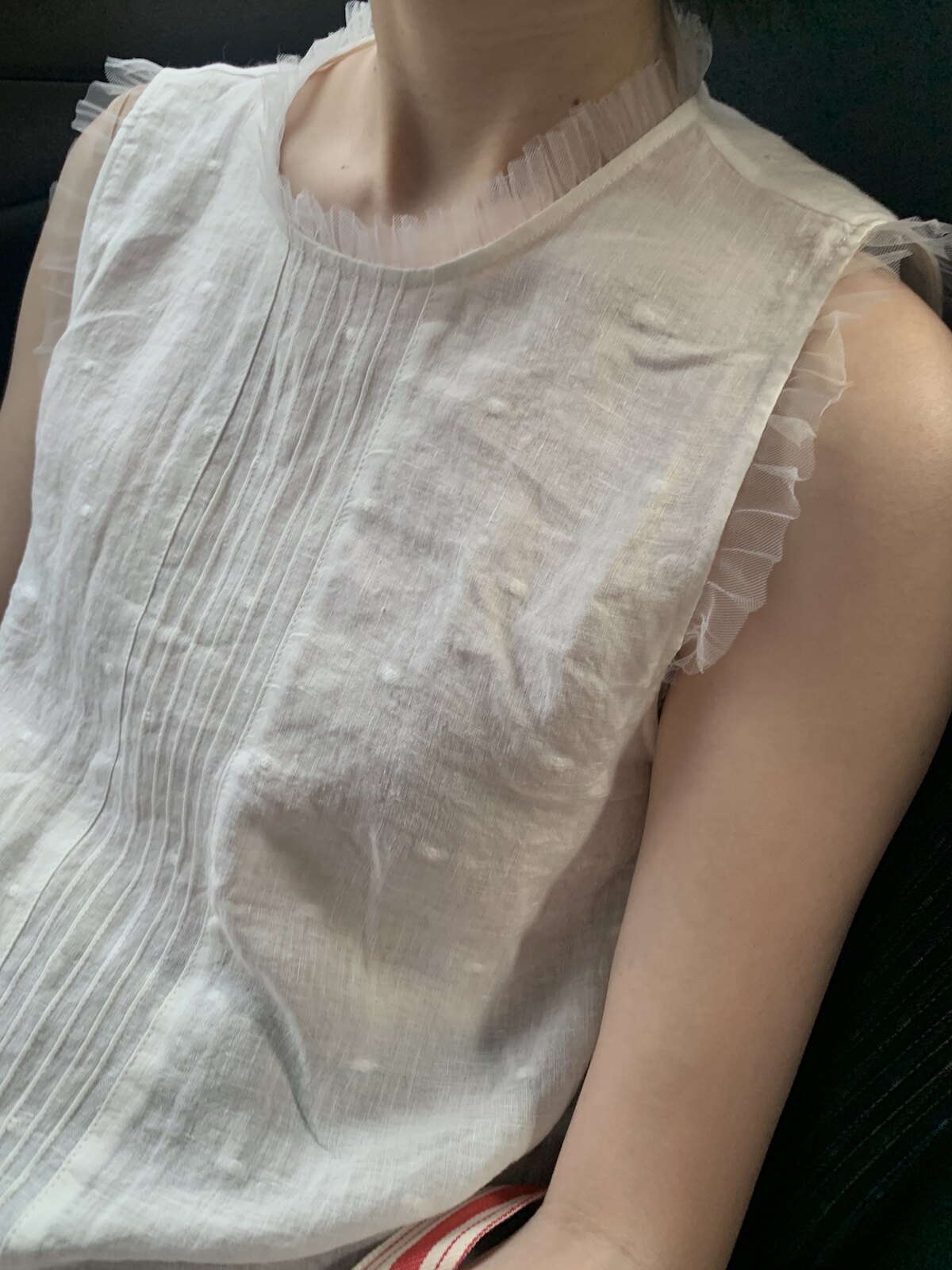 Miroment “Fairy Little Wings” Polka Dot Embroidered Linen Cotton Top in Cool Black/Clear White