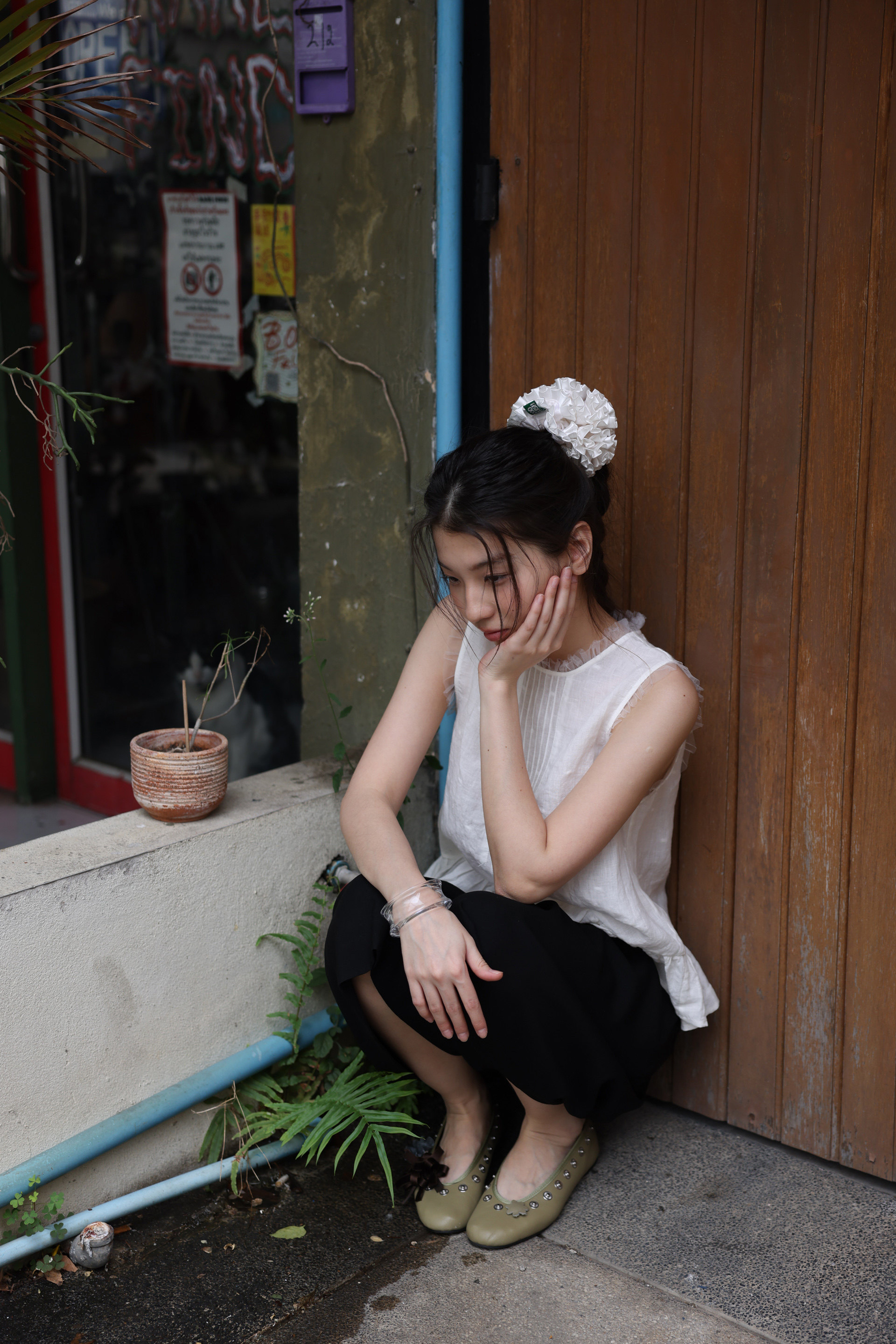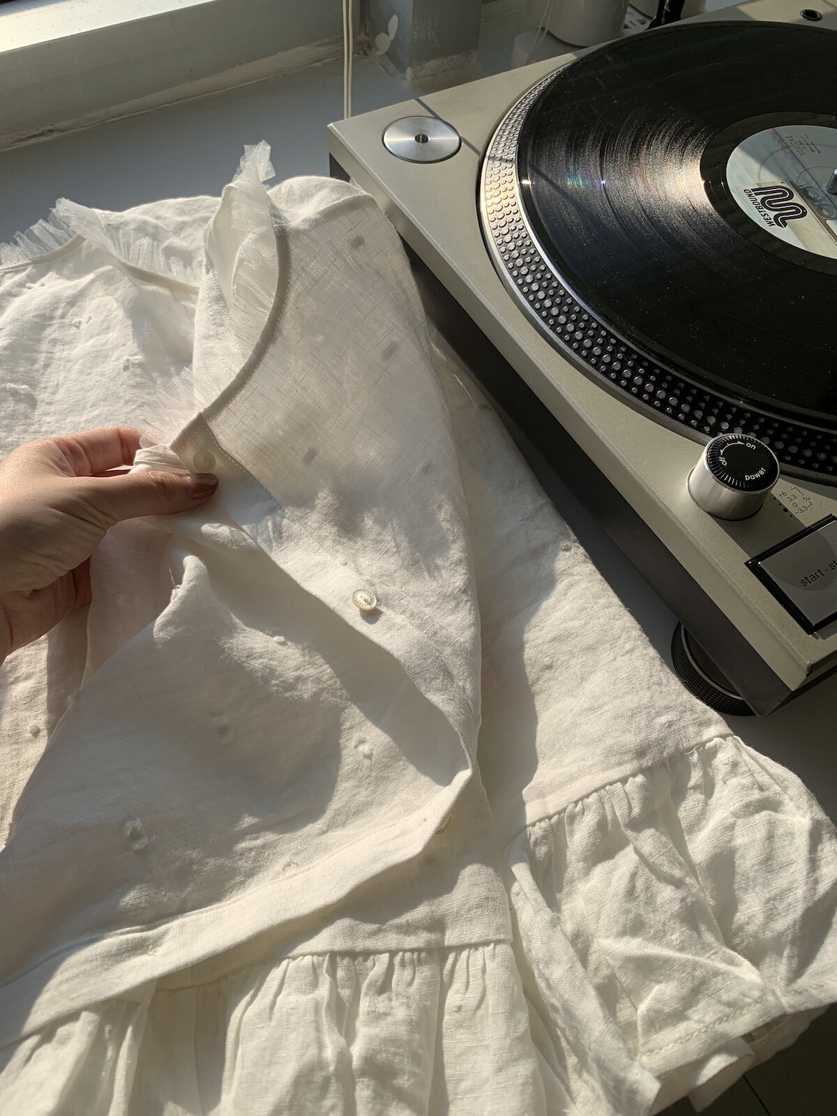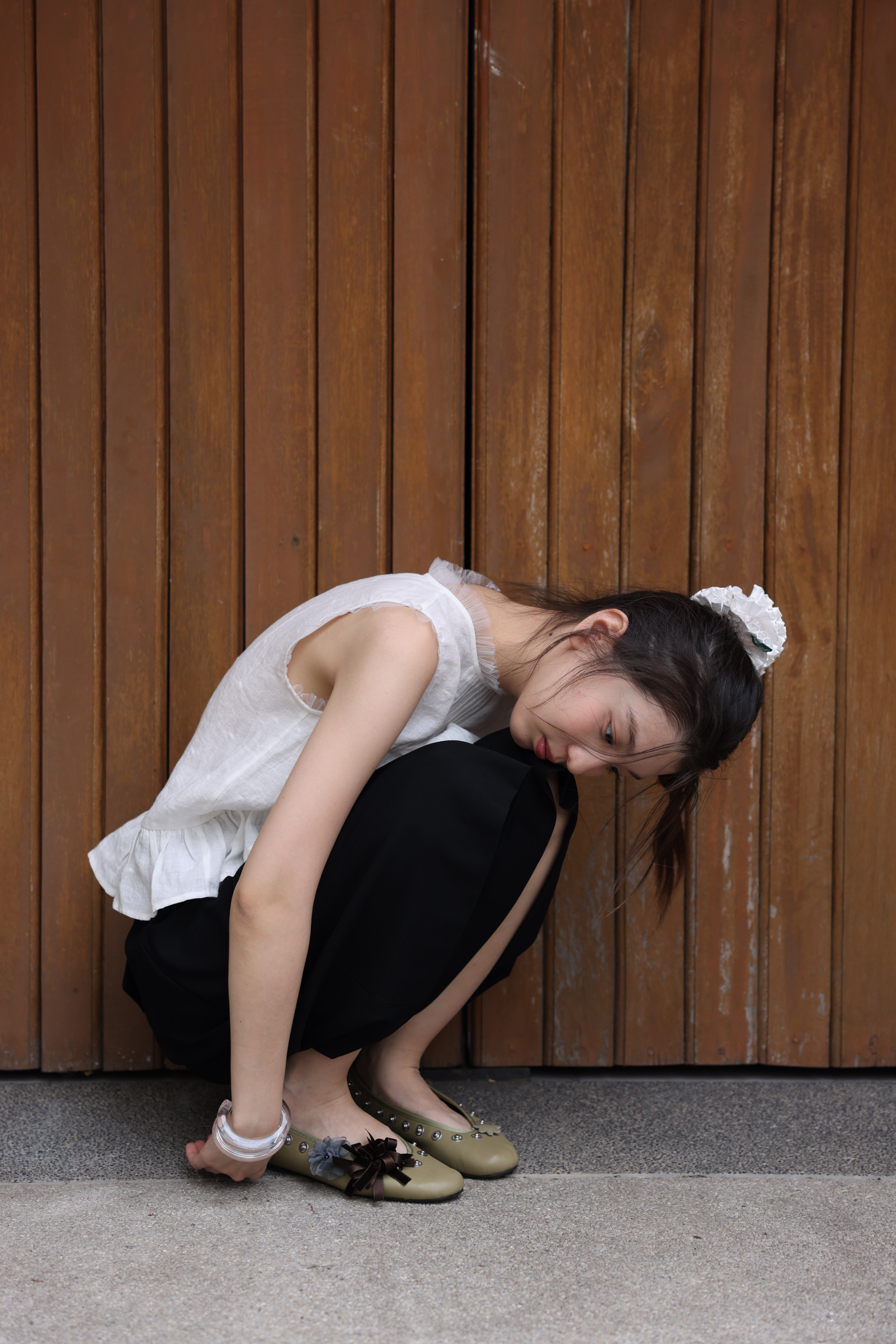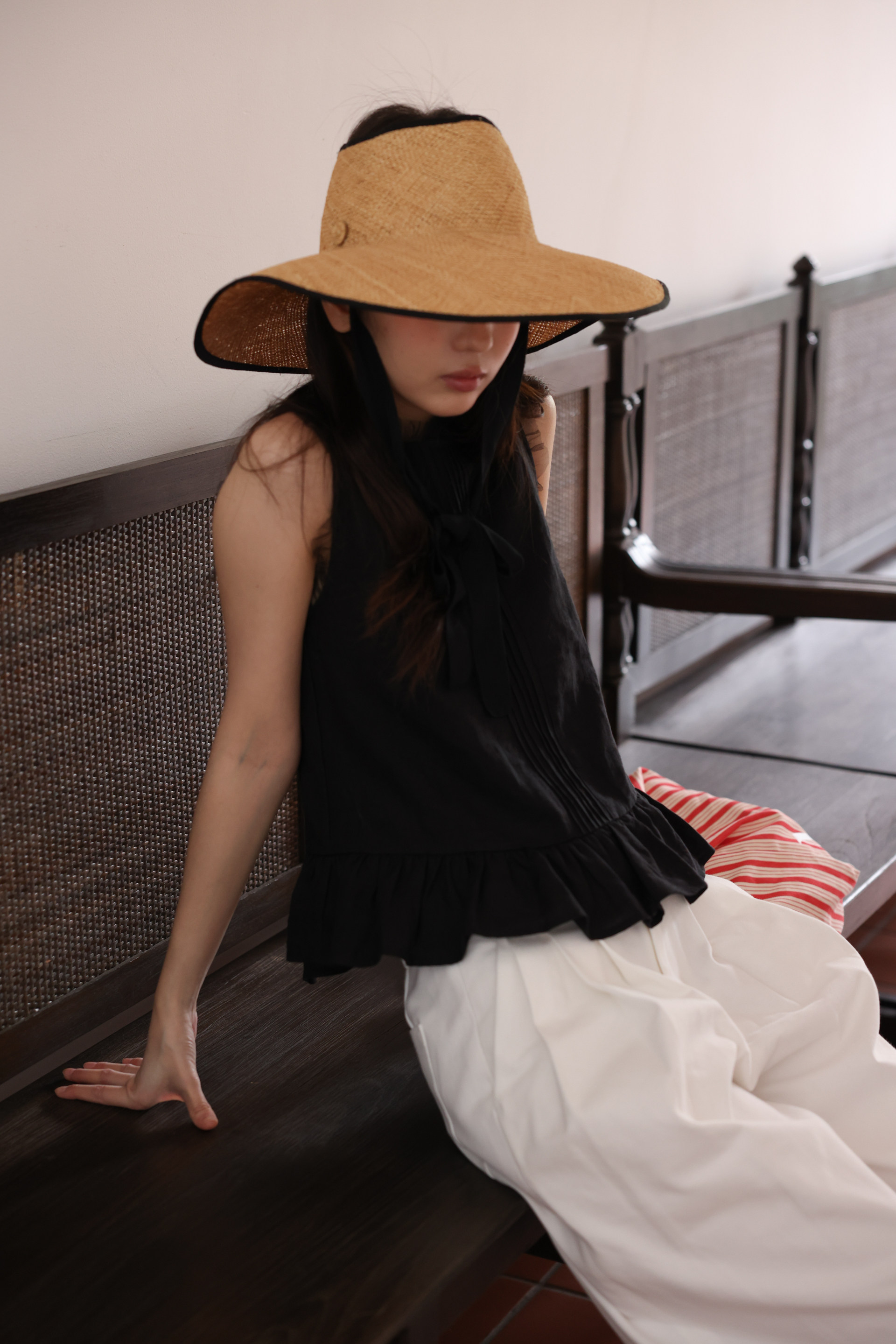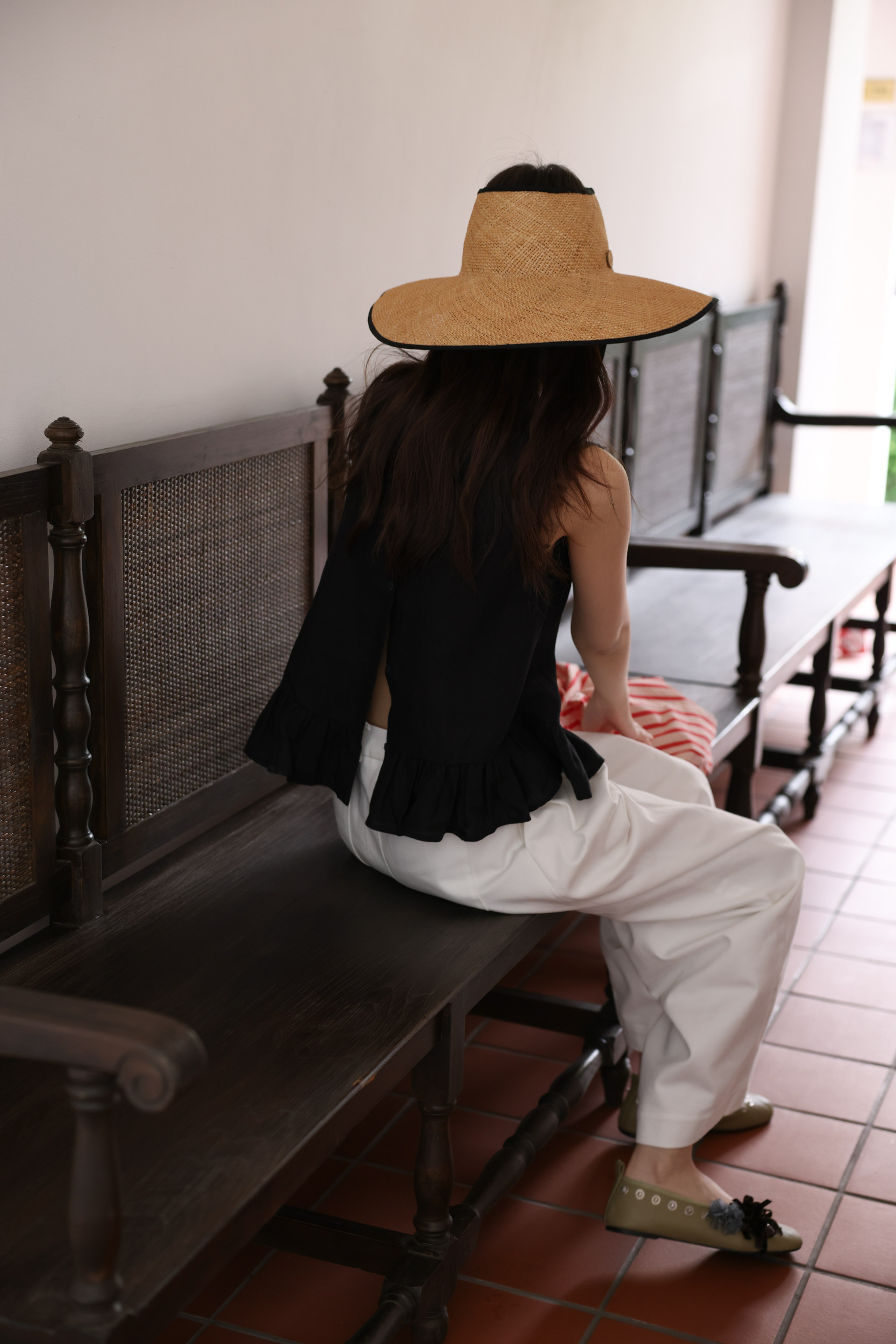 Miroment “Fairy Little Wings” Polka Dot Embroidered Linen Cotton Top in Cool Black/Clear White