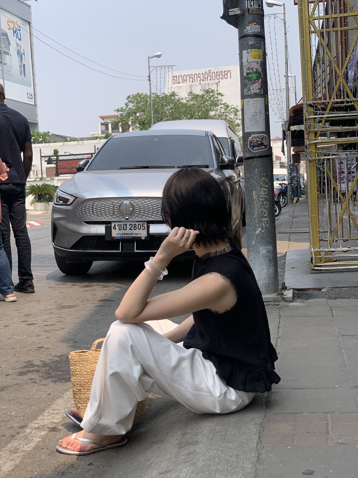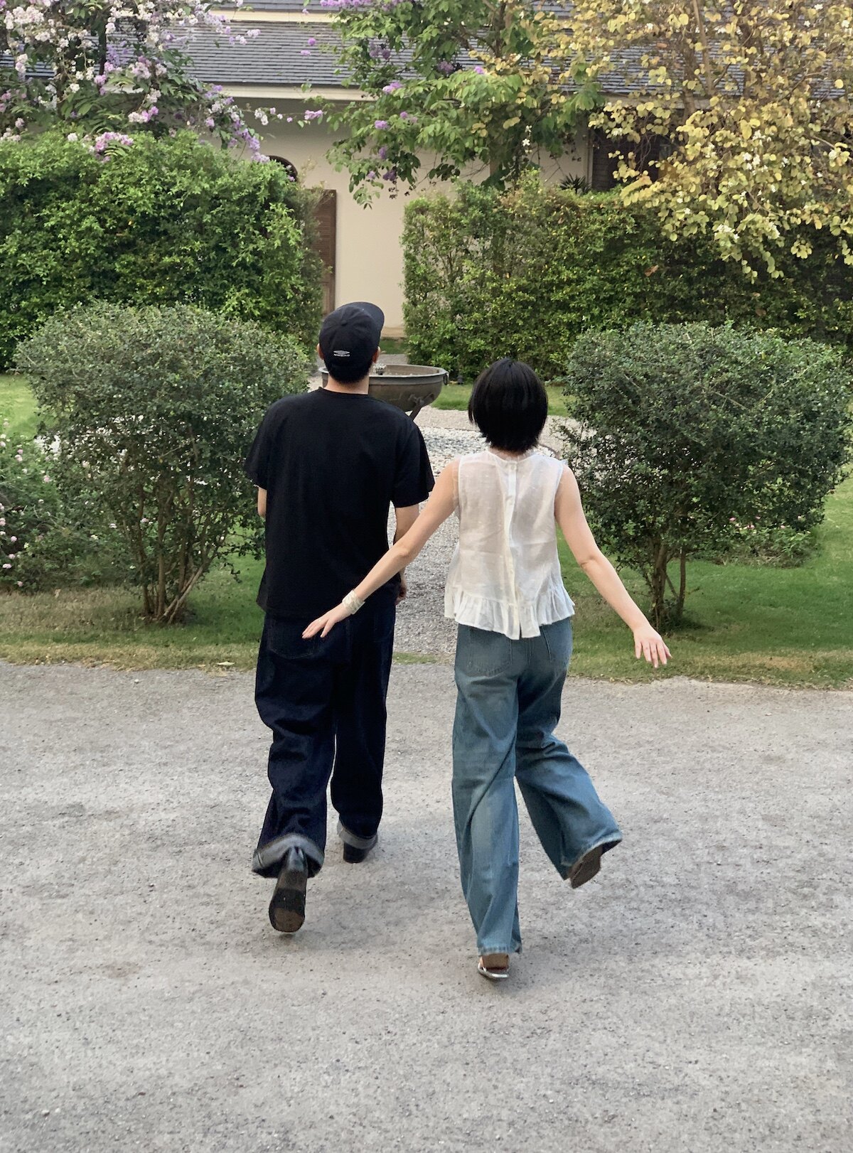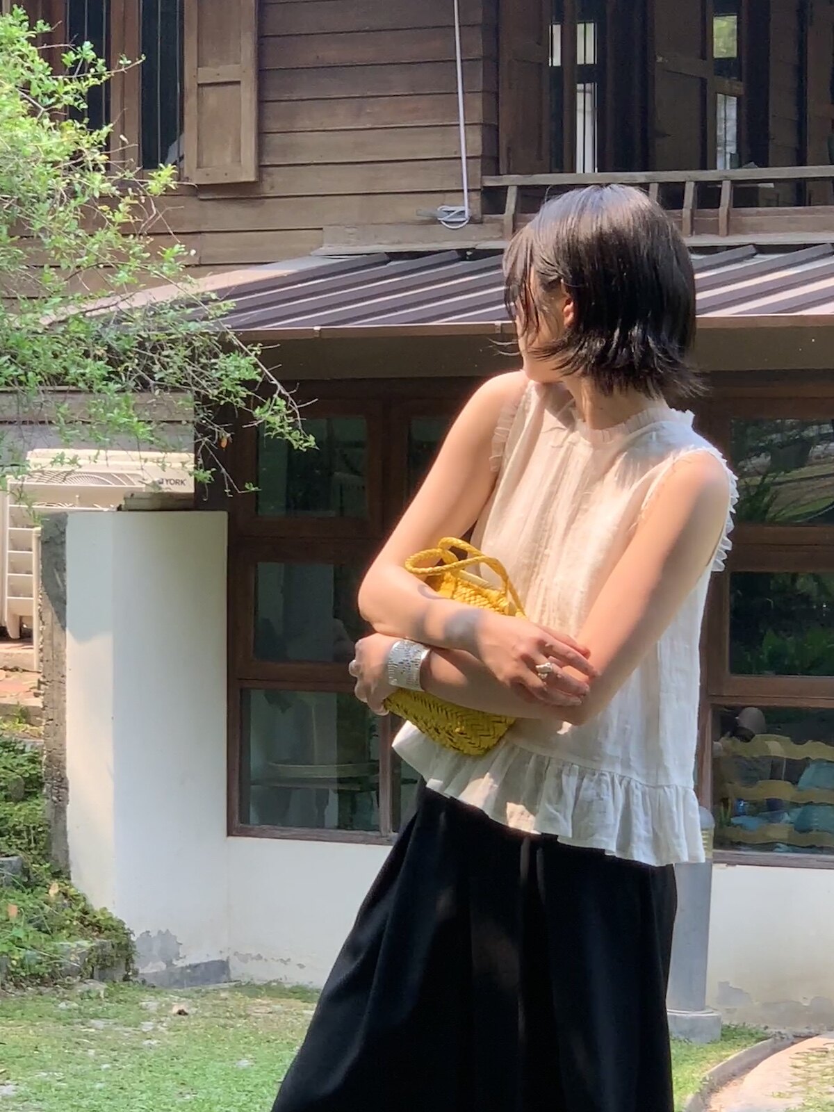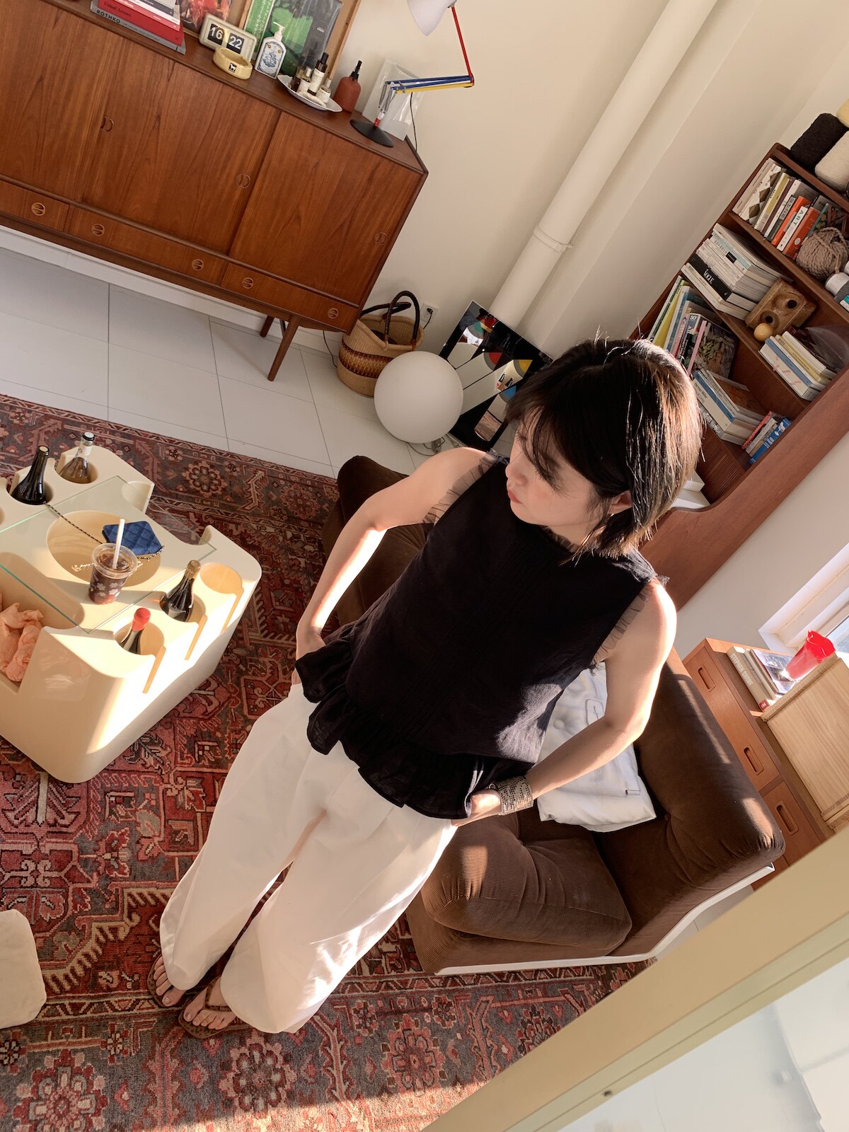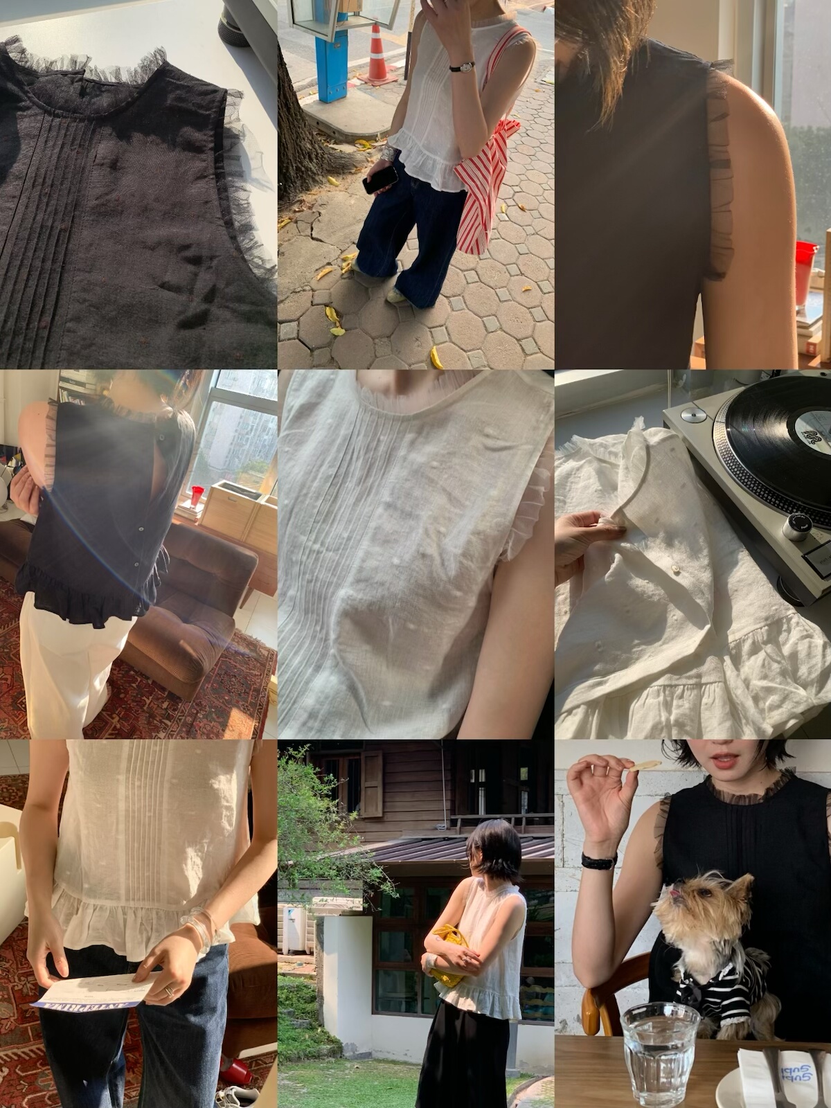 Miroment “Fairy Little Wings” Polka Dot Embroidered Linen Cotton Top in Cool Black/Clear White