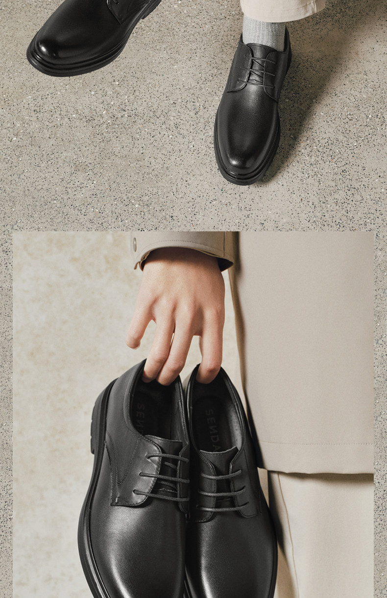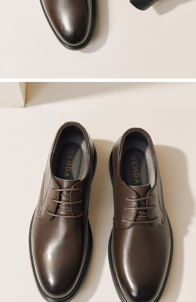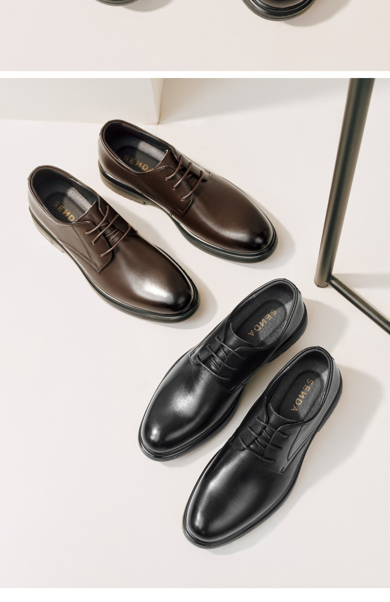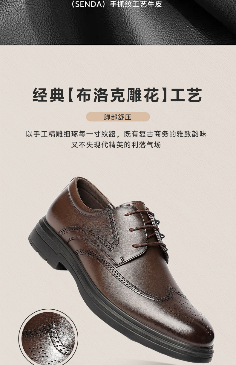 Senda Men's Formal Leather Shoes, Brogue Carved Business Commuting Derby Shoes, Same Style as in the Mall, Genuine Leather Height-Increasing Wedding Shoes