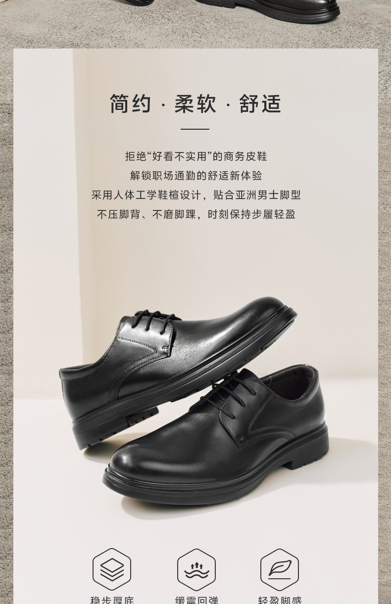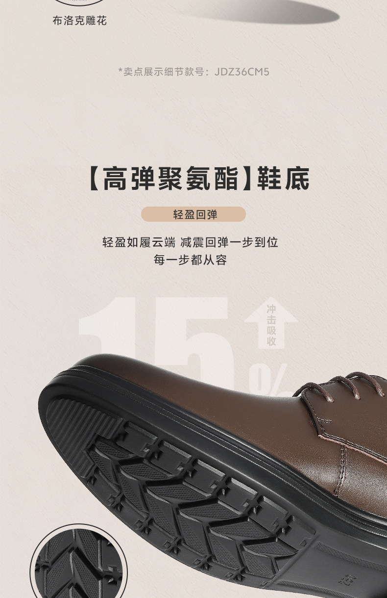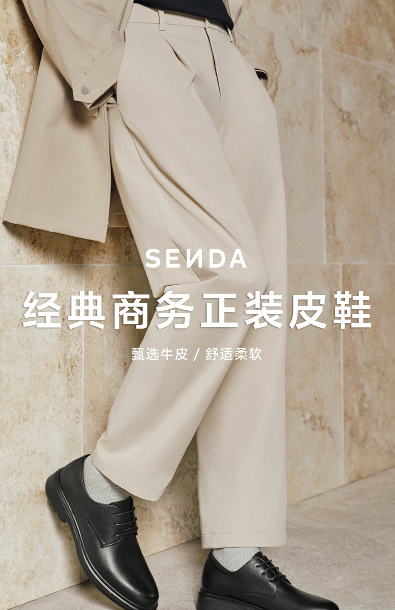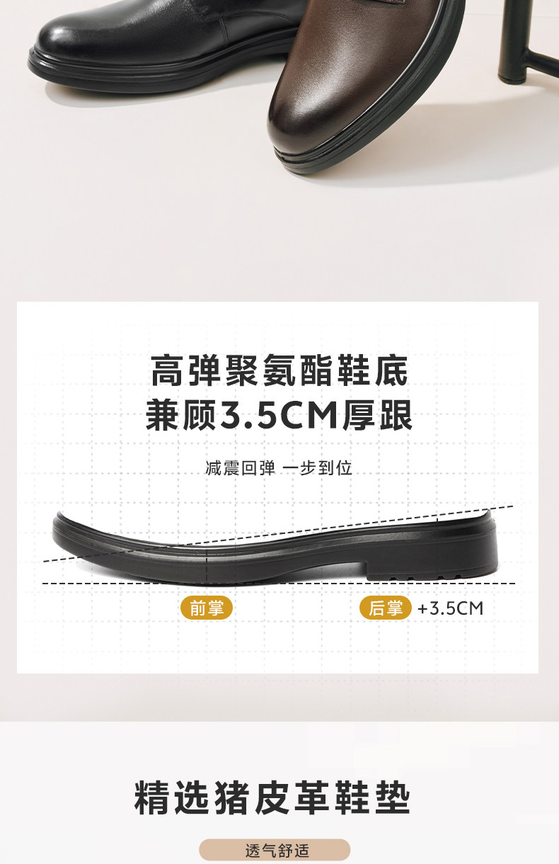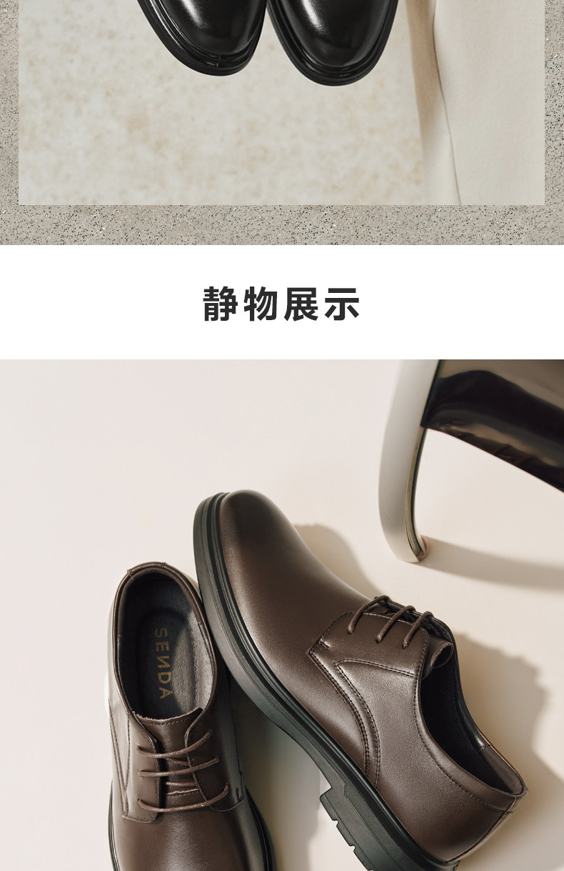 Senda Men's Formal Leather Shoes, Brogue Carved Business Commuting Derby Shoes, Same Style as in the Mall, Genuine Leather Height-Increasing Wedding Shoes