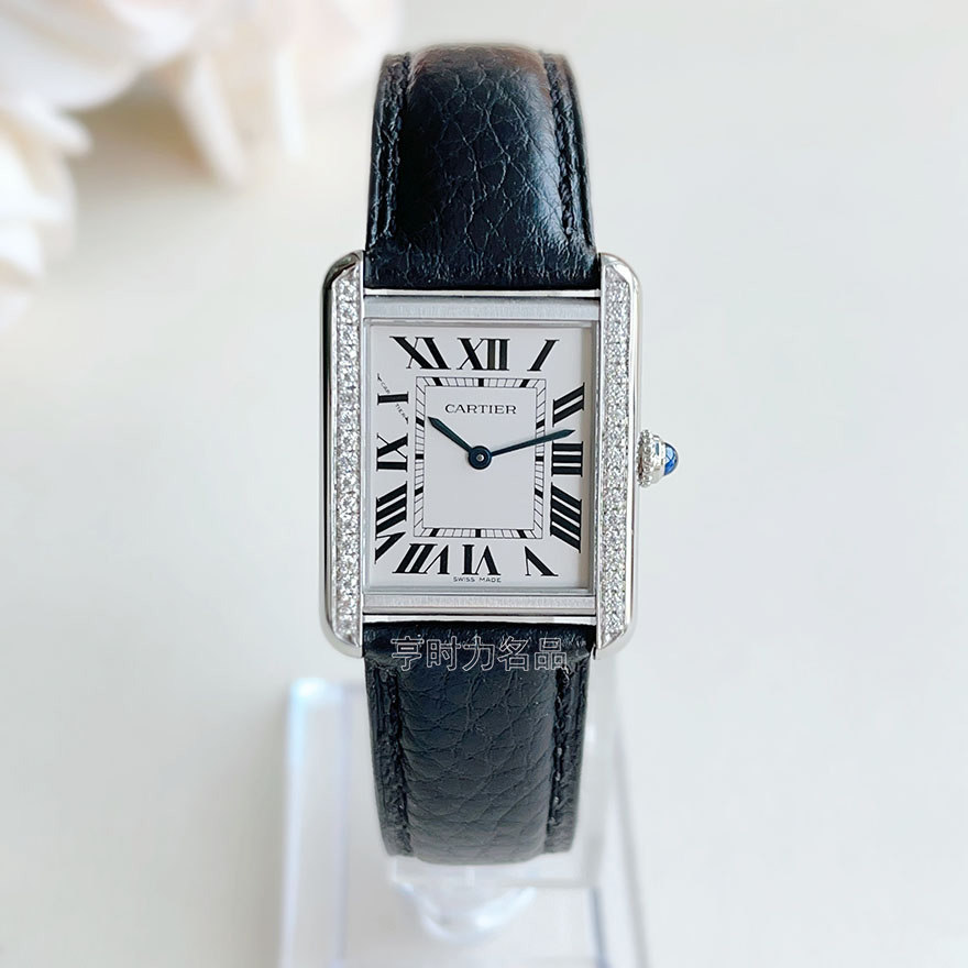 Officially Authenticated Genuine Cartier Tank Small Size Diamond-Encrusted Square Quartz Watch for Women, 98% New, Fashionable and Trendy