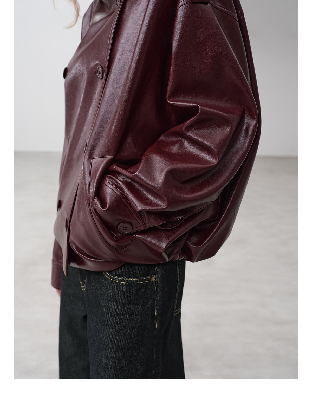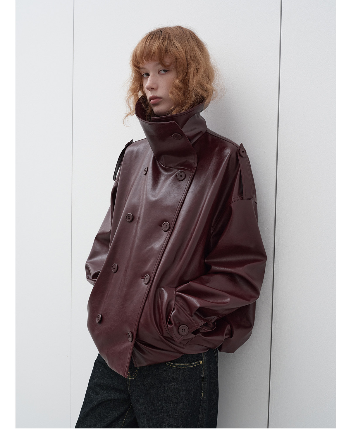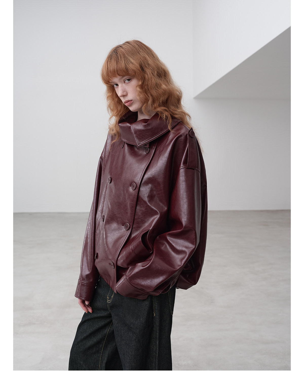 Immune System Burgundy Glossy Leather Loose Jacket Leather Coat