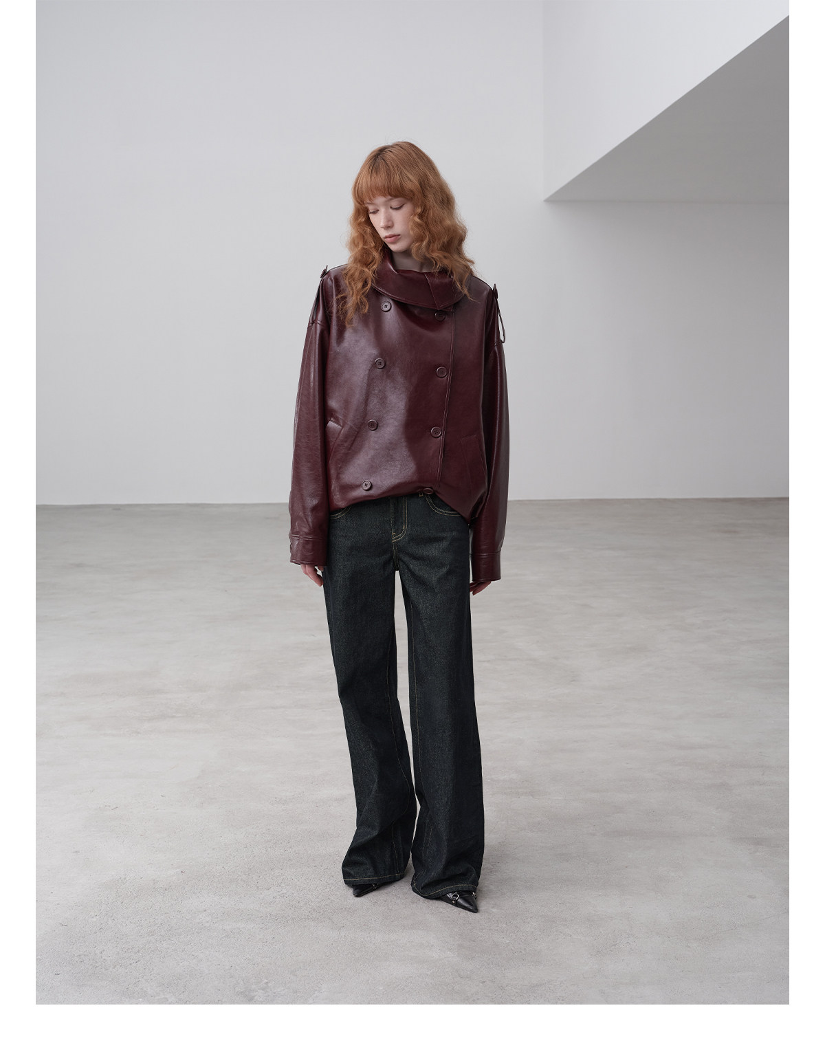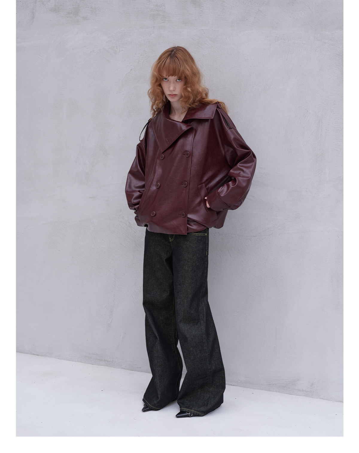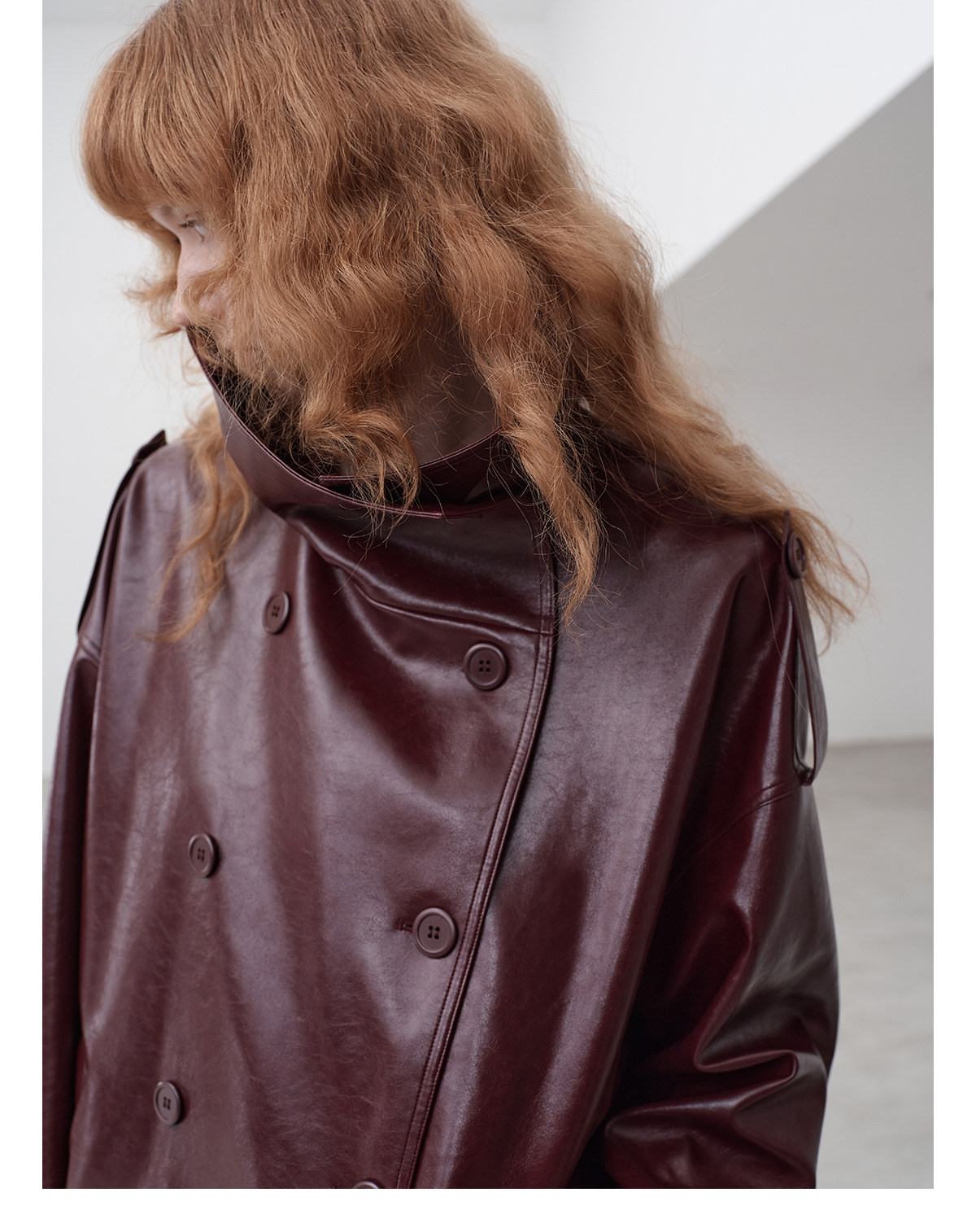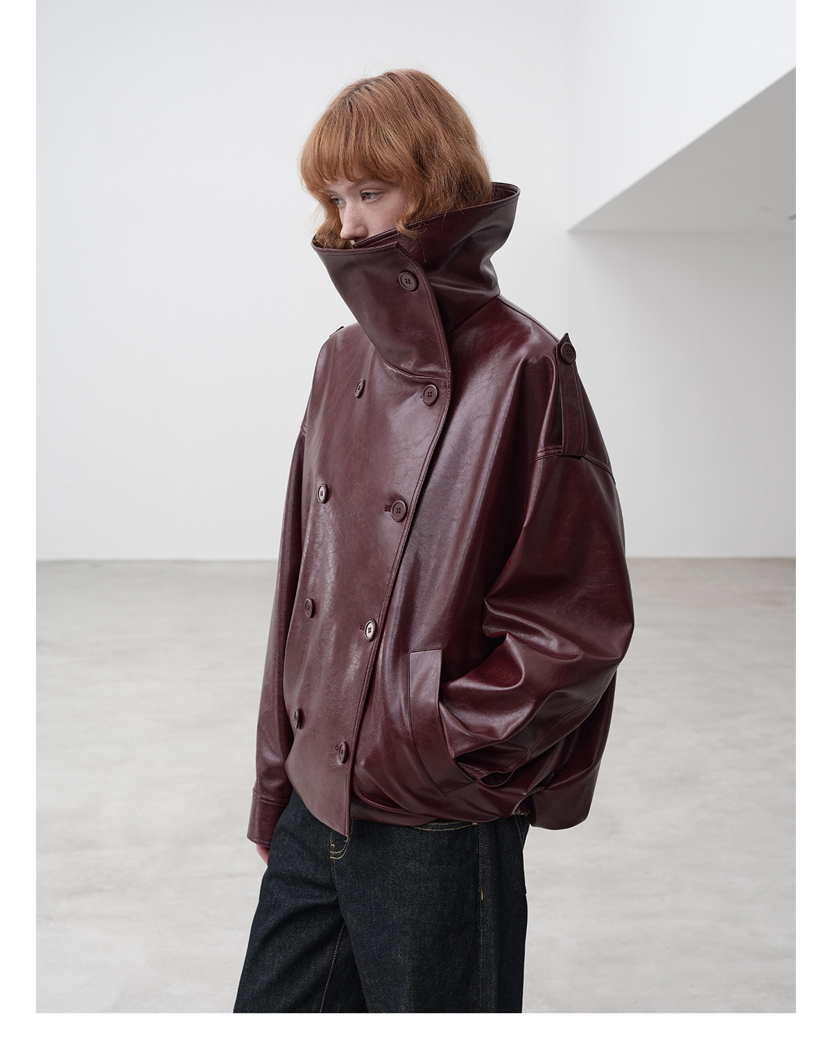 Immune System Burgundy Glossy Leather Loose Jacket Leather Coat