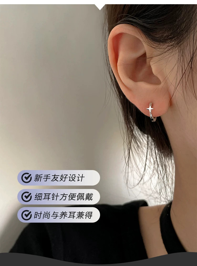 925 Silver Needle Earrings for Ear Care, Ear Hoops for Sleeping, No Need to Remove, High-End Black Ear Studs, Ear Cuffs, Ear Jewelry for Women and Men