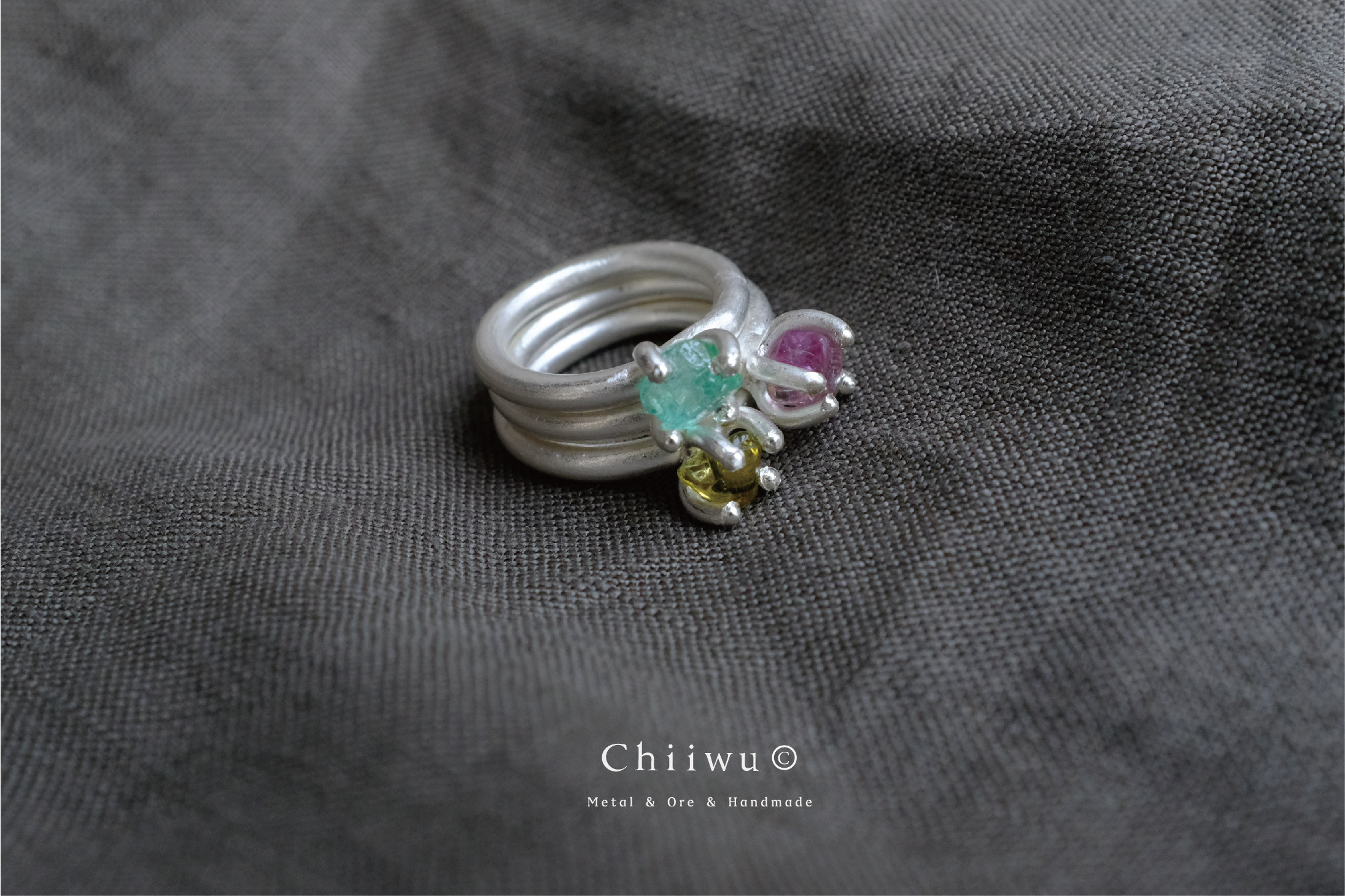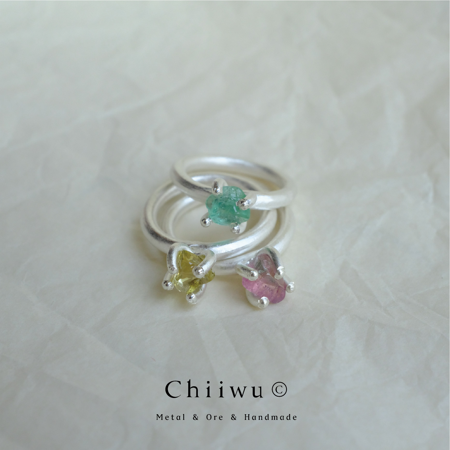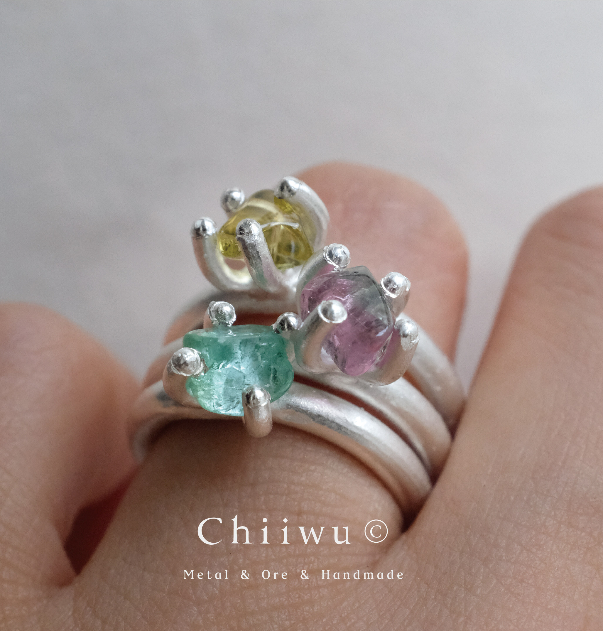 Pot Zoo Potted Plant Zoo Tourmaline Cabochon Candy Raw Stone 925 Silver Ring Stackable Handmade
