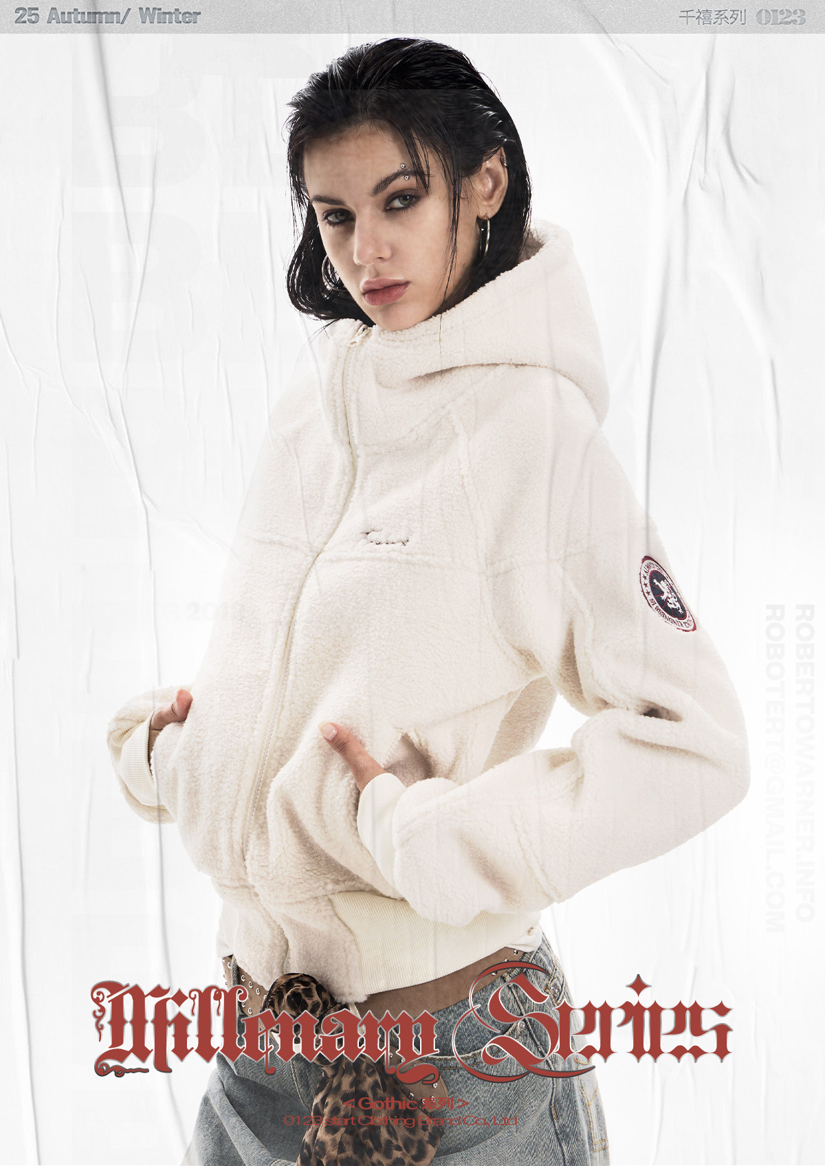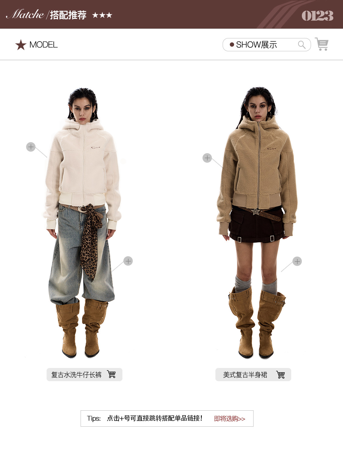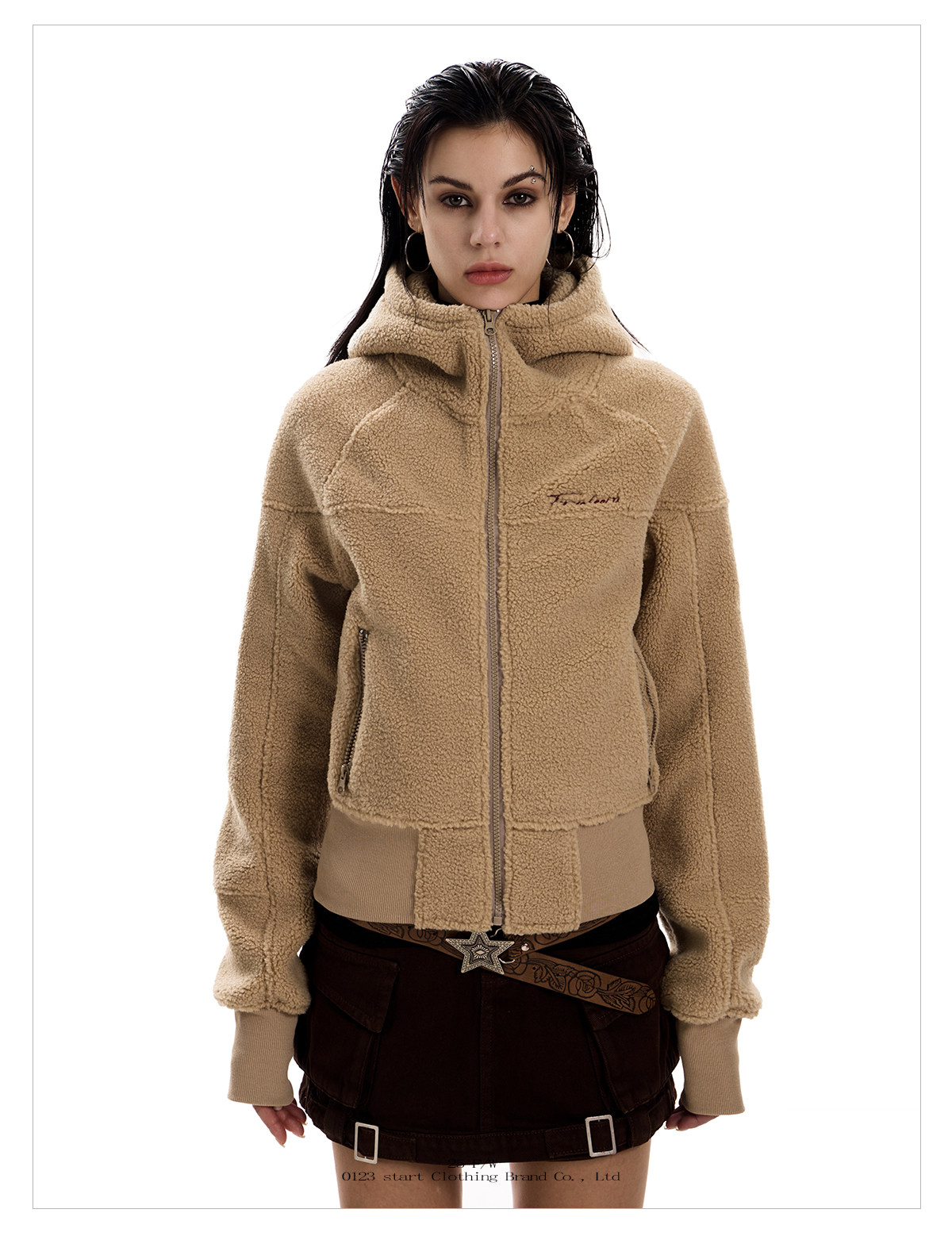 0123Start Retro Lamb Wool Short Jacket for Women, Loose and Lazy Style, American-Style Thickened Hooded Top for Autumn and Winter
