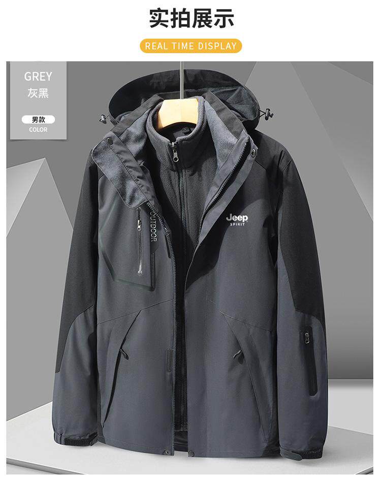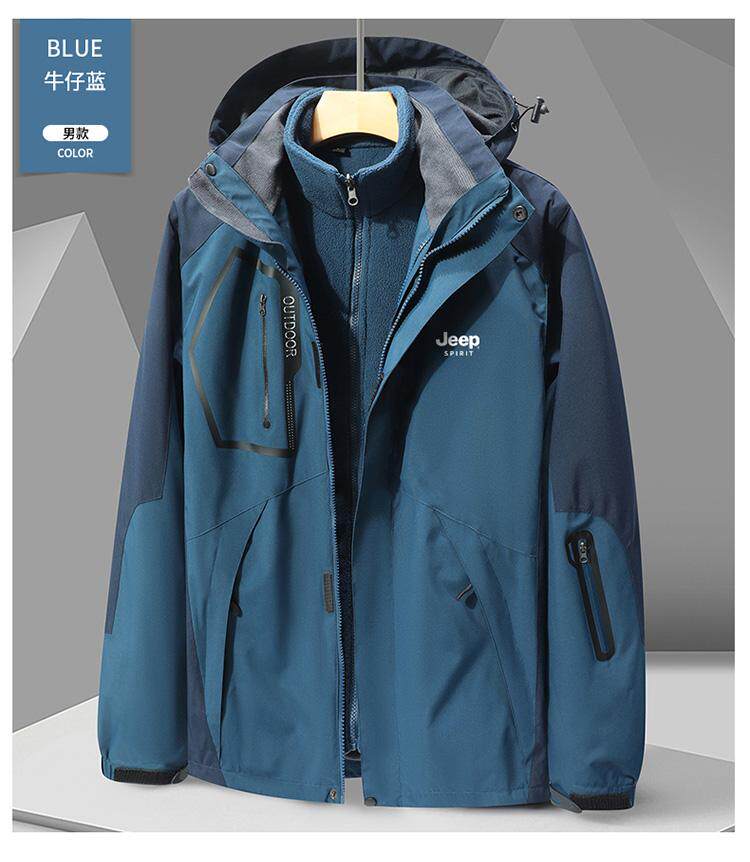 Jeep Men's Three-In-One Detachable Autumn and Winter New Style Fleece-Lined Thickened Large Size Casual Jacket for Men
