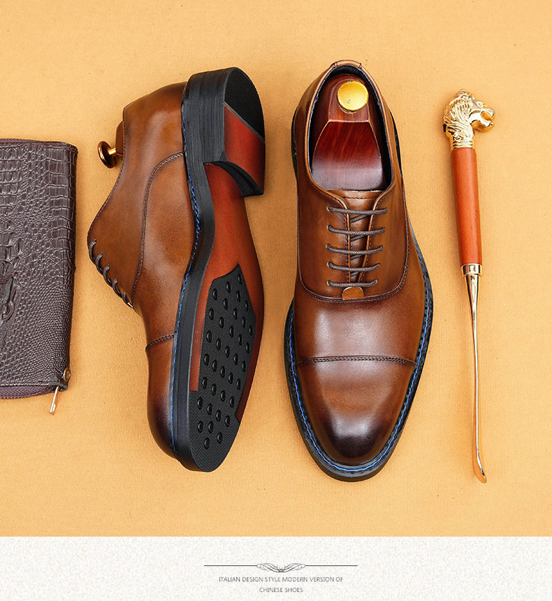 Oland Paul Genuine Leather Handmade Leather Shoes for Men, Business Formal Wear, Three-Joint Pointed Toe, Norwegian Stitched Oxford Shoes for Men