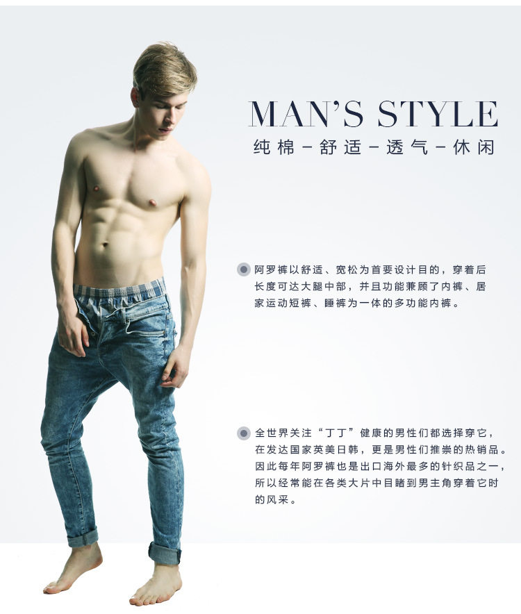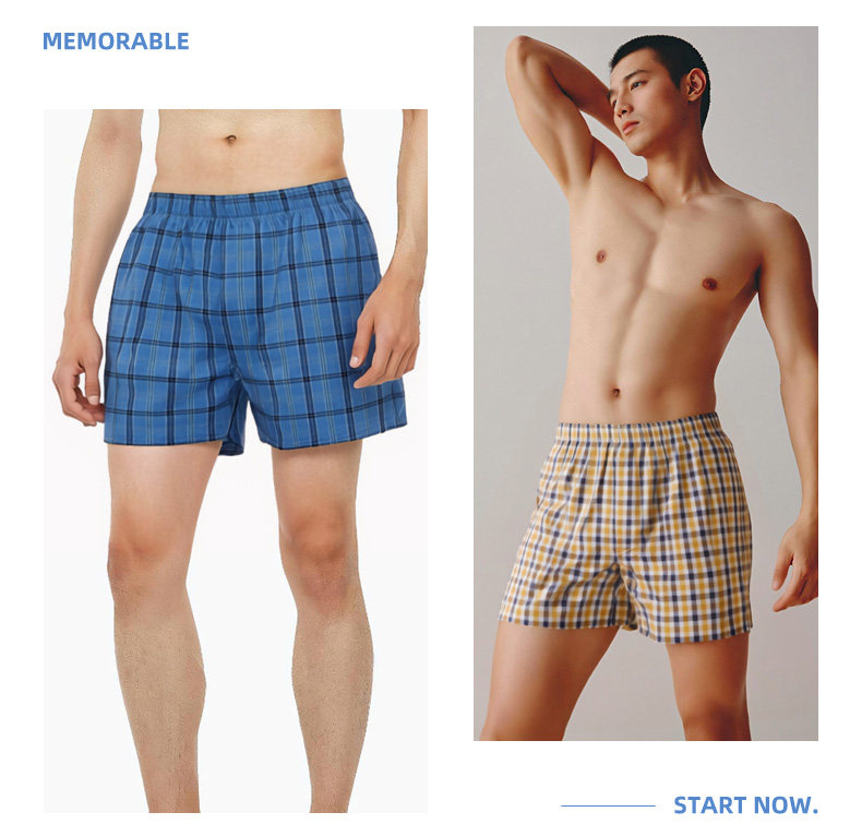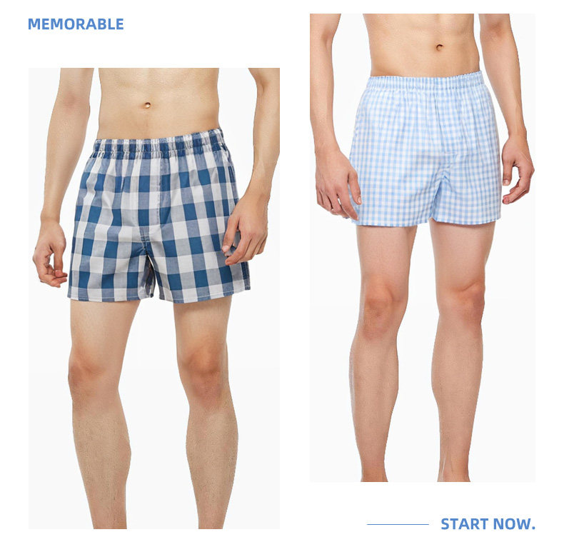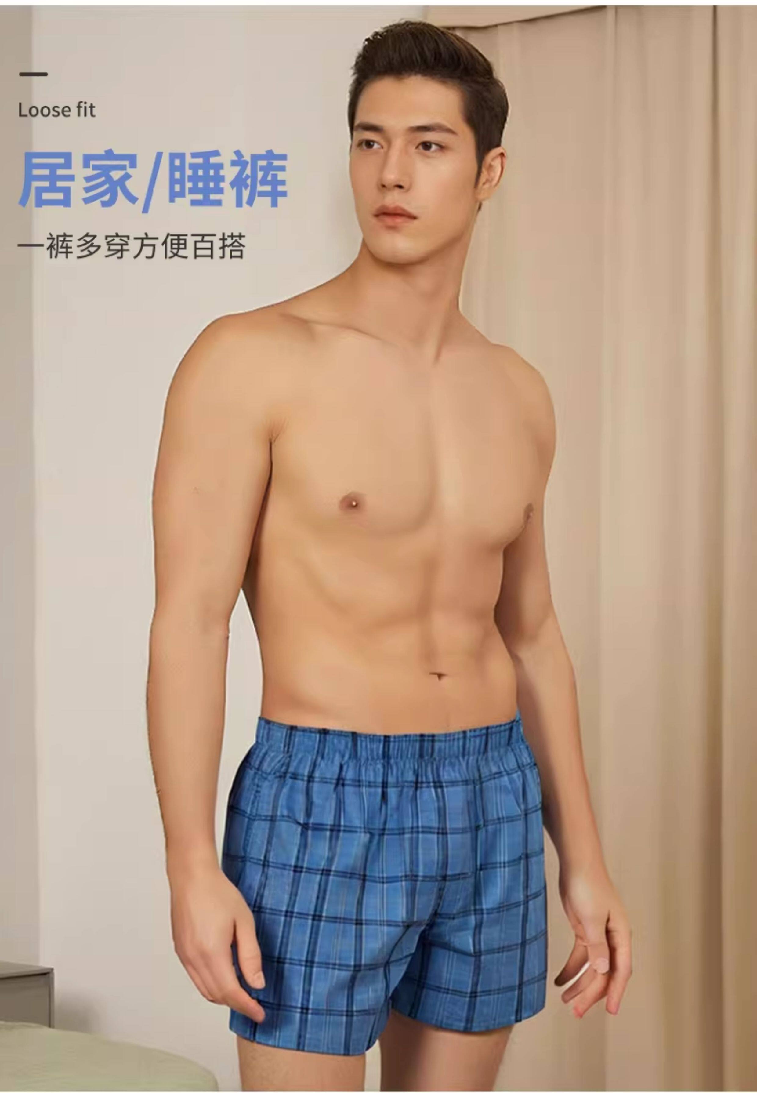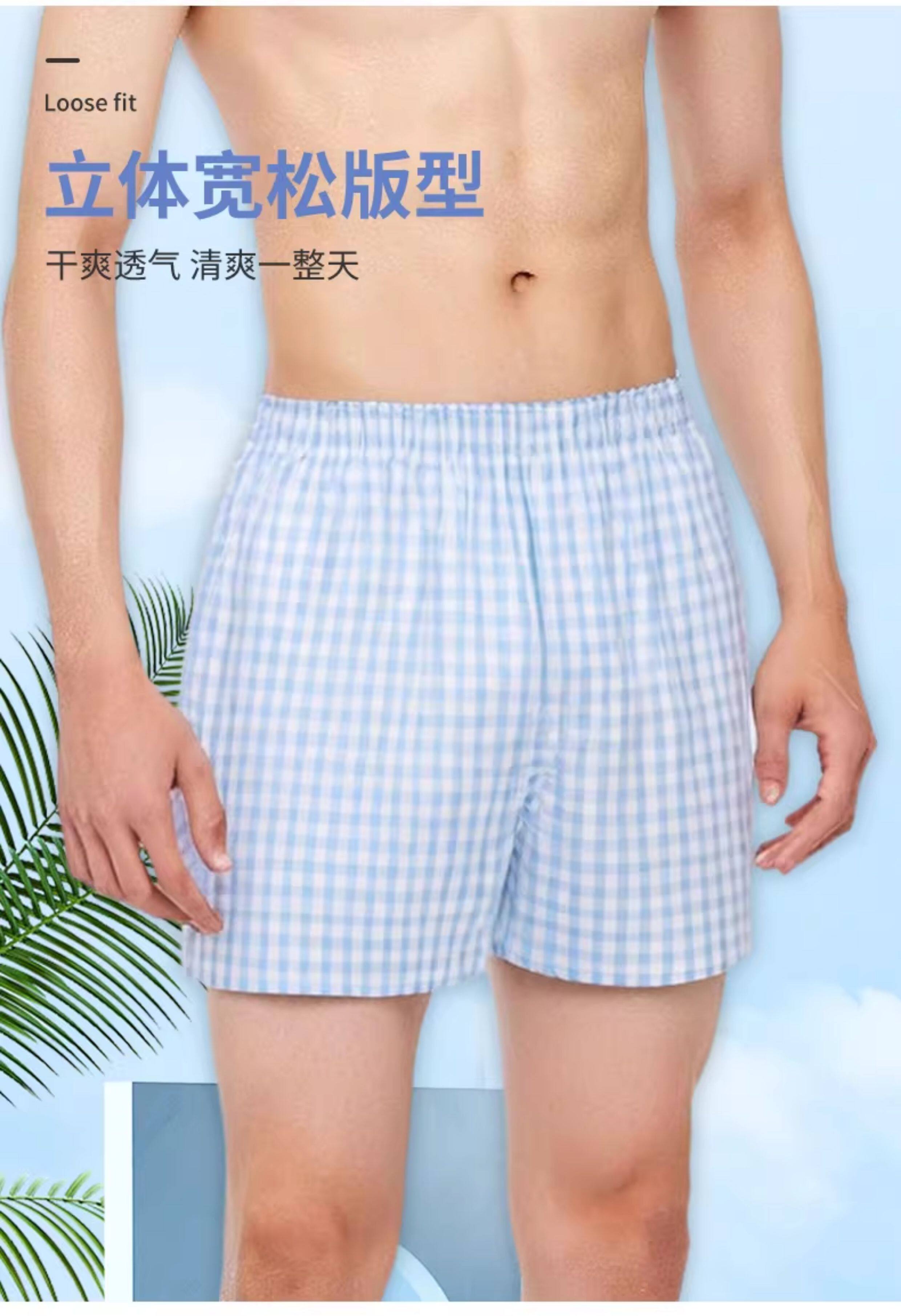 Yalu All-Cotton Men's Underwear, Loose Boxer Shorts, Pure Cotton Plaid Shorts, Two-Point Boxer Shorts, Haro Pants for Sleeping Naked