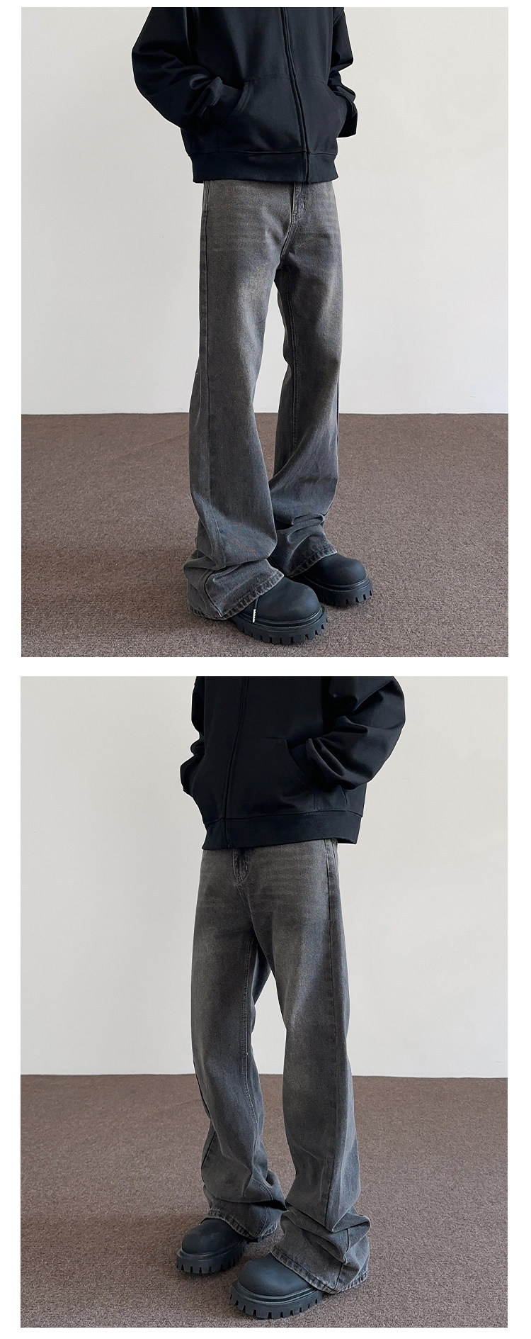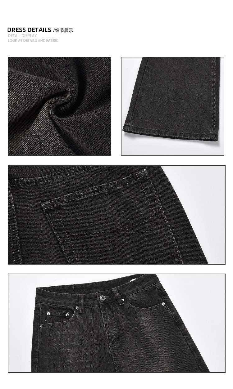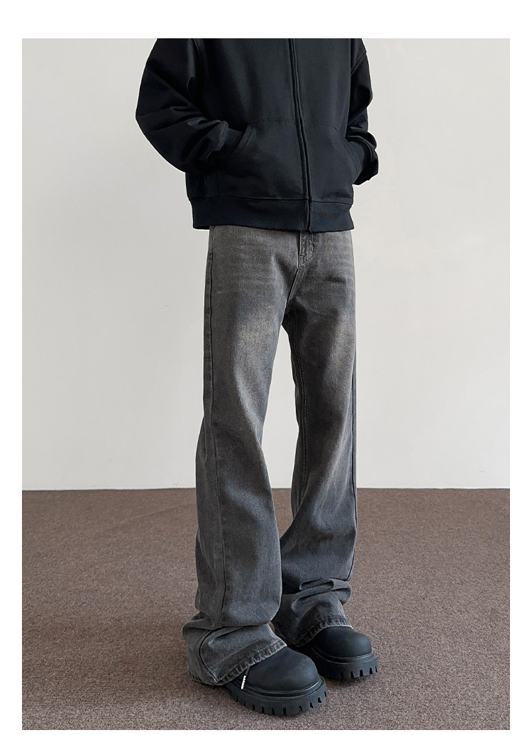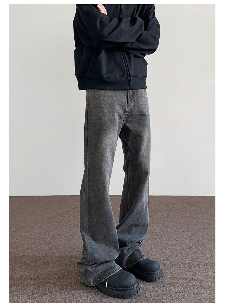 Apuee American High Street Cleanfit Distressed Smoky Gray Jeans Unisex Trendy Straight-Leg Slightly Flared Vibe Pants