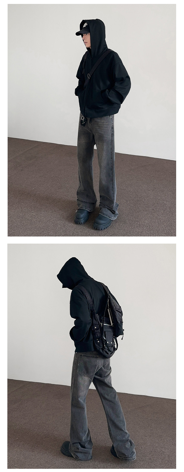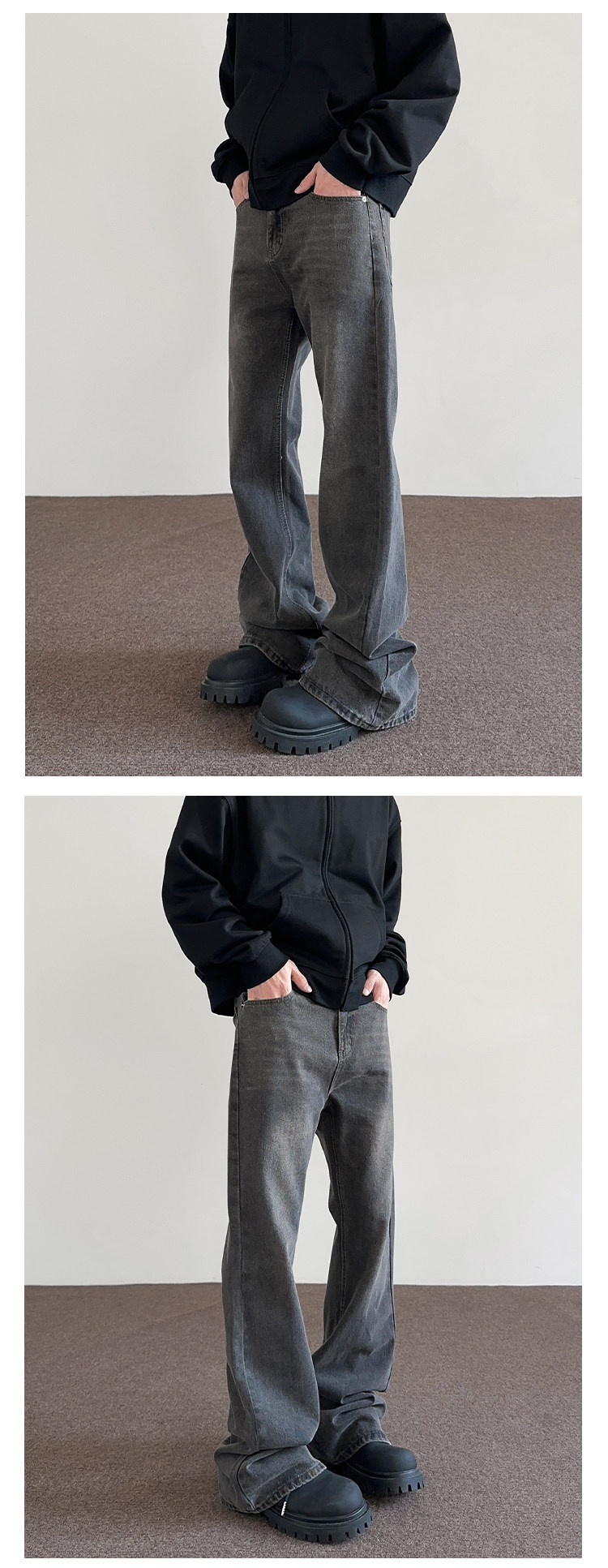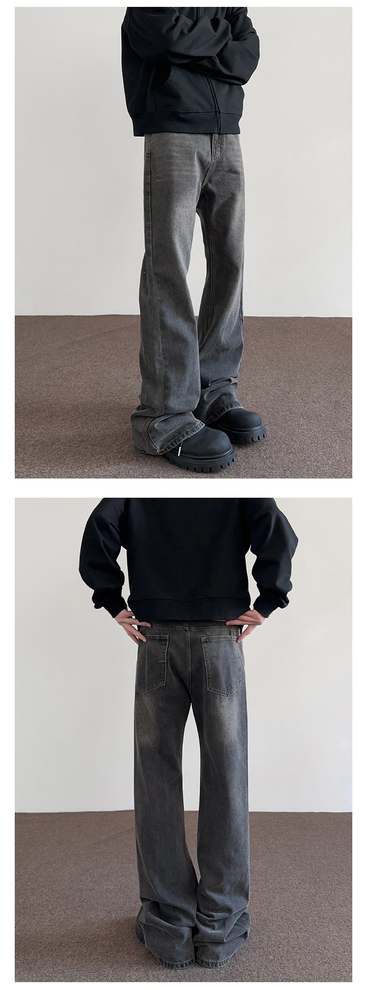 Apuee American High Street Cleanfit Distressed Smoky Gray Jeans Unisex Trendy Straight-Leg Slightly Flared Vibe Pants