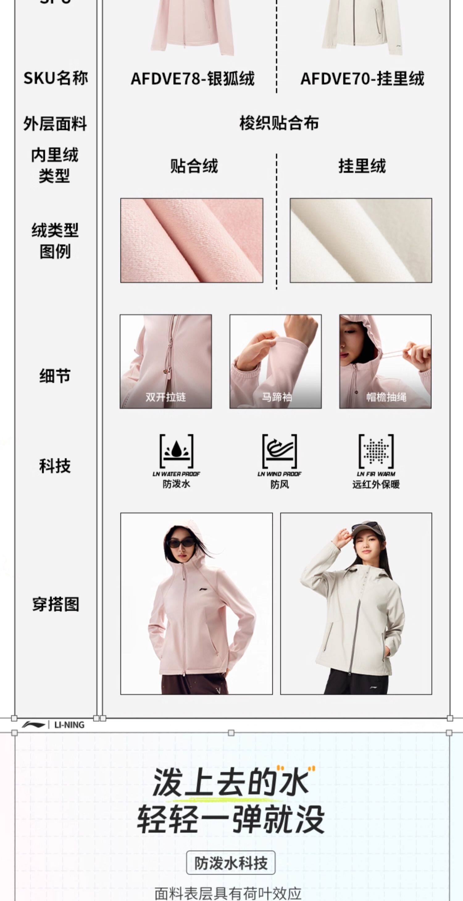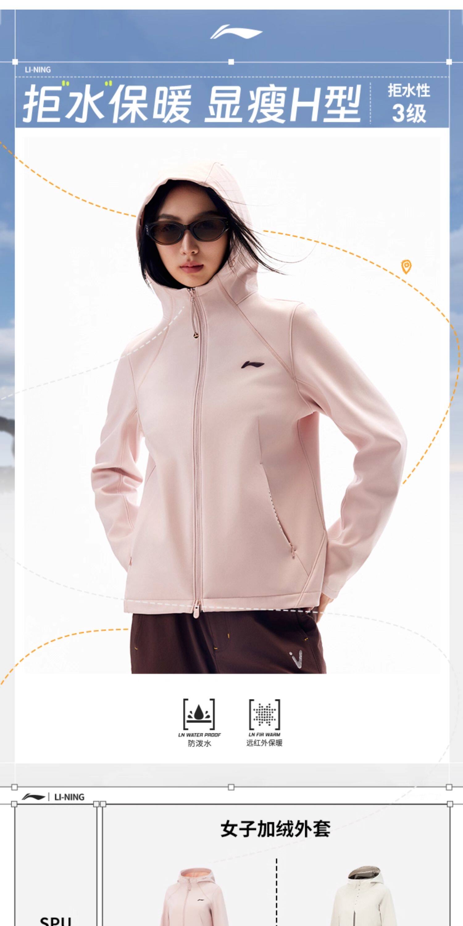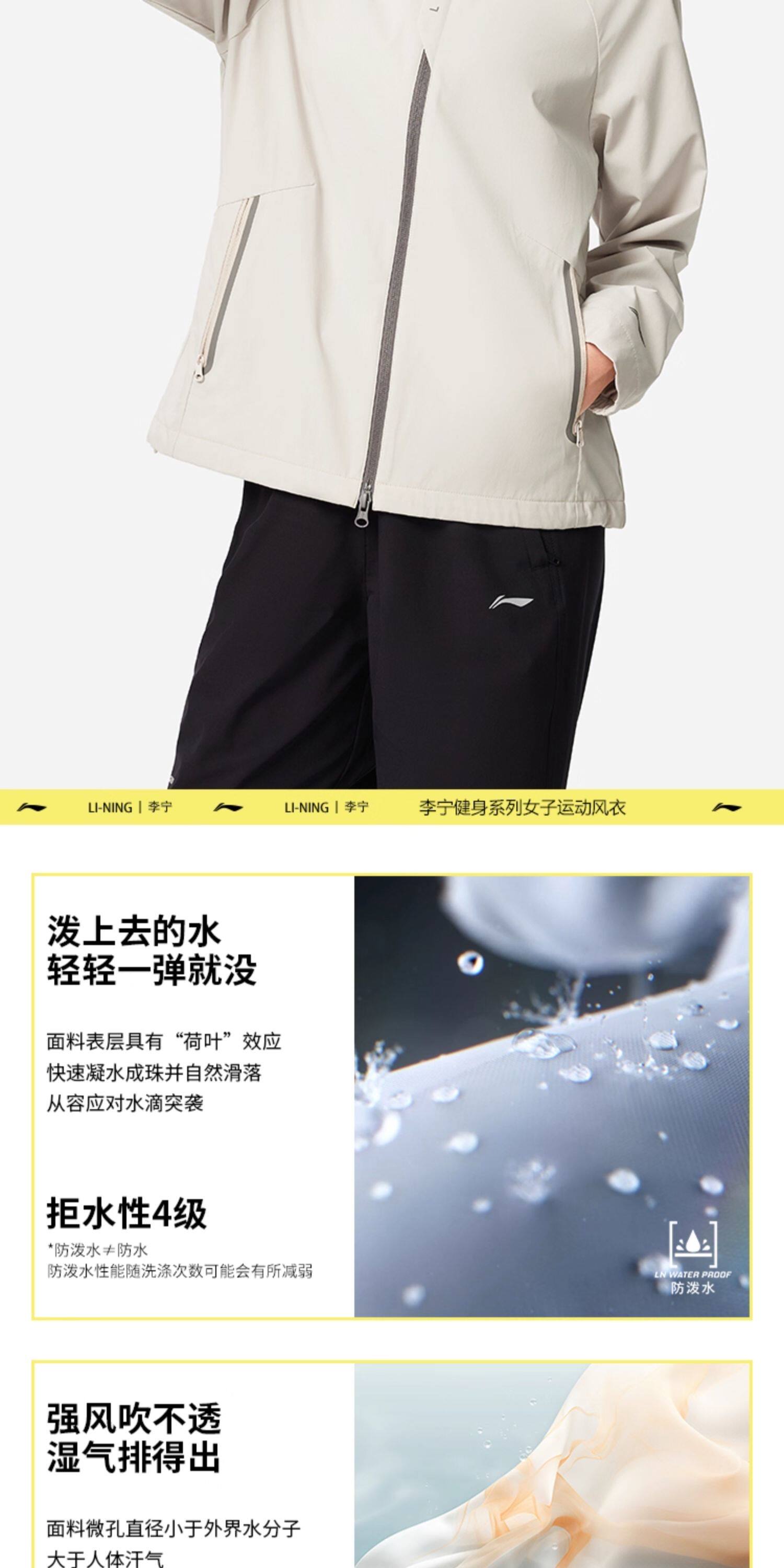 Li-Ning Softshell Jacket for Women, Spring and Autumn Top, Running Jacket, Windproof, Water-Repellent, Slim Fit, Hooded Sports Windbreaker