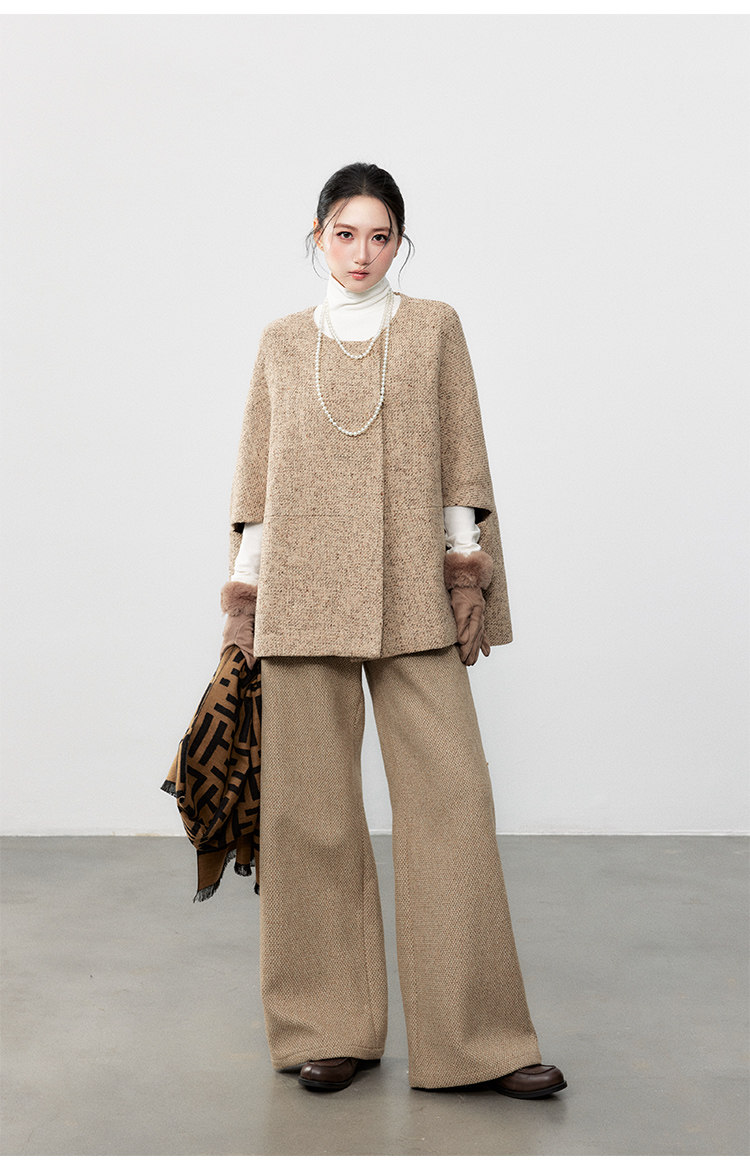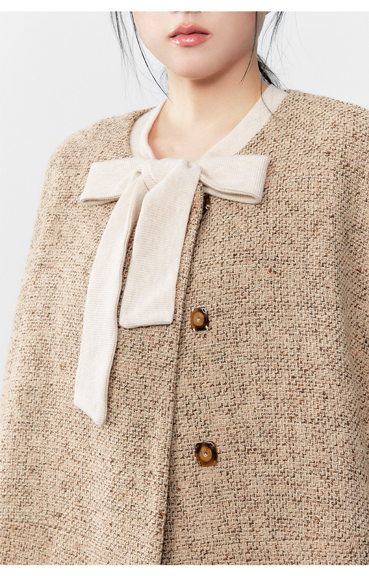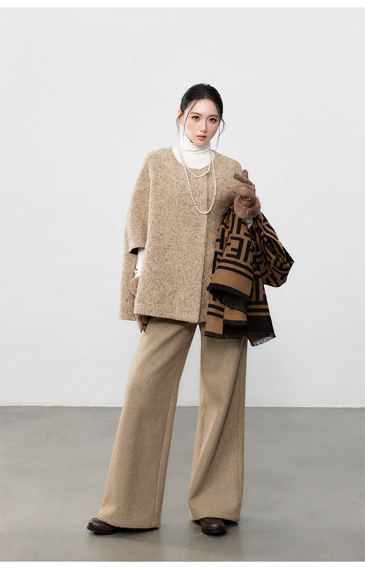 Yuzhi Retro Khaki Elegant Cape Coat Autumn and Winter New Style Atmospheric Loose Chanel-Style Jacket