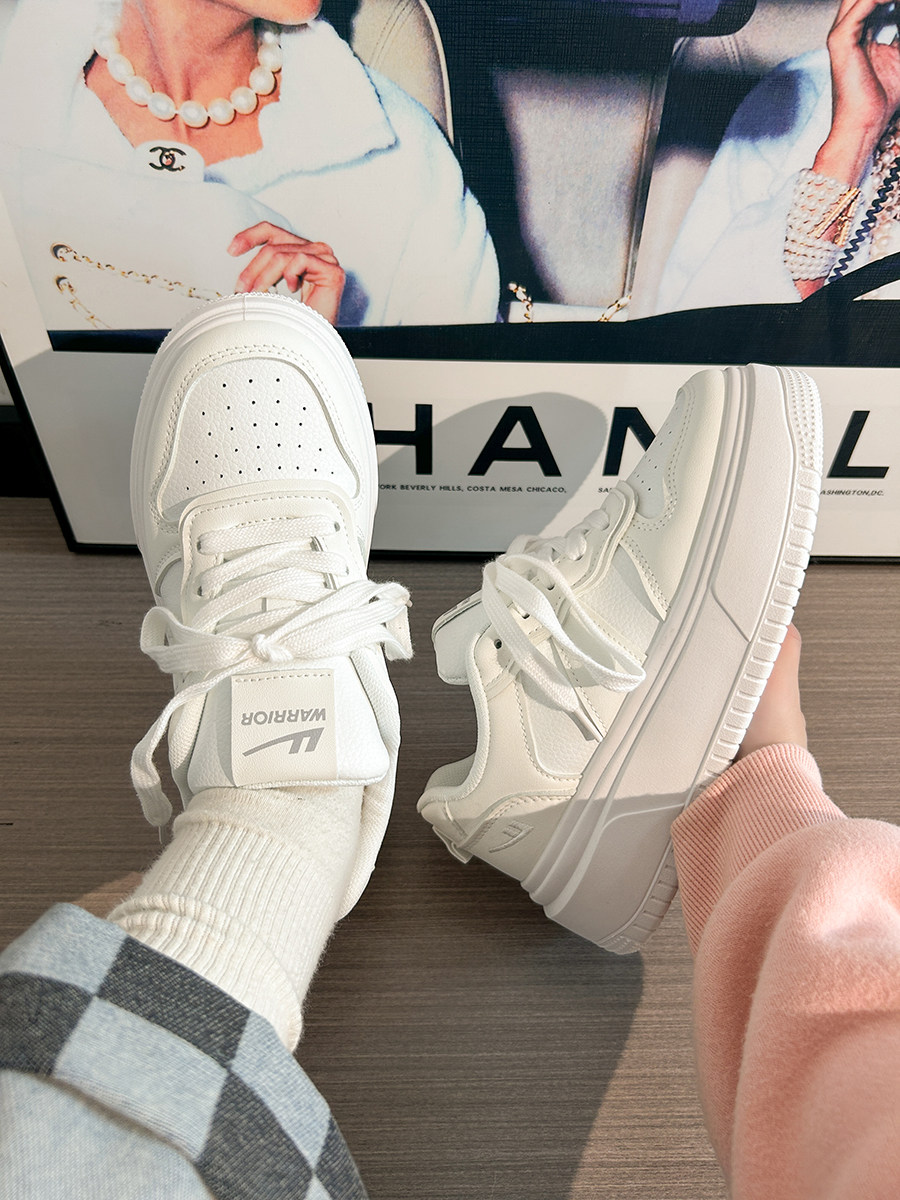 Pull-Back Thick-Soled White Sneakers for Women, New Spring/Summer Popular Style, Simple Breathable Sneakers for Female Students, Versatile Large-Toe Shoes for Women