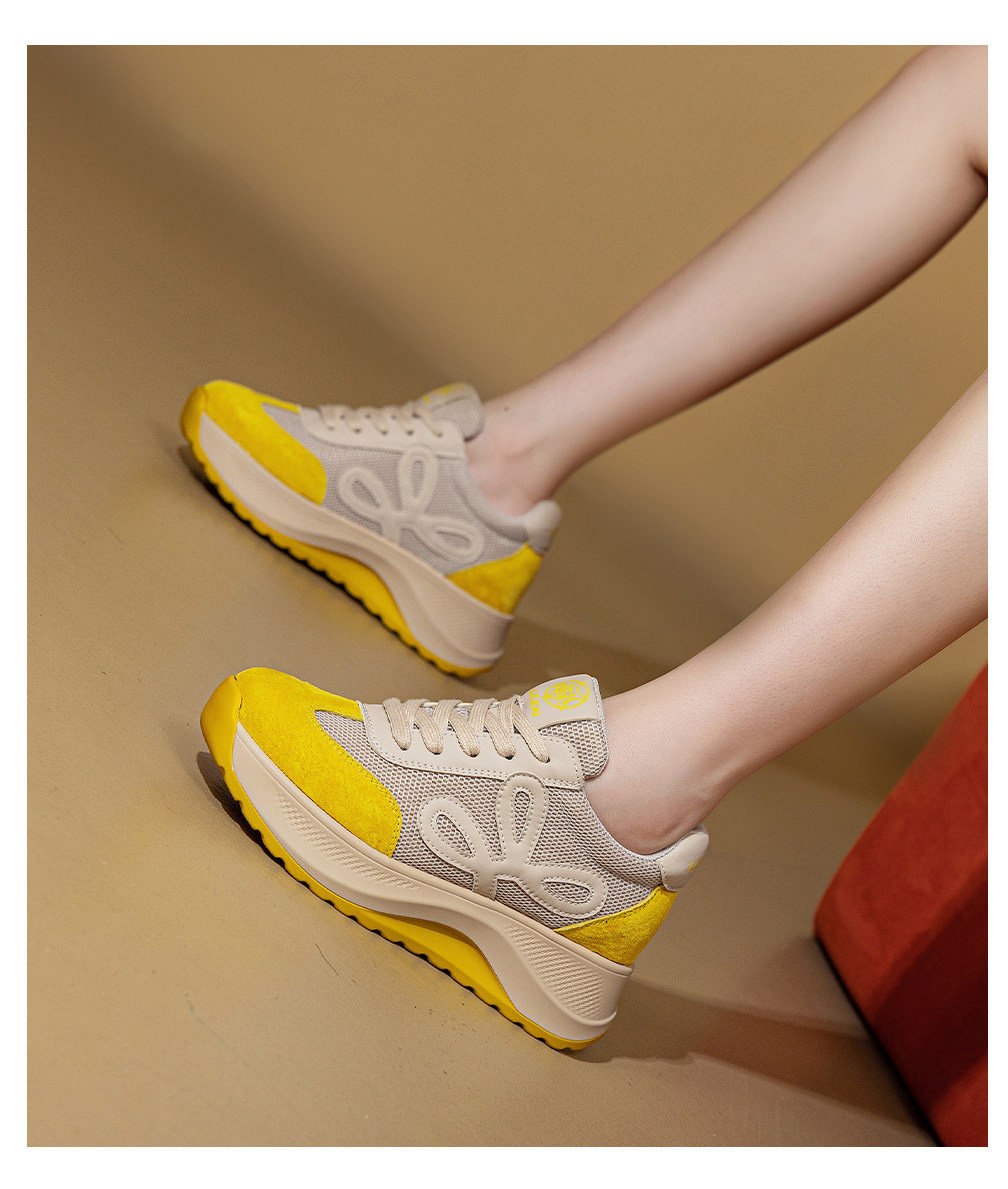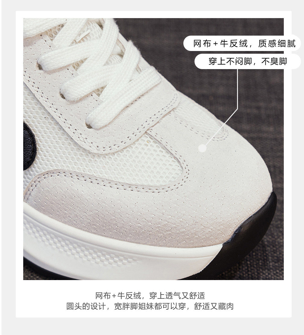 Hong Kong Breathable Mesh Height-Increasing Genuine Leather Platform Thick-Soled White Sneakers for Women 2026 Spring and Autumn New Versatile Casual Shoes