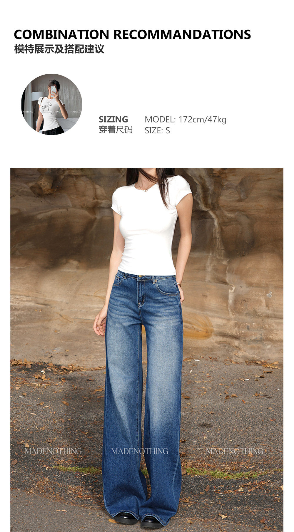 Made Nothing Mid-Waist Mr021 Stretch Flare Faded High-End Washed Vintage Straight-Leg Jeans for Women