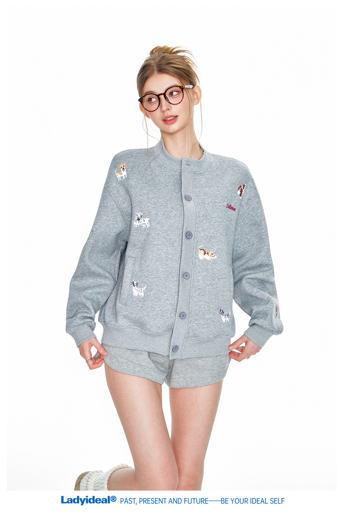 Lady Ideal American-Style Heavyweight 400g Crew Neck Sweatshirt Jacket for Women, New Loose Knit Cardigan for Spring and Autumn