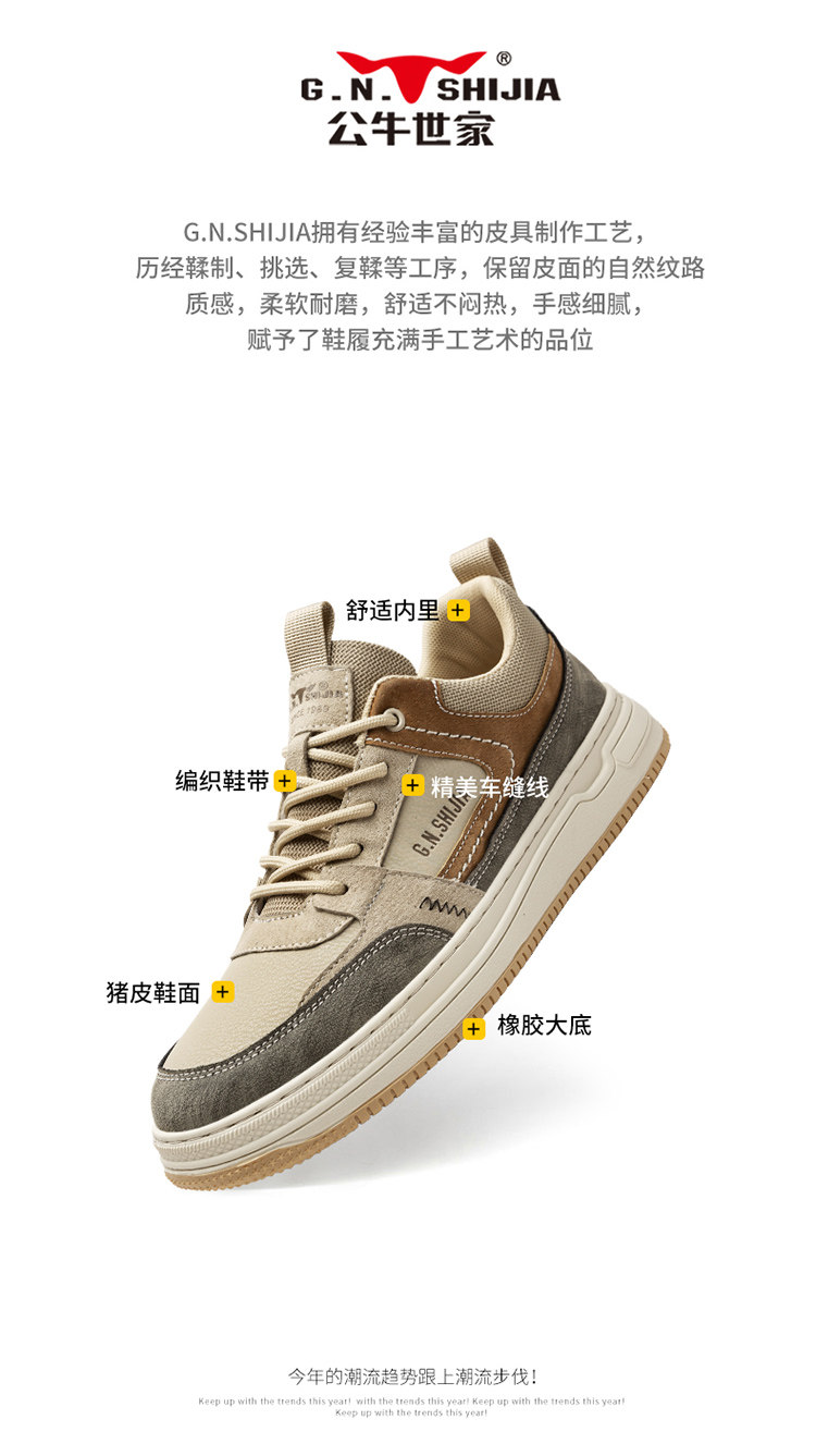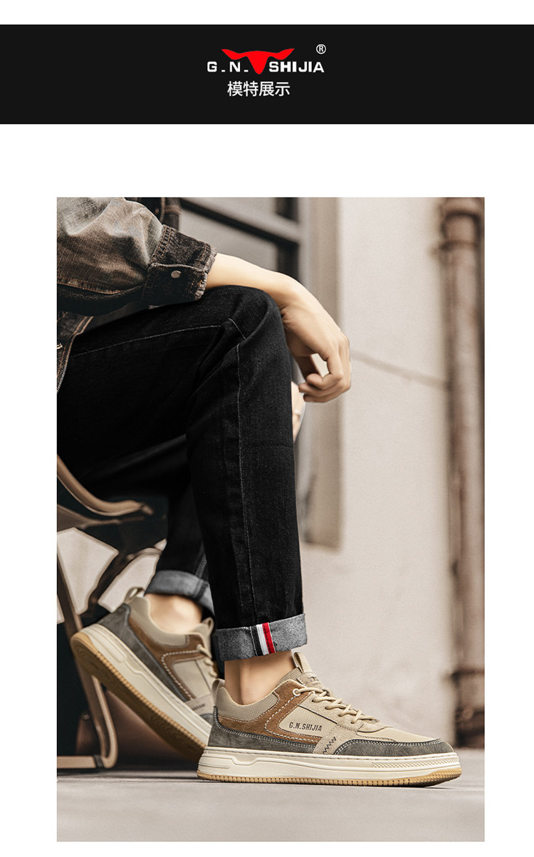 Bull Family Shoes Men's Sneakers Men's Sports Shoes Spring and Autumn Men's Casual Shoes Trendy Brand High-End Genuine Leather
