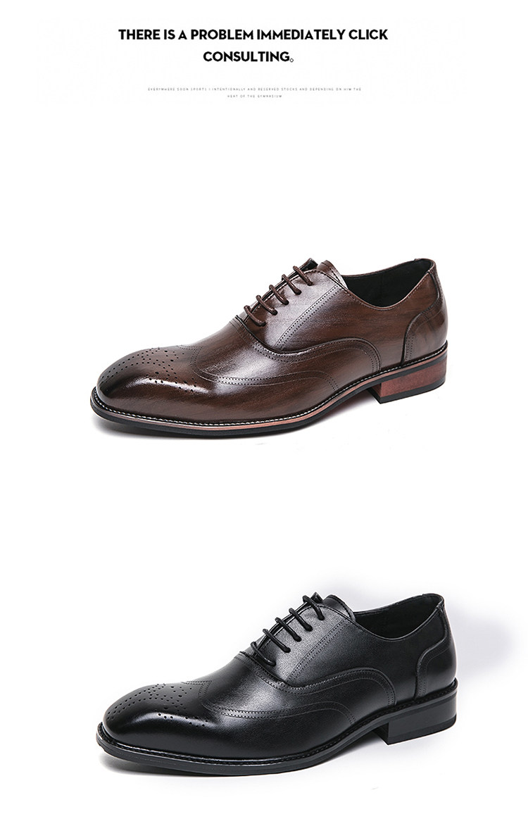 Brogue Leather Shoes for Men, Carved British Style, Korean Version, Wedding Groom Shoes, Hairstylist Wear-Resistant Breathable Men's Shoes, Brown