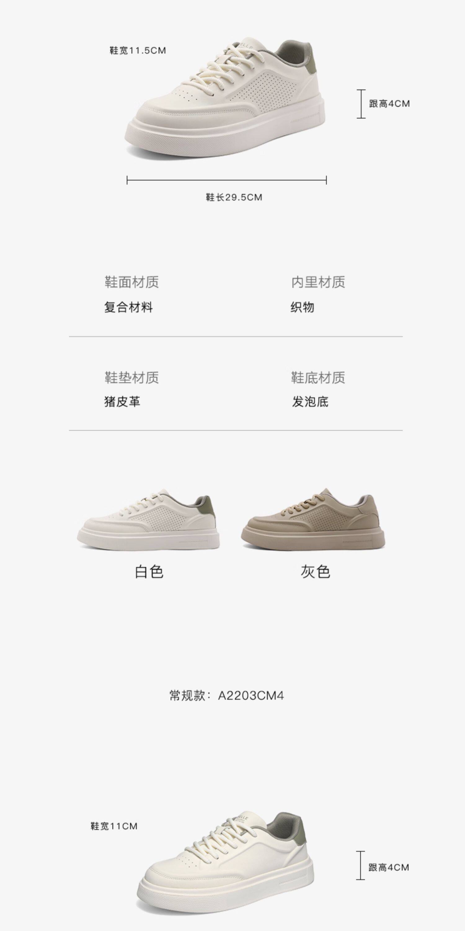 Belle Men's Height-Increasing Casual White Shoes Men's Summer New Breathable Thick-Soled Sneakers Sports Shoes A1645Bm4