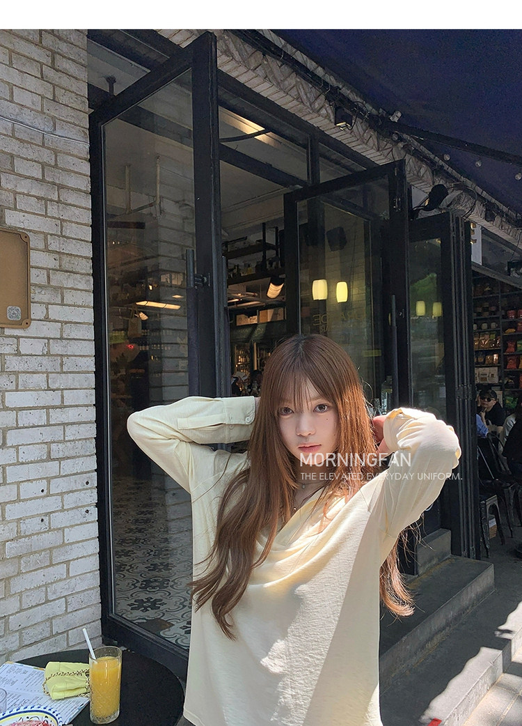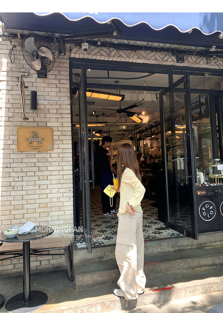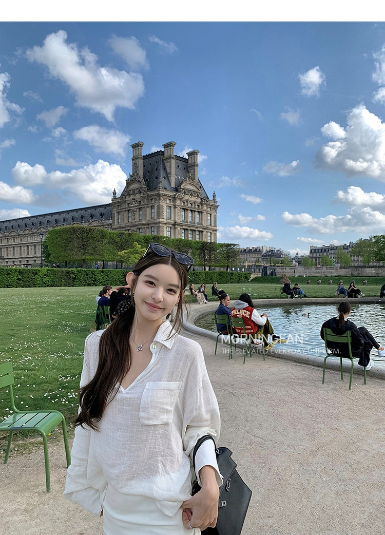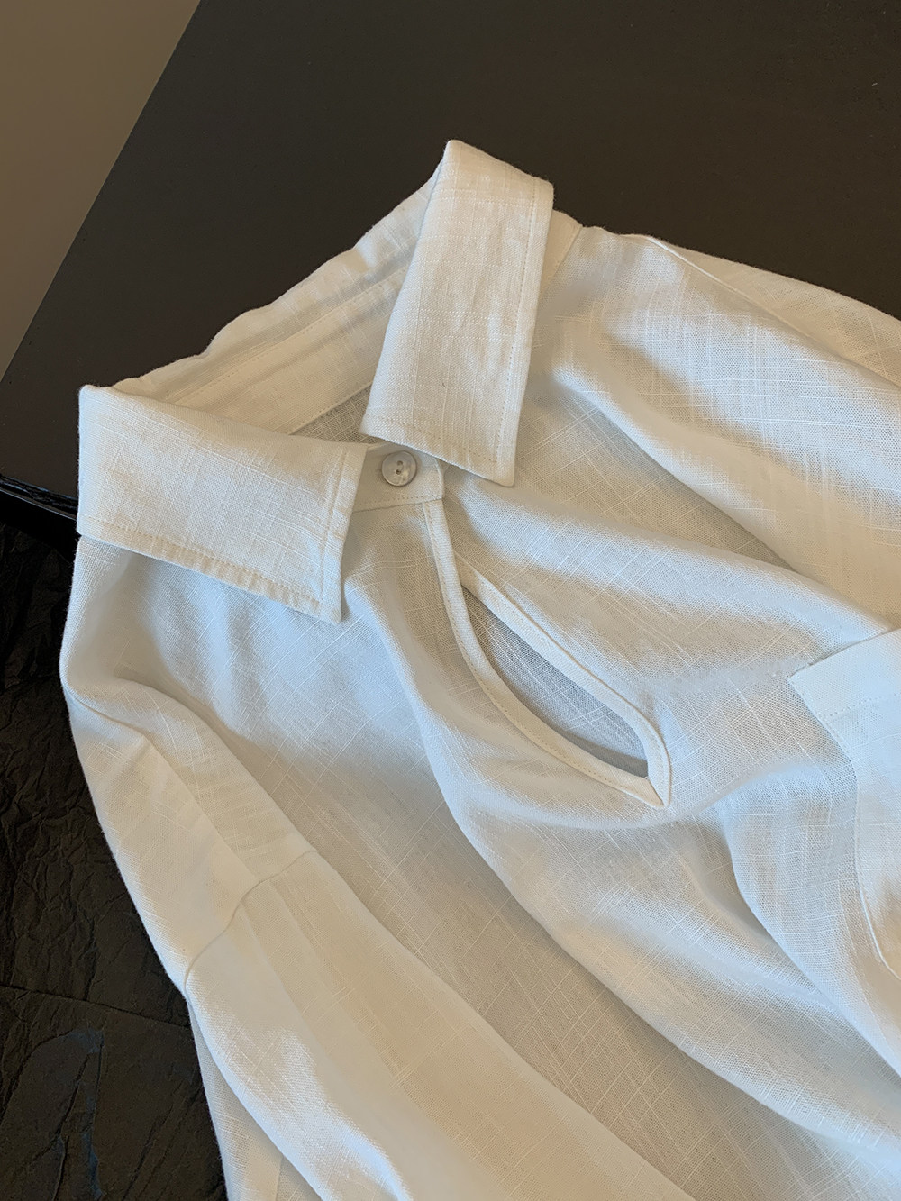 胸口单侧做了一个口袋 下摆小开衩的设计 蛮有层次的