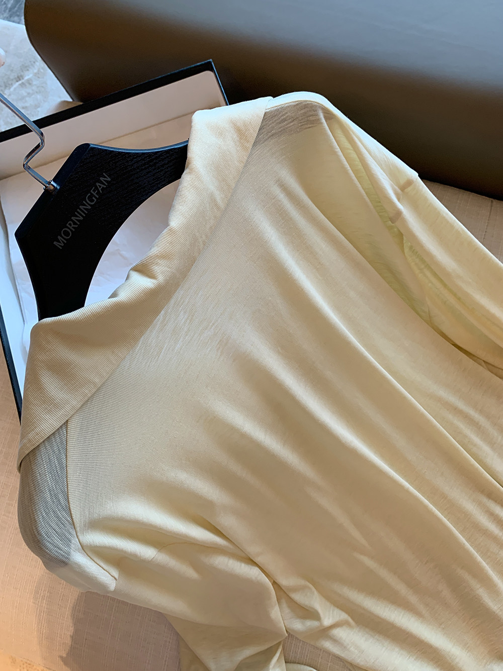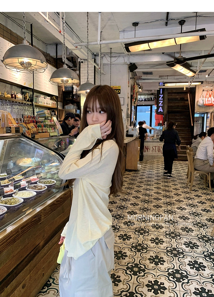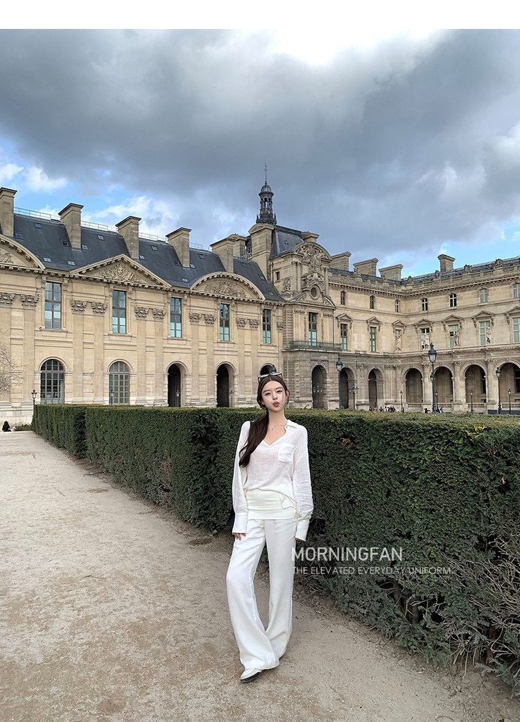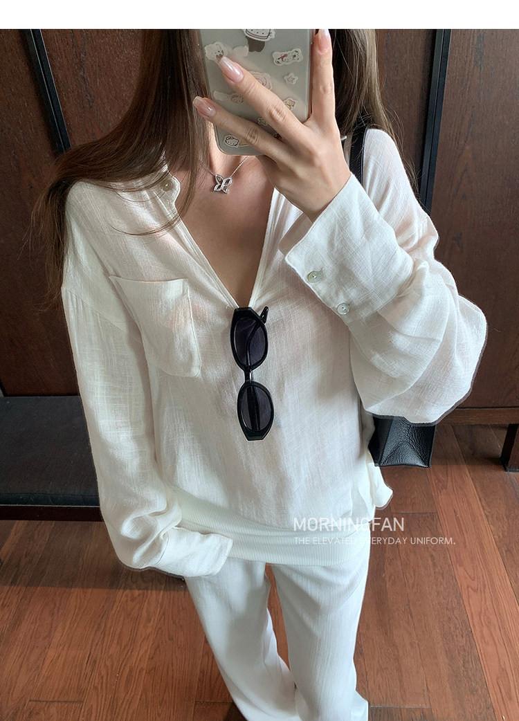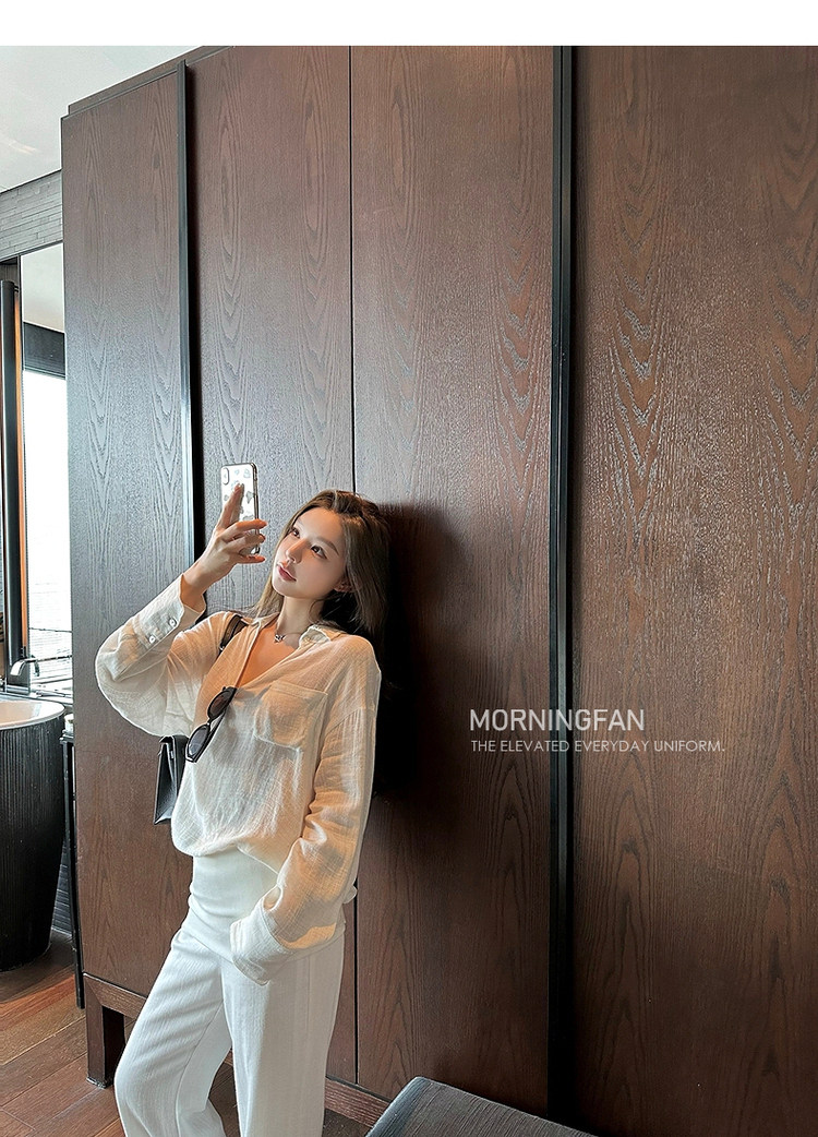 胸口单侧做了一个口袋 下摆小开衩的设计 蛮有层次的