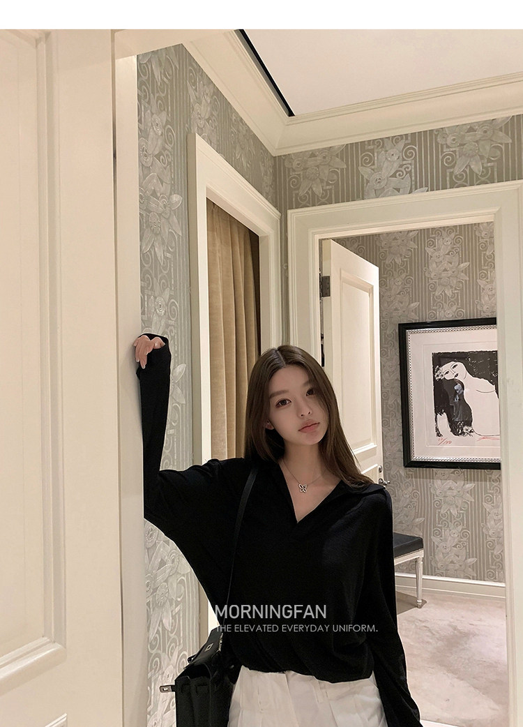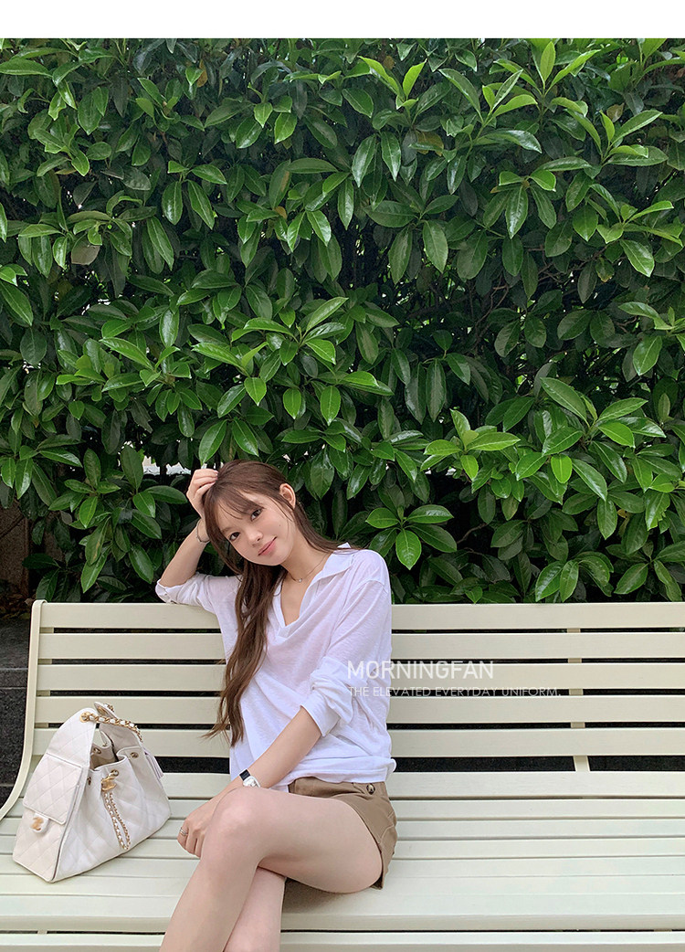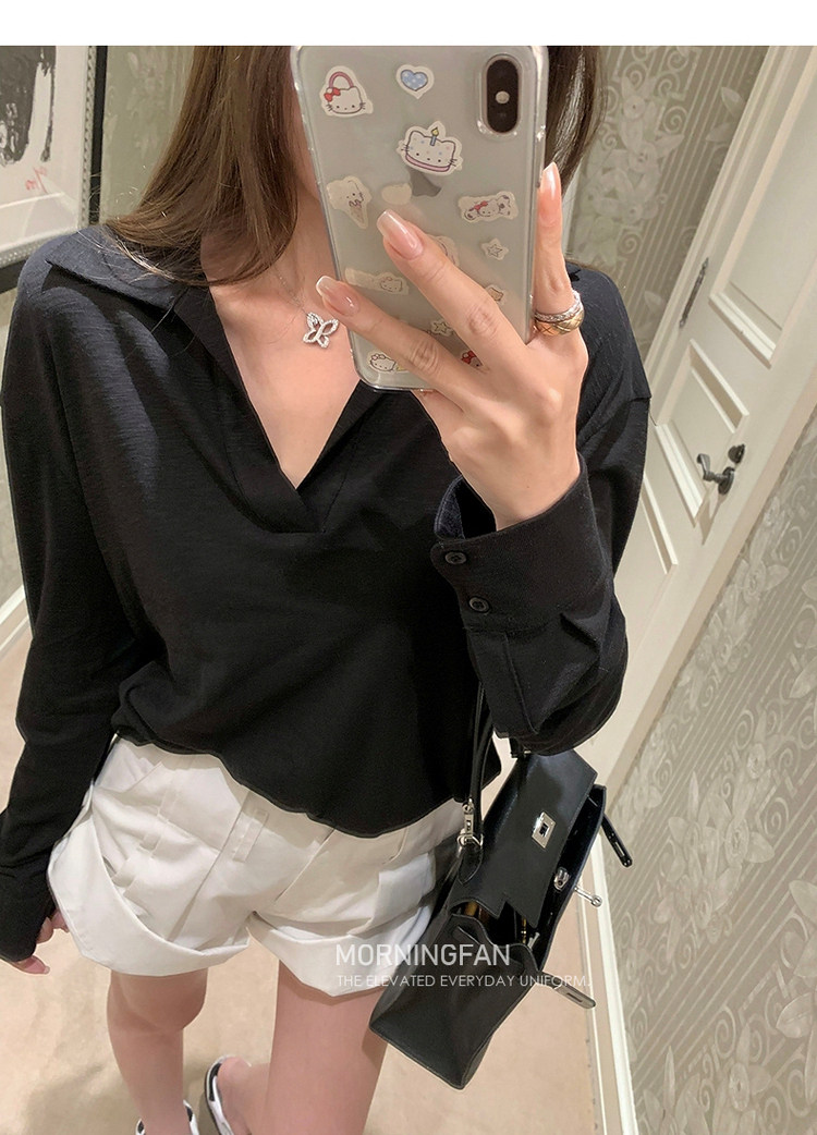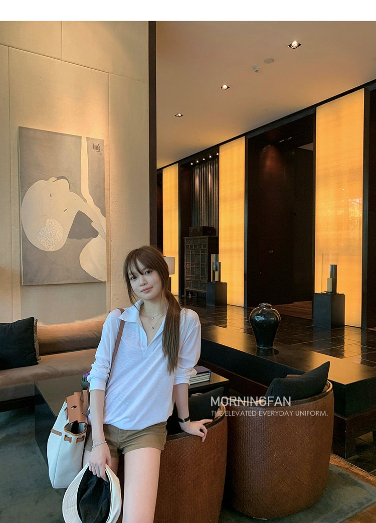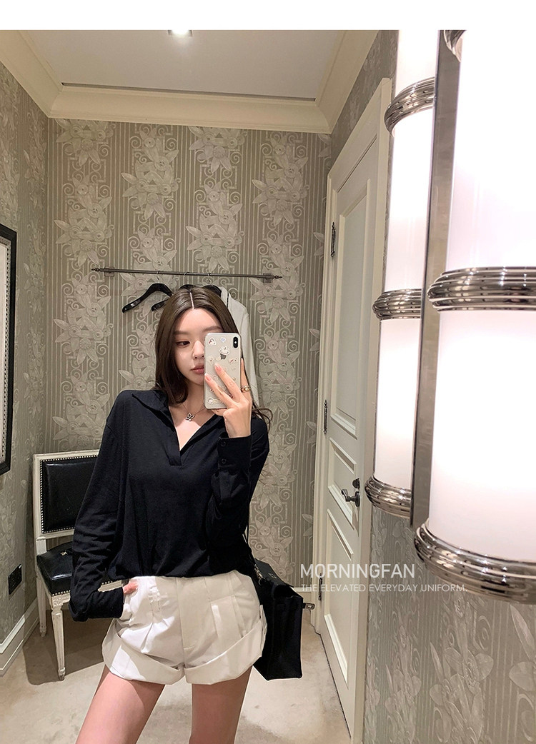 polo领自带V字弧度 能够很好地修饰脸型很显瘦