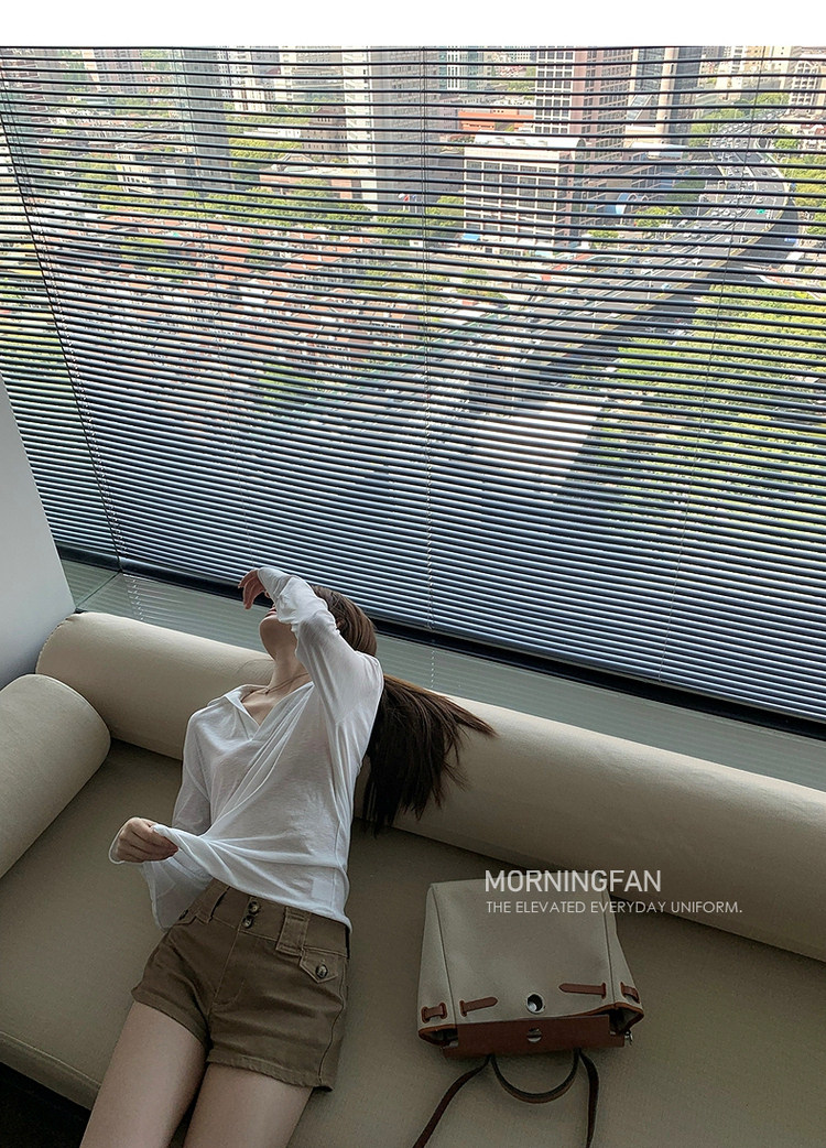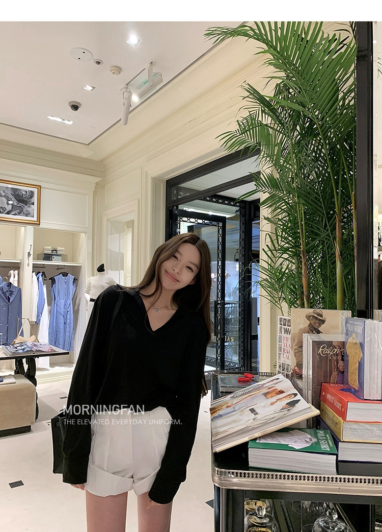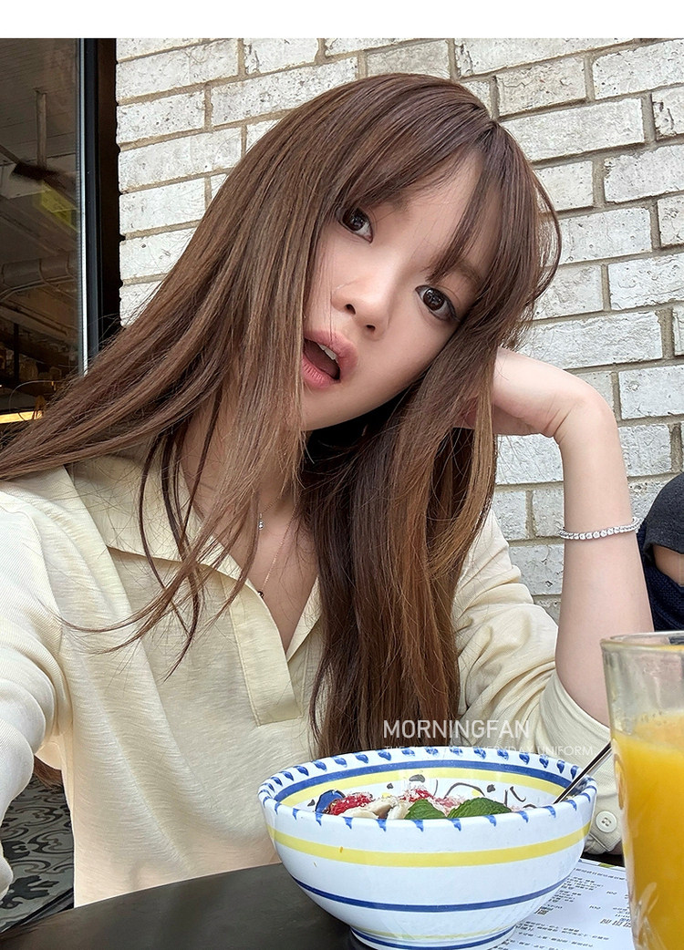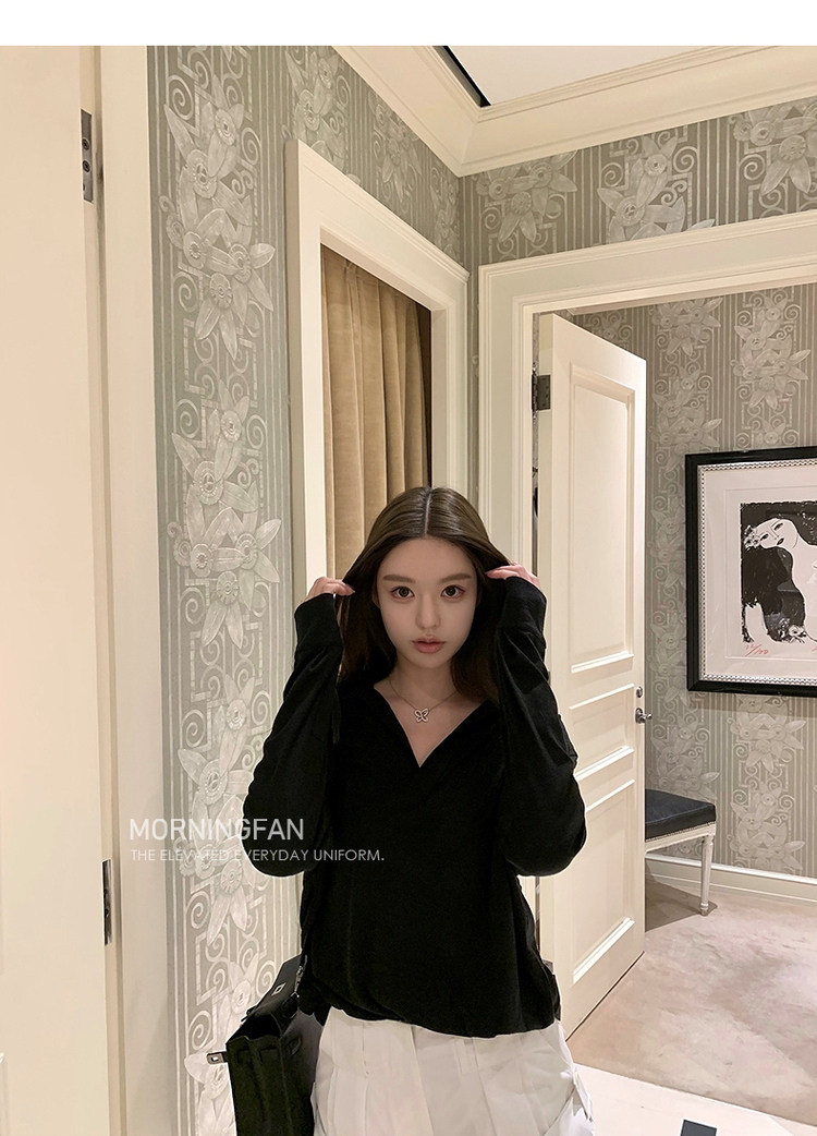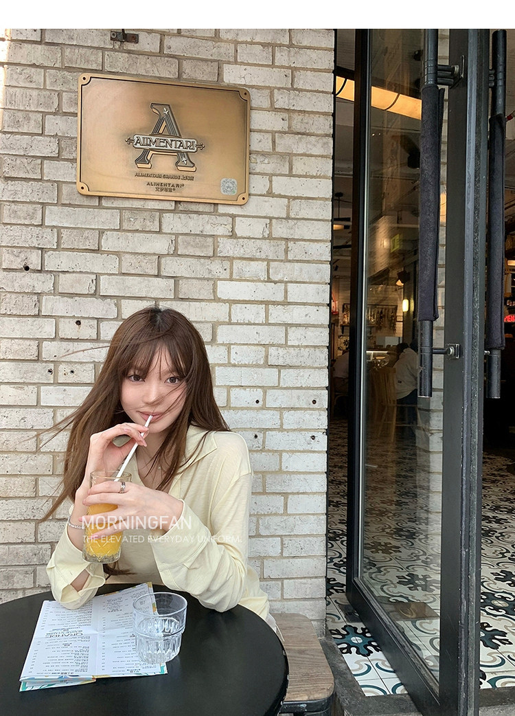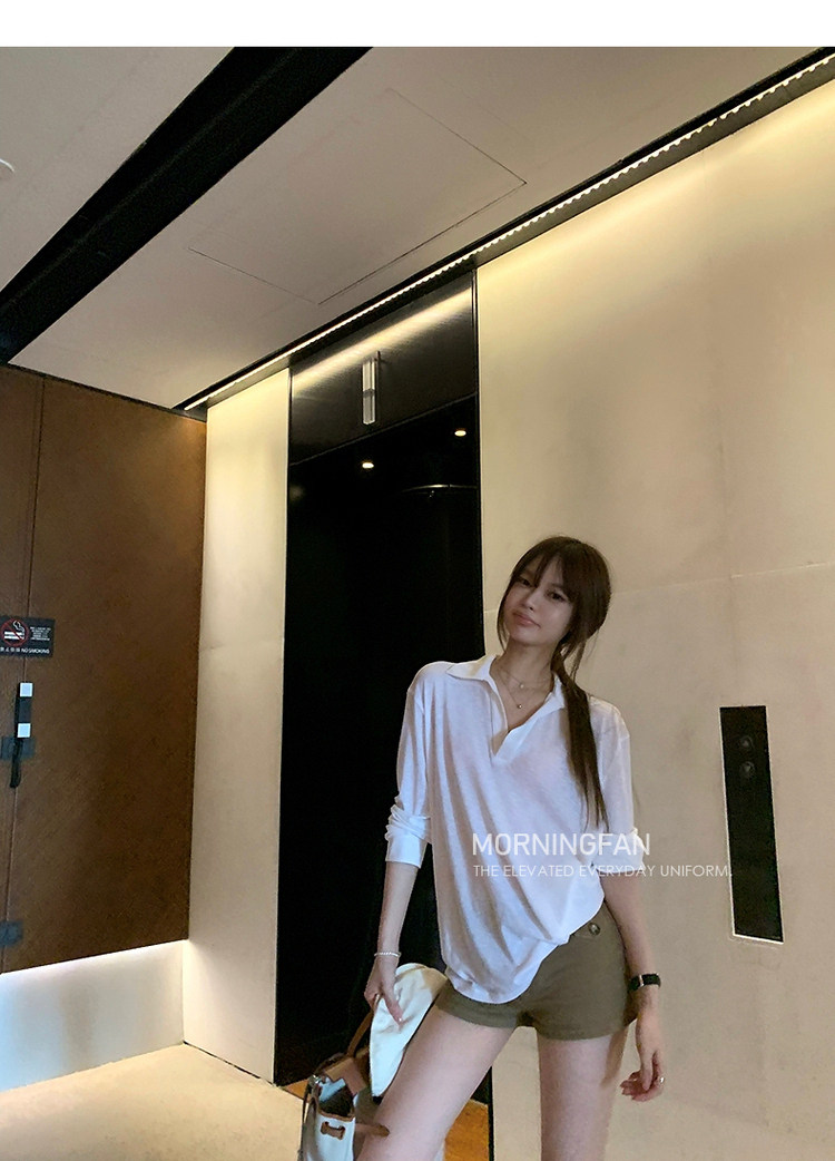 polo领自带V字弧度 能够很好地修饰脸型很显瘦