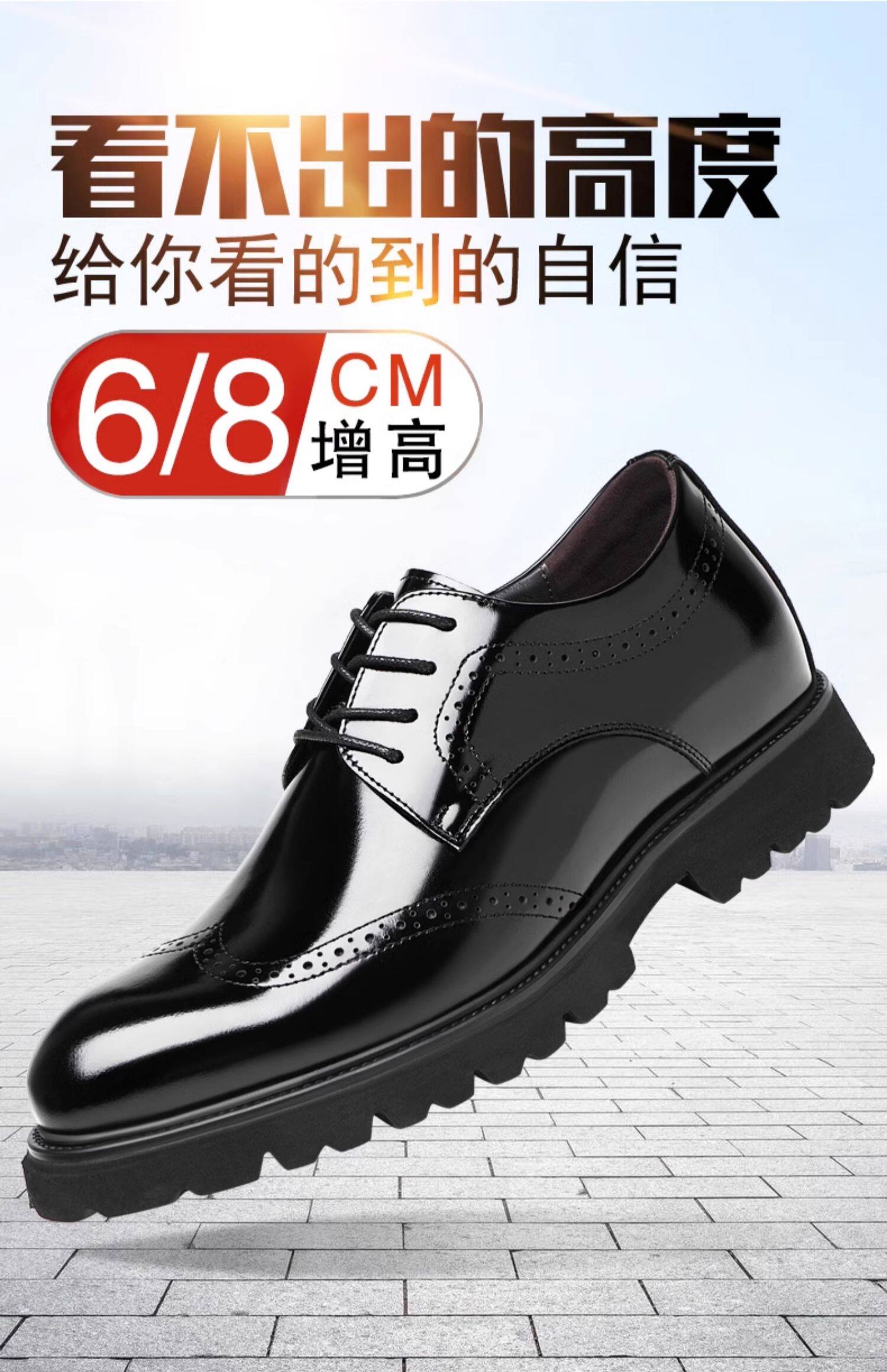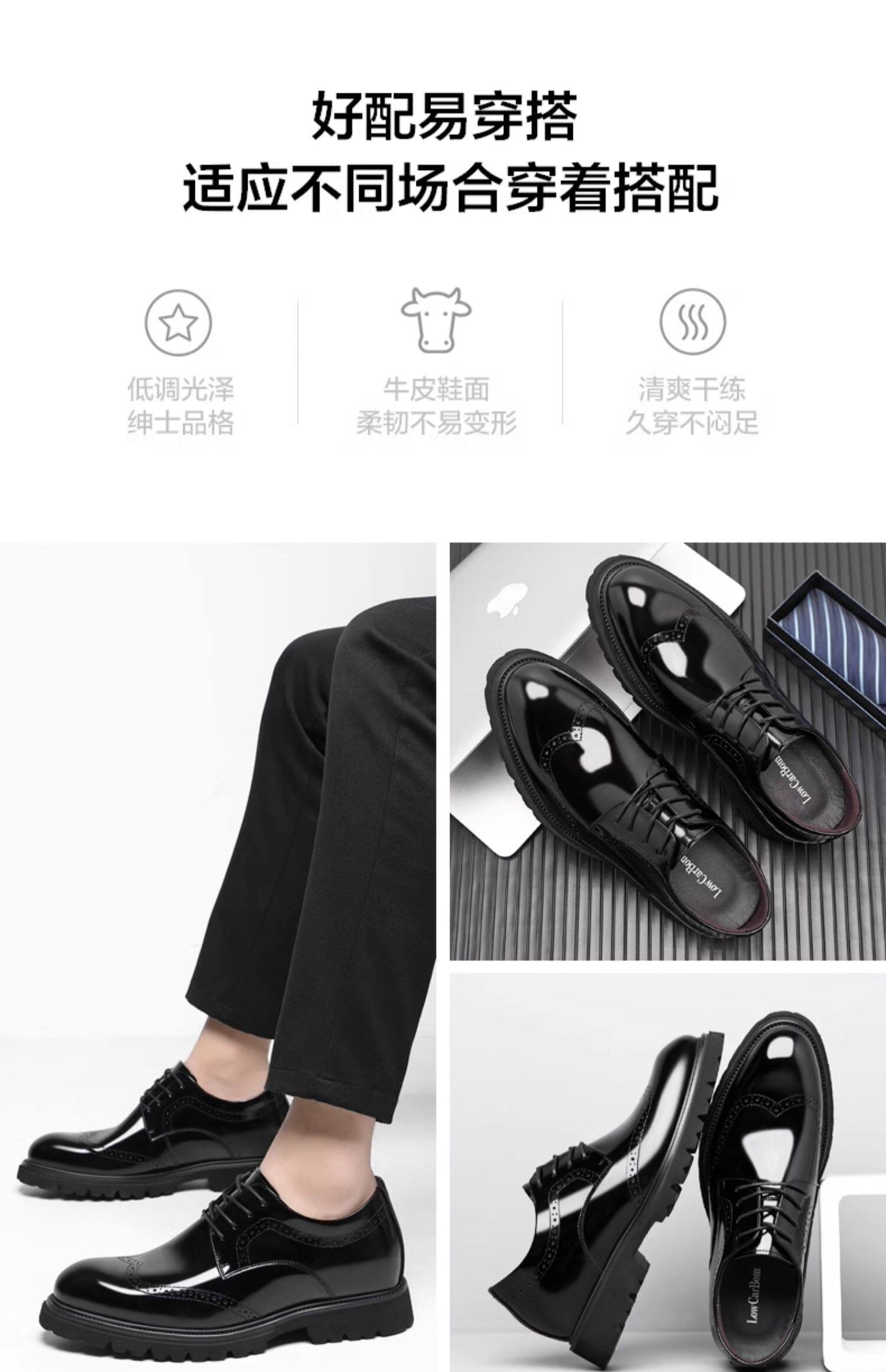 Men's Height-Increasing Leather Shoes with 8cm Brogue Leather, Business Formal Style, Shiny Surface, Invisible Height Increase, Groom Shoes