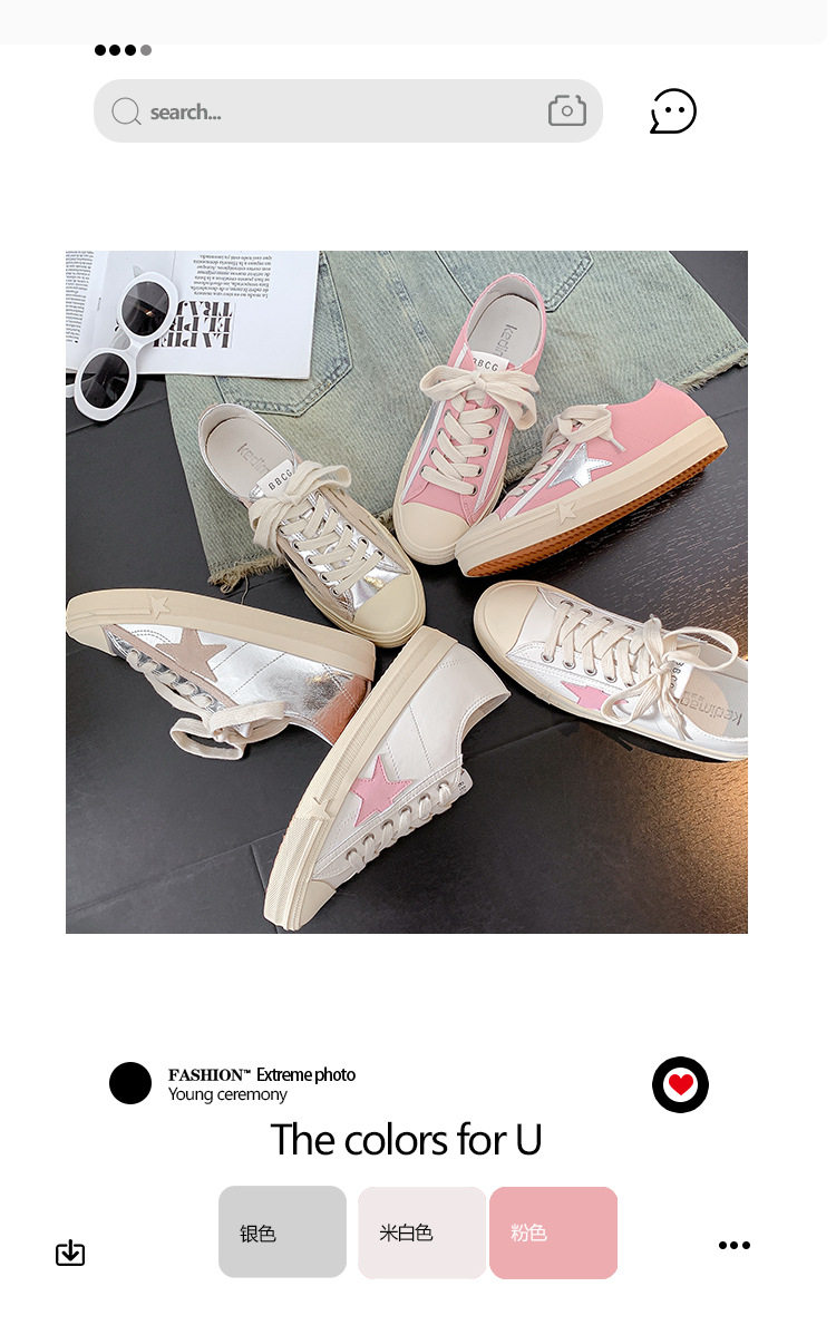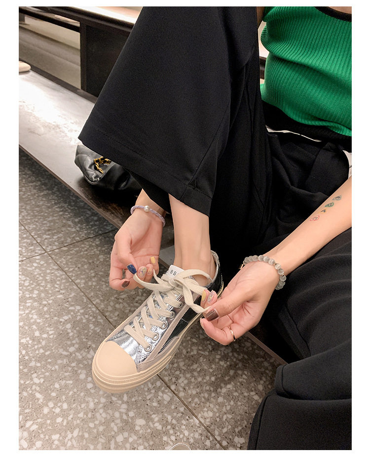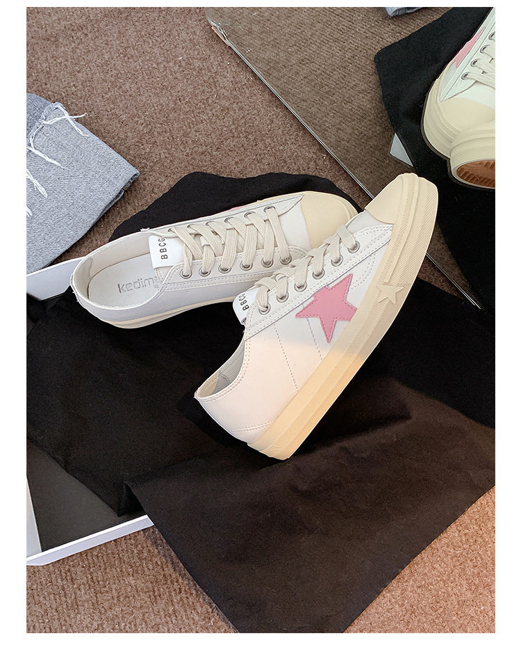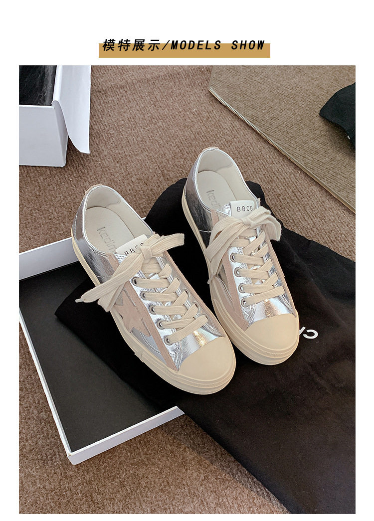 Hong Kong Style Height-Increasing White Sneakers for Women, Silver Star Distressed Comfortable Dirty Shoes, Thick-Soled Versatile Casual Sports Sneakers