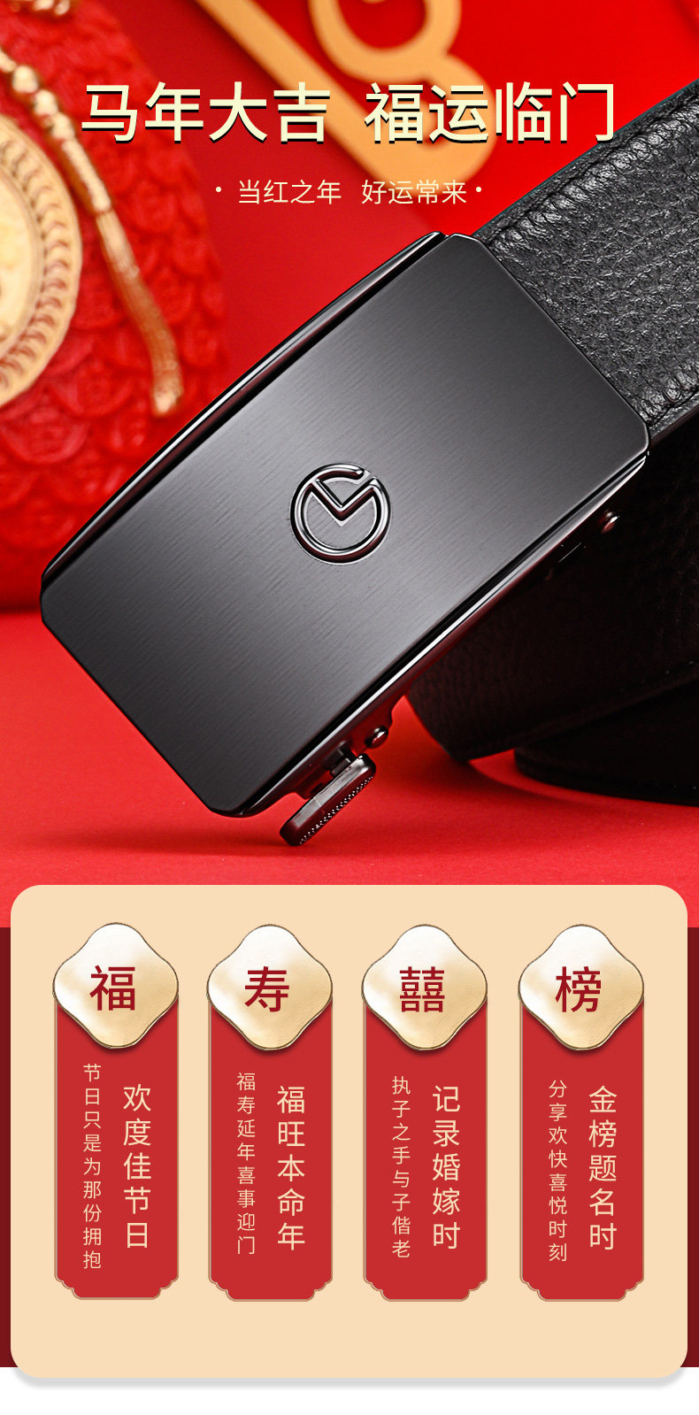 Goldlion Red Belt for the Year of the Horse, Gift for Men, Automatic Buckle Leather Belt, 2026 Wedding