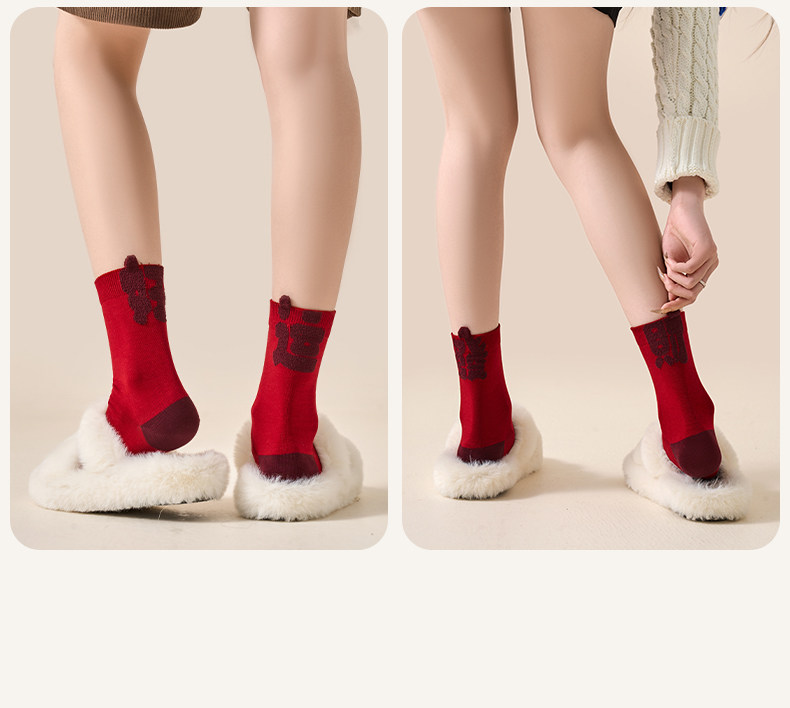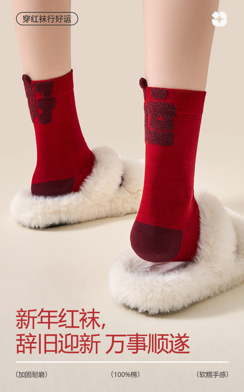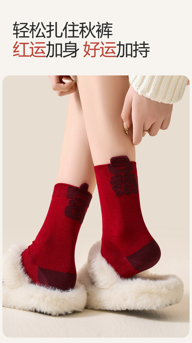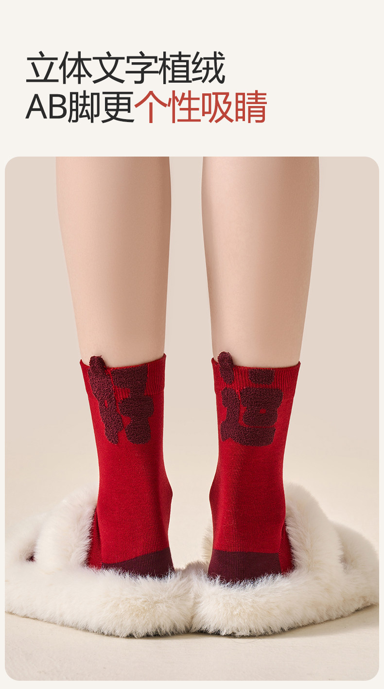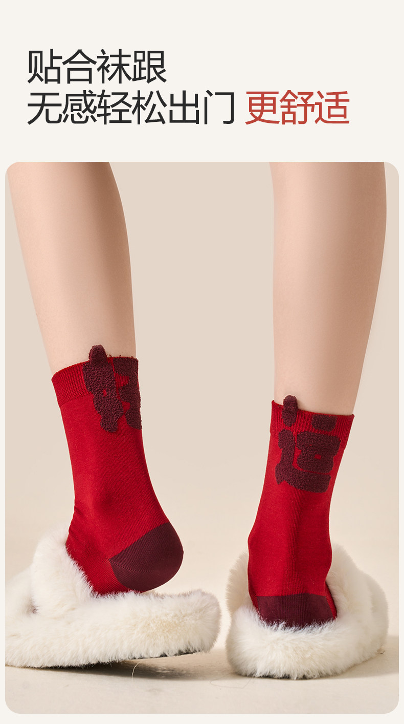 2025 Year of the Snake Zodiac Year Red Socks for Women Pure Cotton Mid-Calf Socks Autumn and Winter New Year Festive Couple Long Socks Gift Box