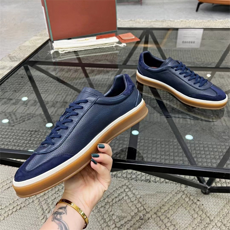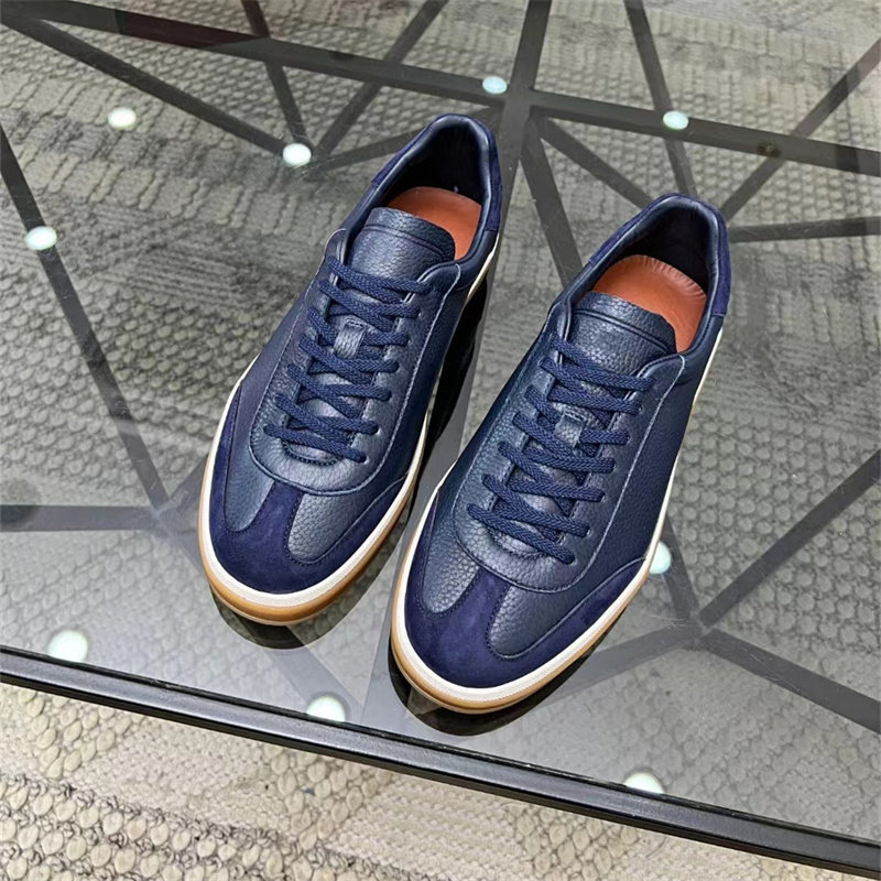 Low-Top Lace-Up Men's Sneakers, Genuine Leather, Retro German Training Shoes, Versatile Casual Trendy Shoes, Breathable Suede Leather Shoes