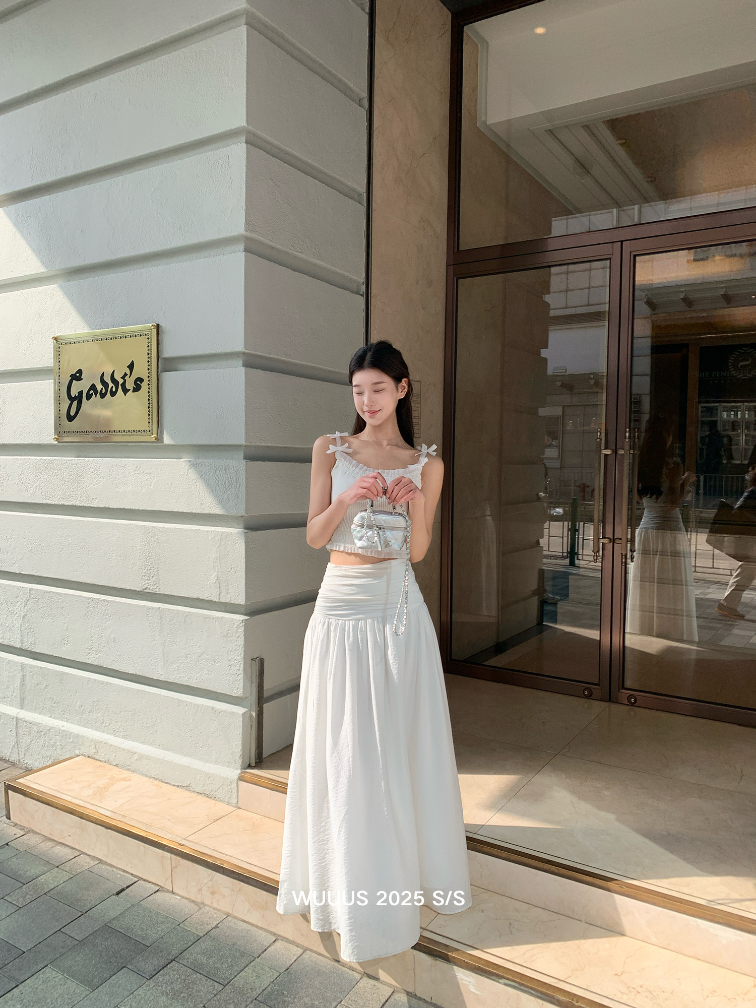 【all white】春夏搭配率超高的白色柔软垂顺长半裙