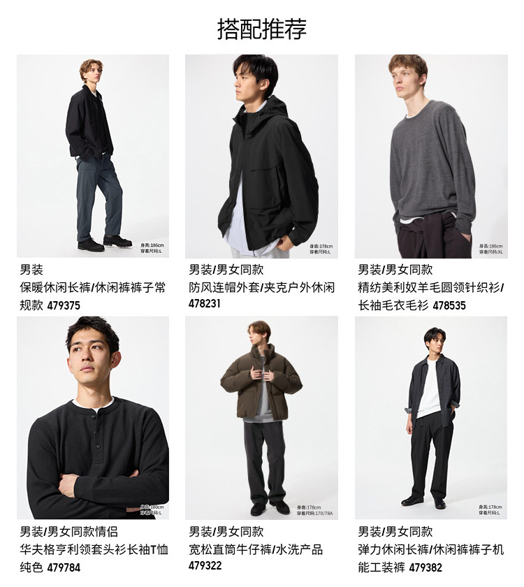 Extended-Length Uniqlo Men's Warm Casual Pants/Casual Trousers 479376