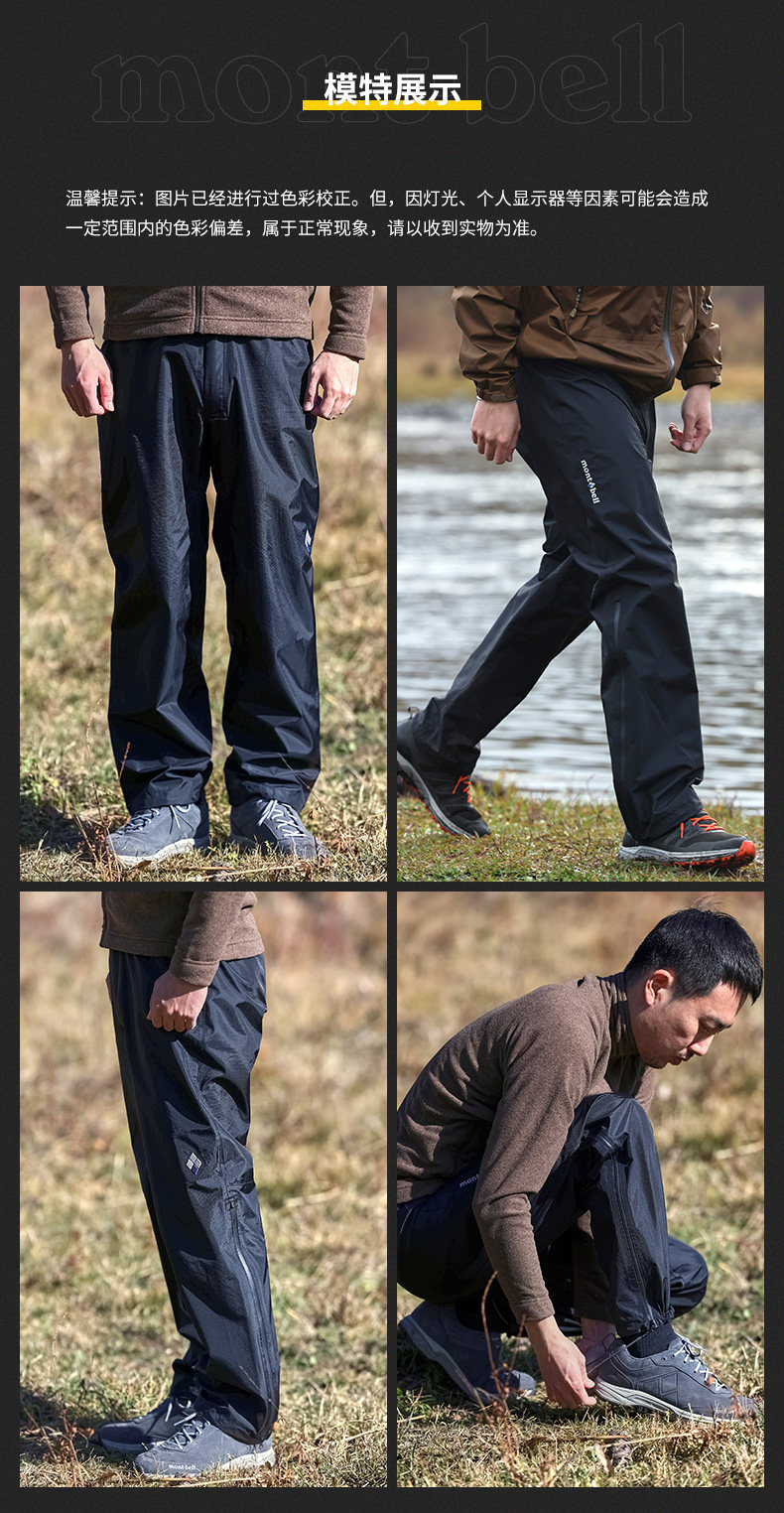 Montbell Outdoor Casual Pants Rain Dancer Gtx Windproof and Waterproof Comfortable Long Pants for Men 1128567