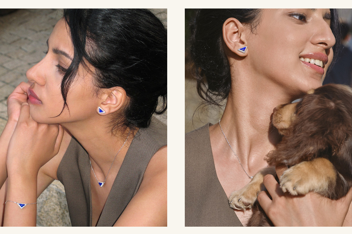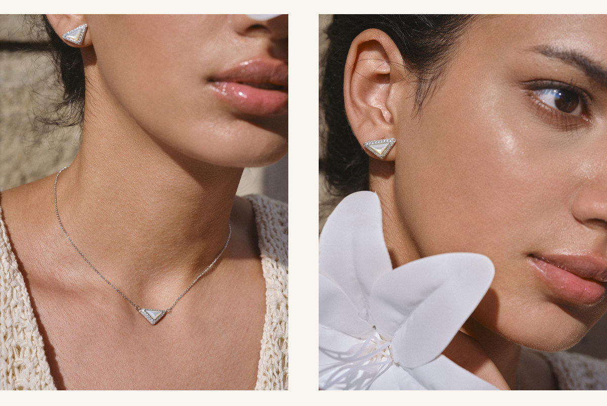 Boonee Alus Delta Series Colorful Triangle Earrings for Women, New White Shell Agate Klein Blue Earrings
