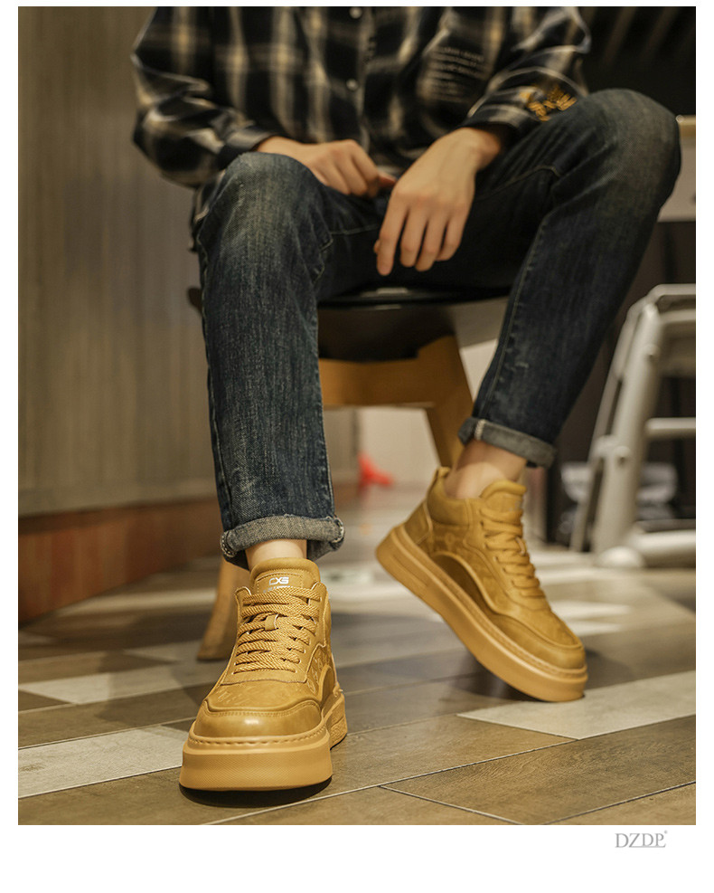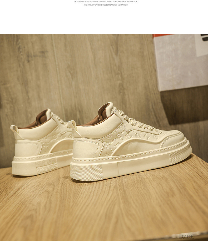 High-Top Men's Shoes, Winter Fleece-Lined, Thick-Soled, Height-Increasing White Sneakers, Soft-Soled, Versatile, Lightweight, Solid Color, Sports Casual Work Shoes