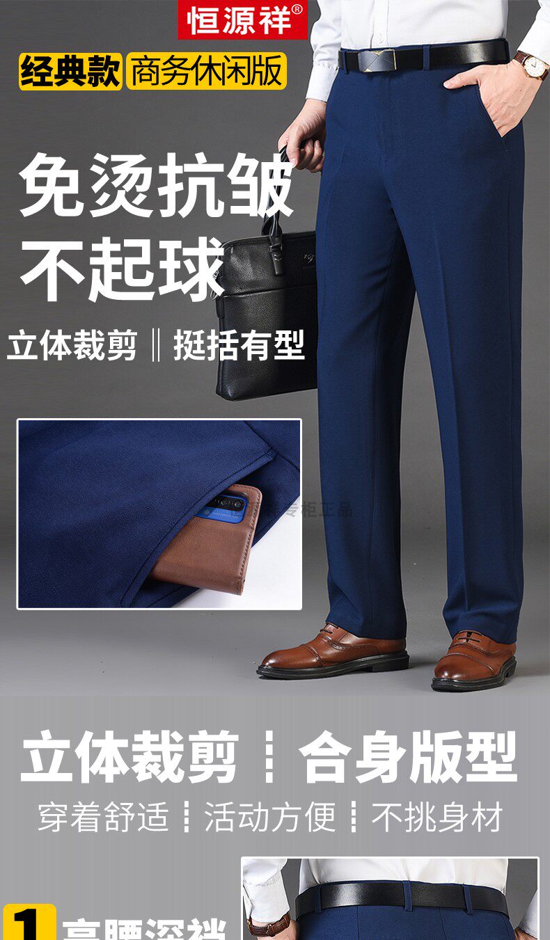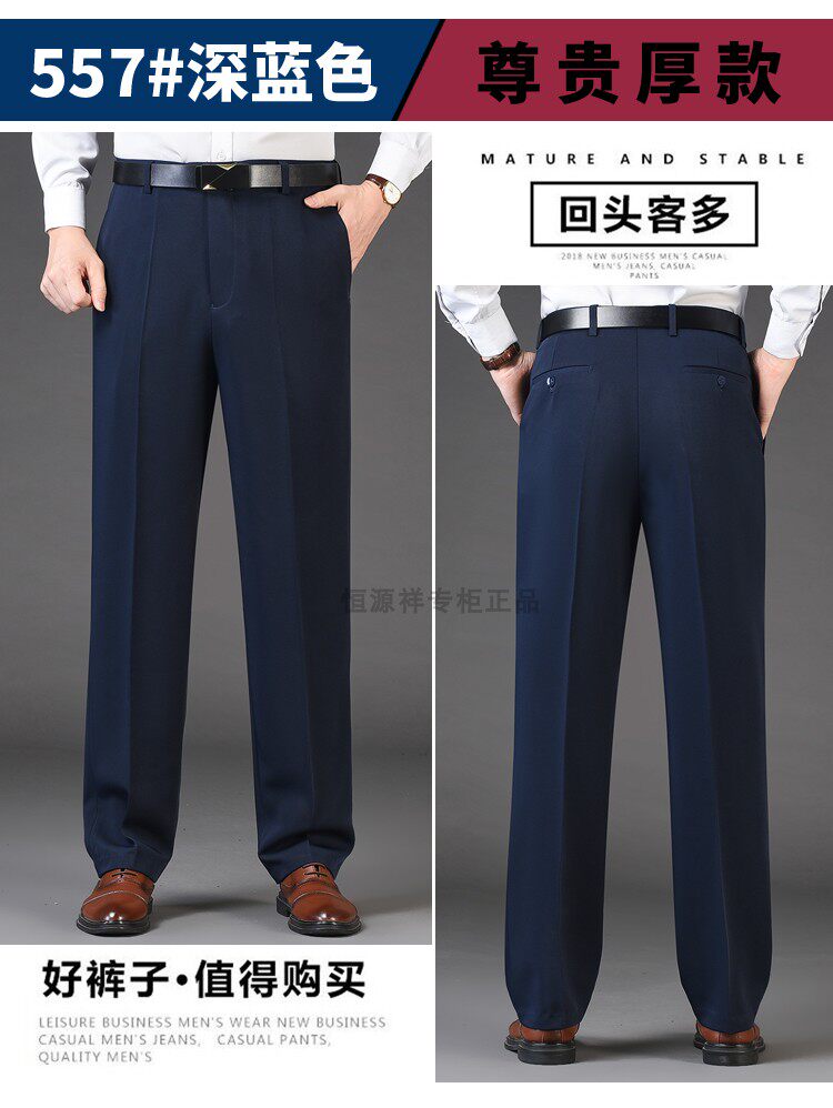 Hengyuanxiang Autumn and Winter Business Gentleman's Dress Pants for Middle-Aged Men, Formal Non-Iron Straight-Leg Suit Pants for Men