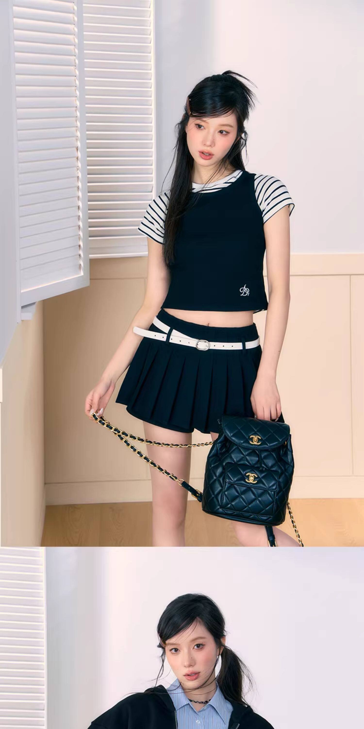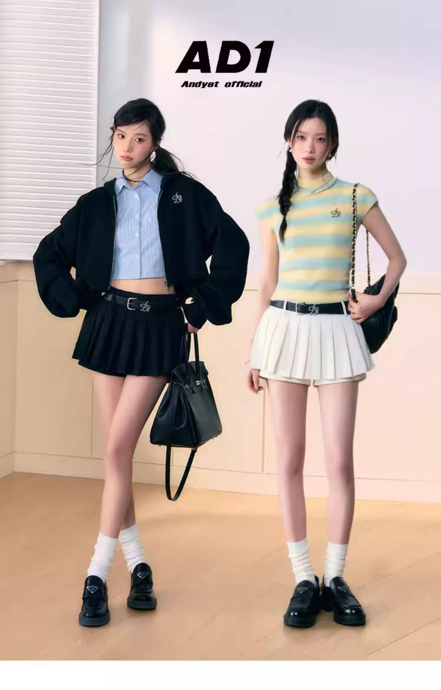 Andyet Ad1 Original Design Logo Embroidered Short A-Line Pleated Skirt Summer Slimming Short Skirt for Women in Preppy Style