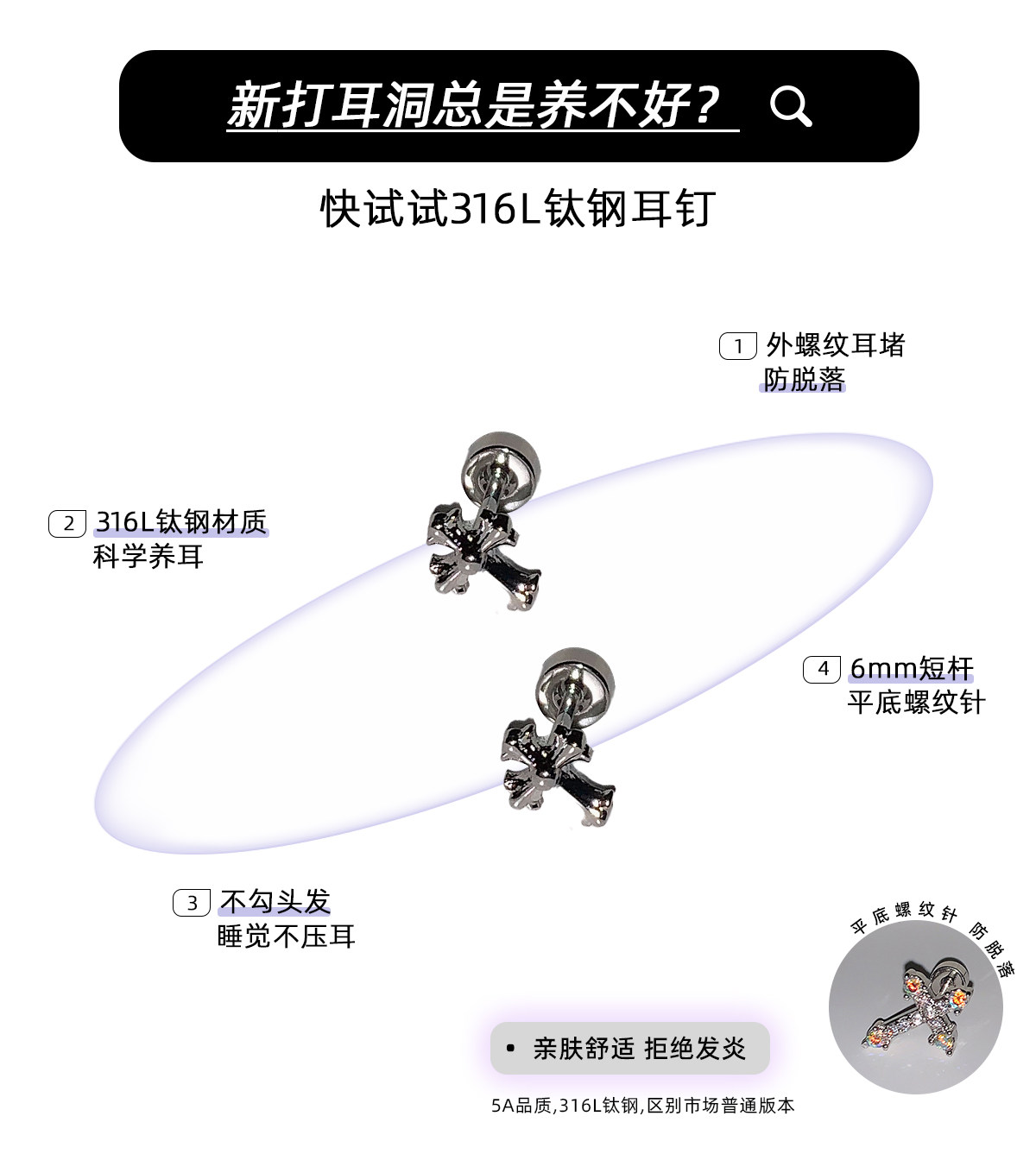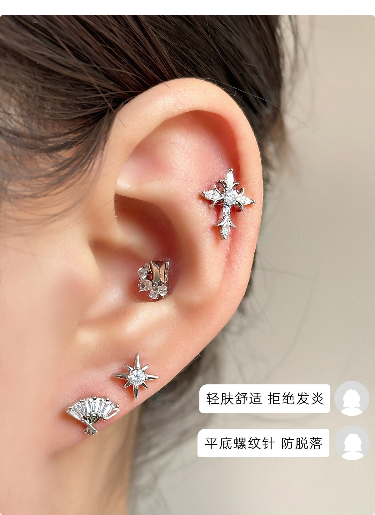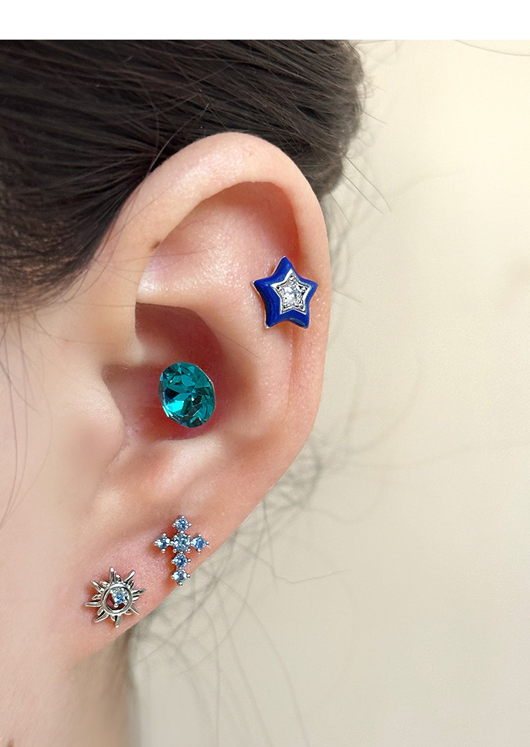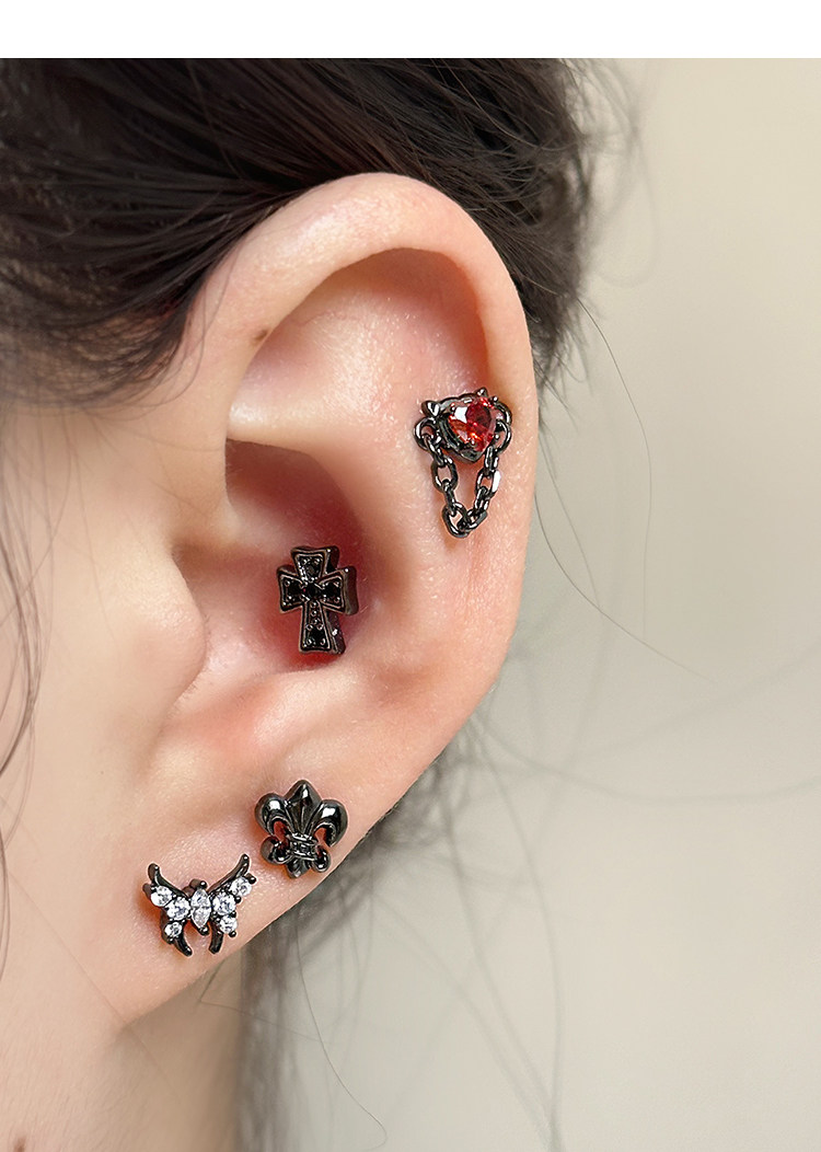 Ringring Store Cross Earrings Medical Titanium Steel Ear Bone Studs Titanium Alloy Zircon Cochlear Studs Earrings Ear Accessories