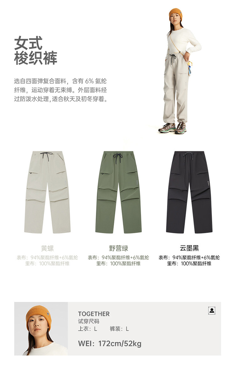 Tectop Outdoor Autumn and Winter Windproof and Warm Casual Pants for Women, Loose Fit, Stretchy, Breathable Hiking Paratrooper Pants