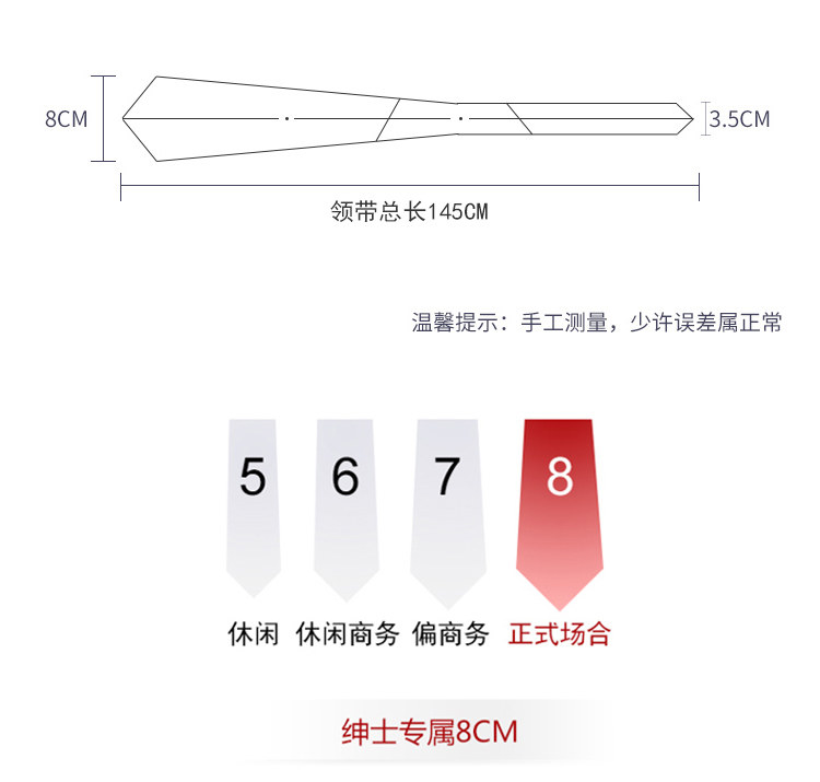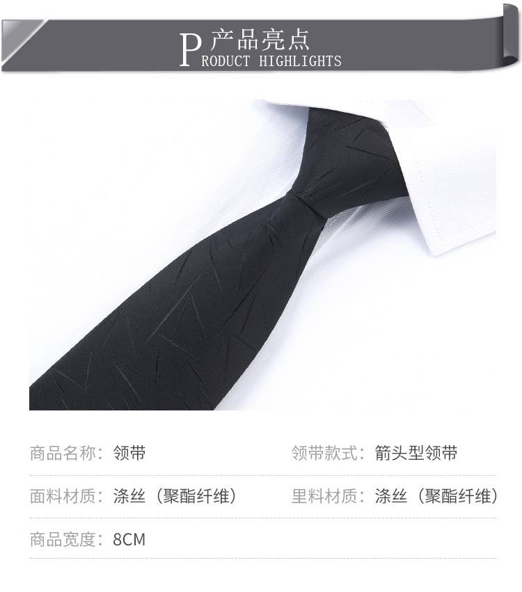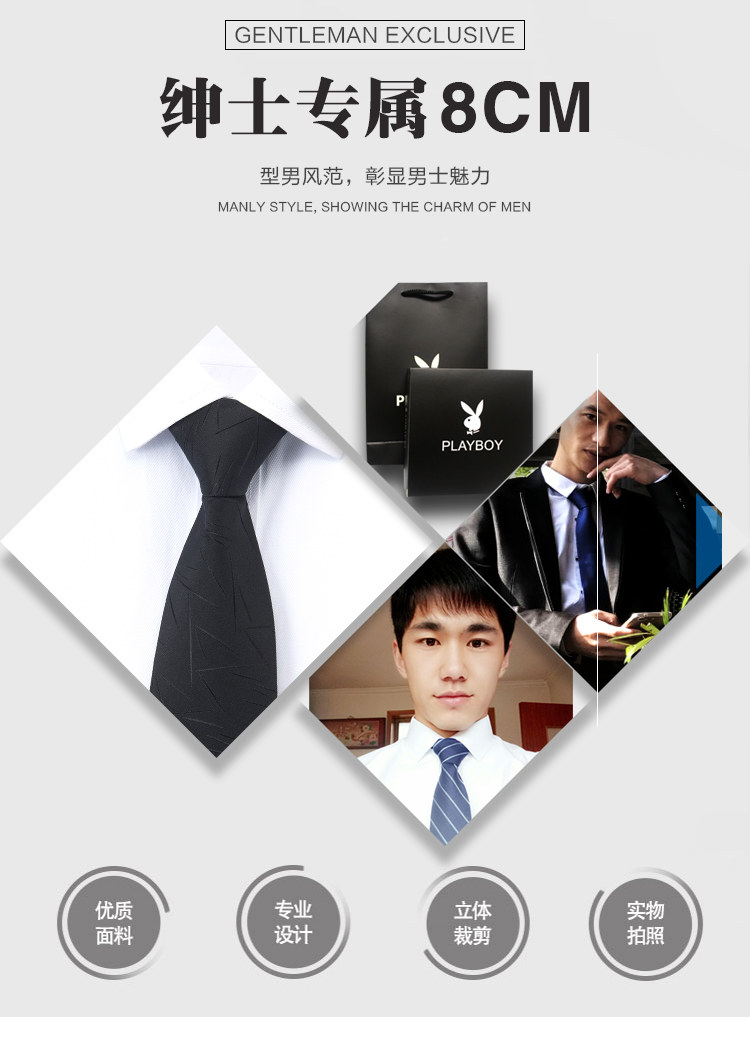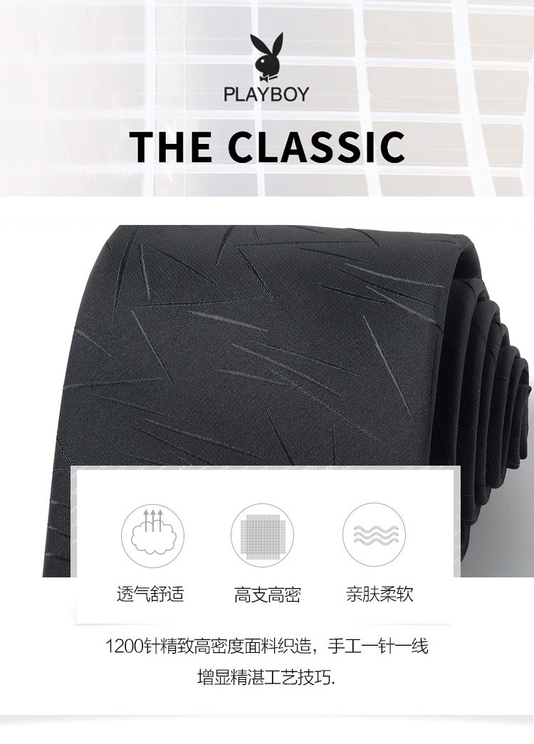 Playboy Tie for Men, Formal Wear, Business Work, Student Interview, Professional Black Tie, Hand-Tied 8cm